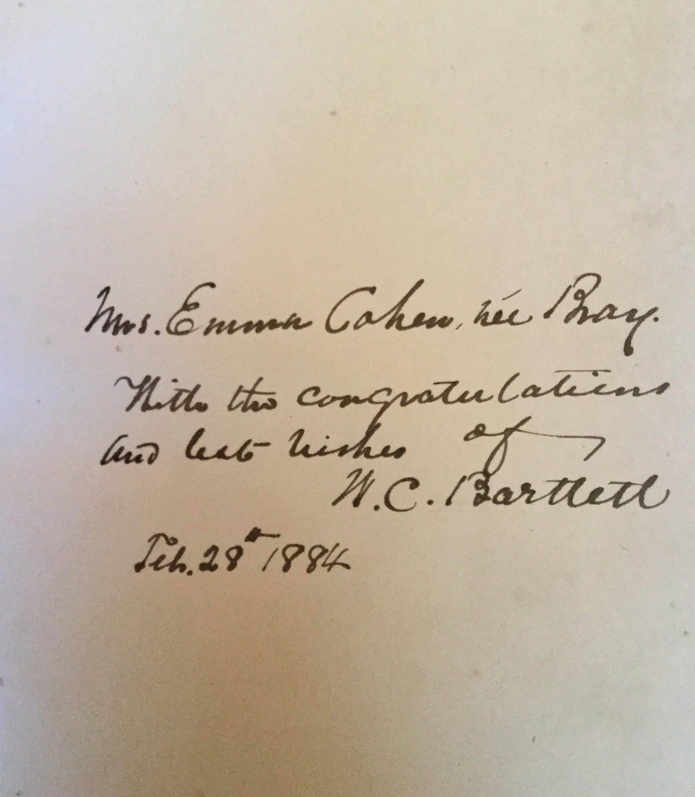 Mrs. Emma Cohen, neé Bray. [???] congratulations and best wishes of W. Cl Bartlett. Feb. 28th 1884Create Date