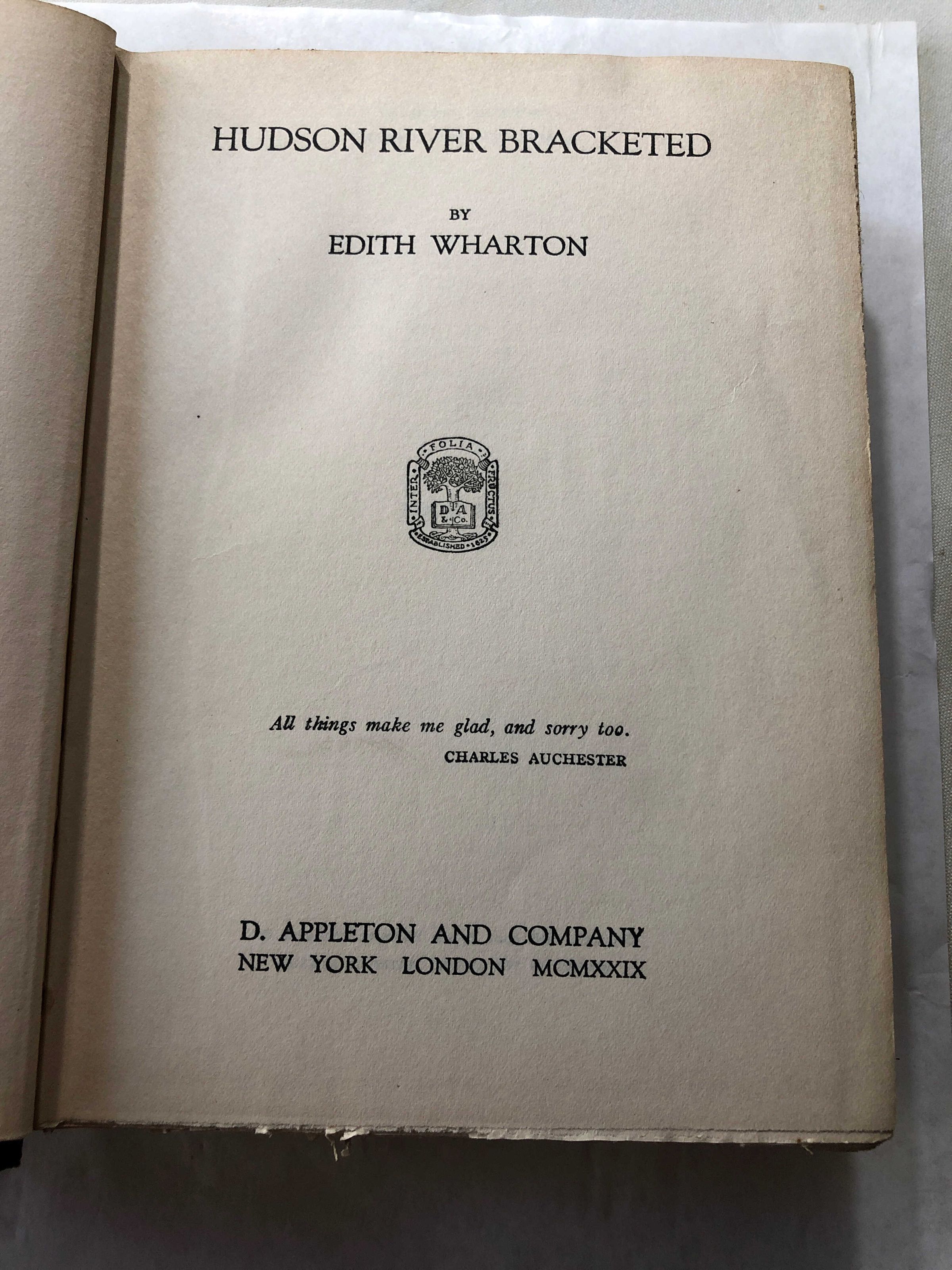 Hudson River Bracketed tells a fascinating tale set in the 1920s. It features two intelligent, sensitive protagonists, Vance Weston and Halo Spear, both of whom love literature and, despite unhappy marriages to others, eventually come together. This is no sentimental novel, however, with the lovers overcoming all odds to marry and have children. -WSU.eduInscription/Signature/Marks