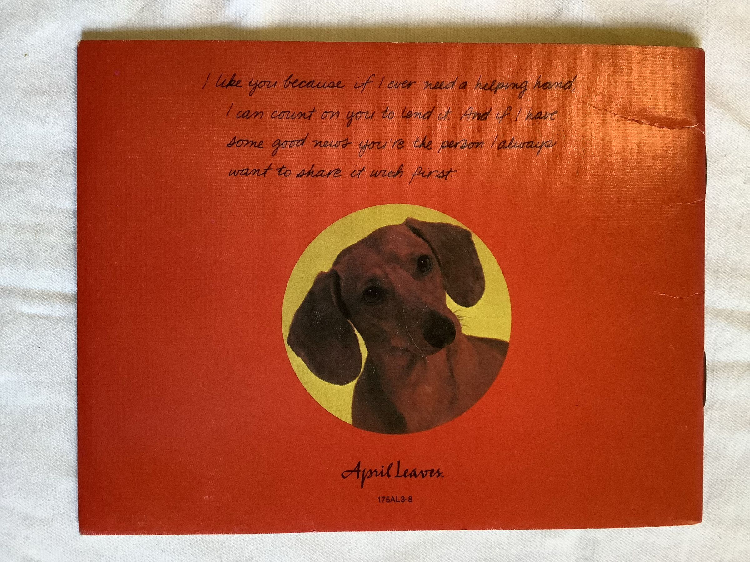 Short book with dog photos and loving messages.Inscription/Signature/Marks