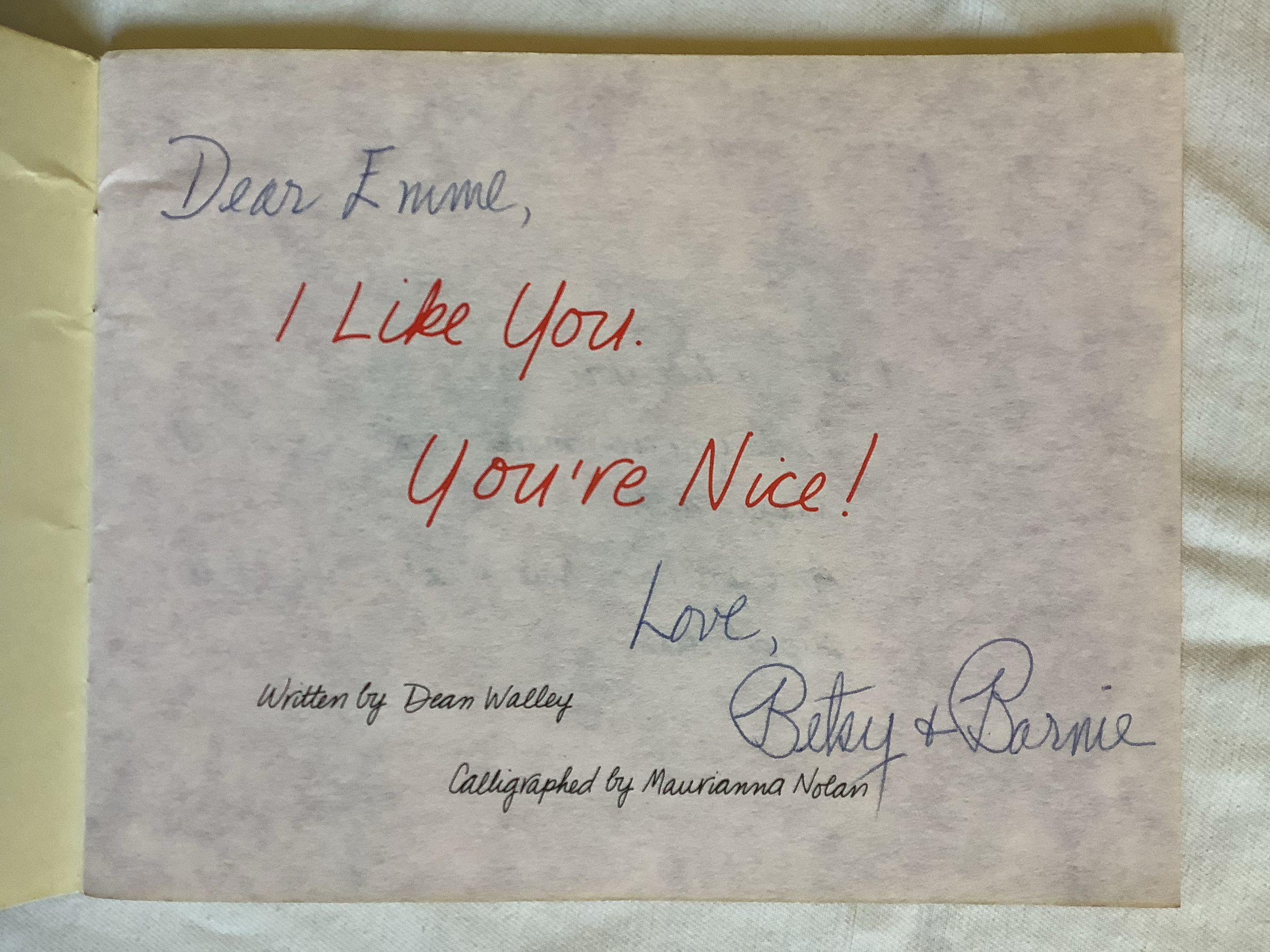 Dear Emme, [I like you. You are Nice!] Love, Betsy & BarnieLanguage