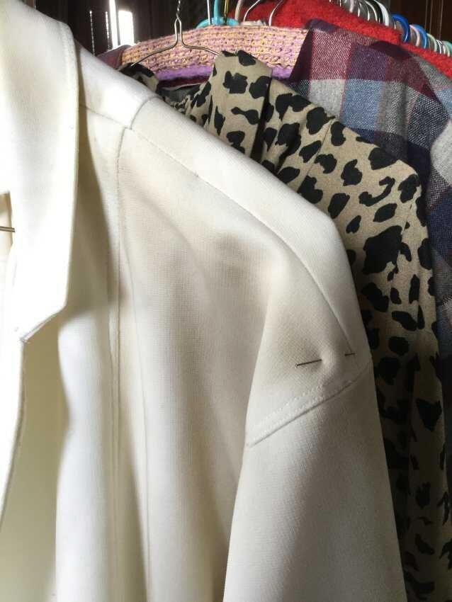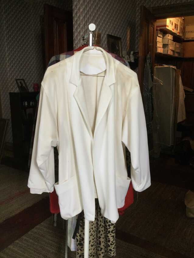 jacket, white poly, HM ,unfinished dirty/washed