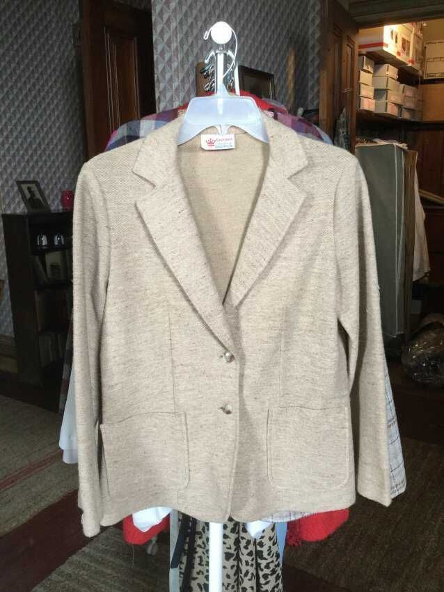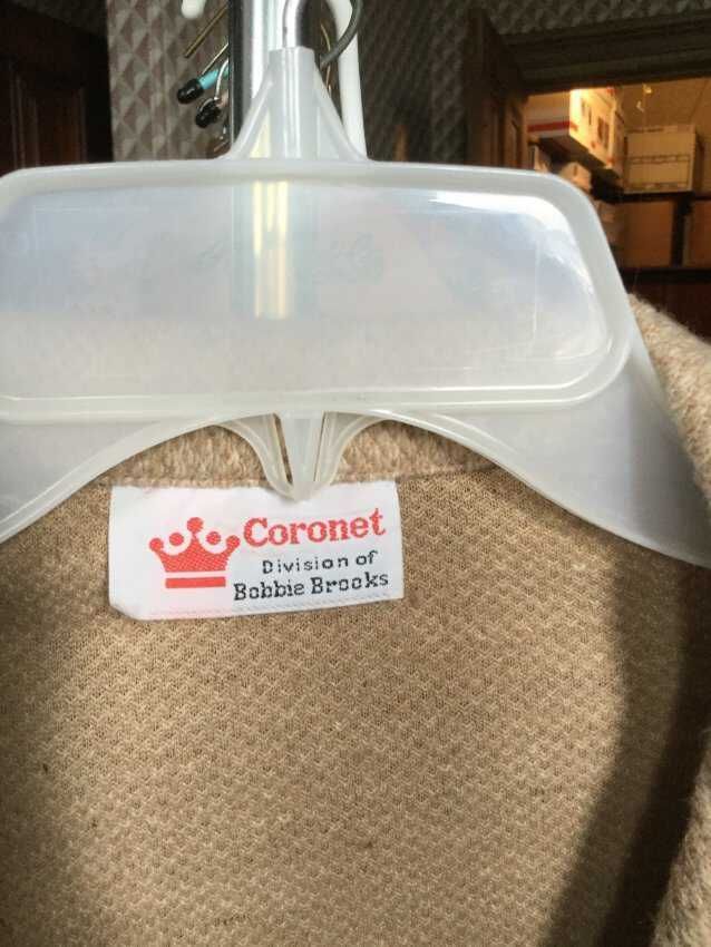 jacket, knit, tan, 2 bottons 2 pockets, Coronet Bobby Brooks