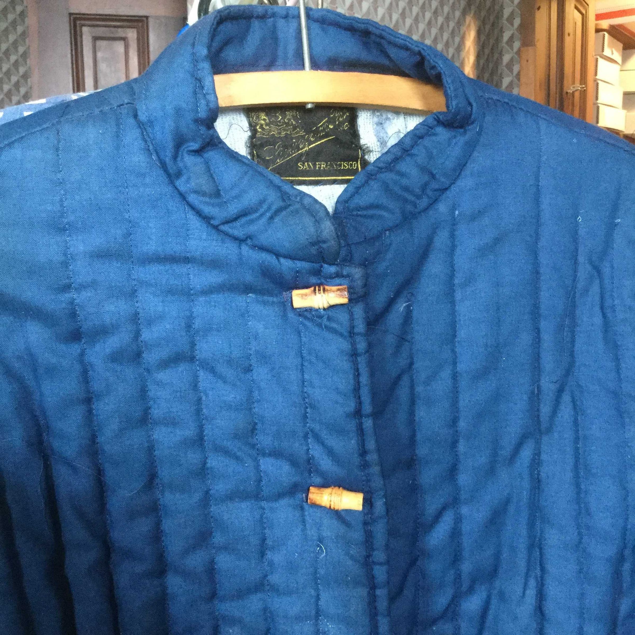jacket, quilted, blue, Llivingston Bros. SF.bamboo fasteners