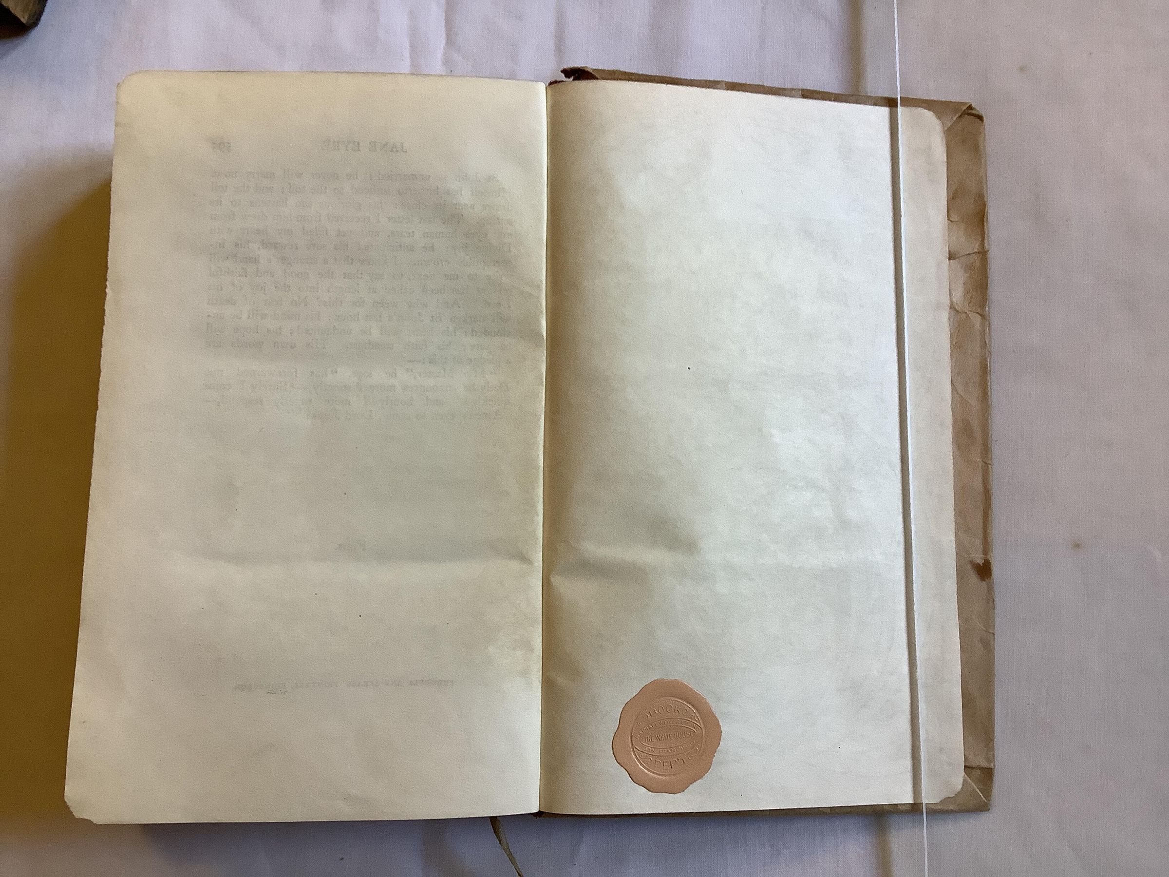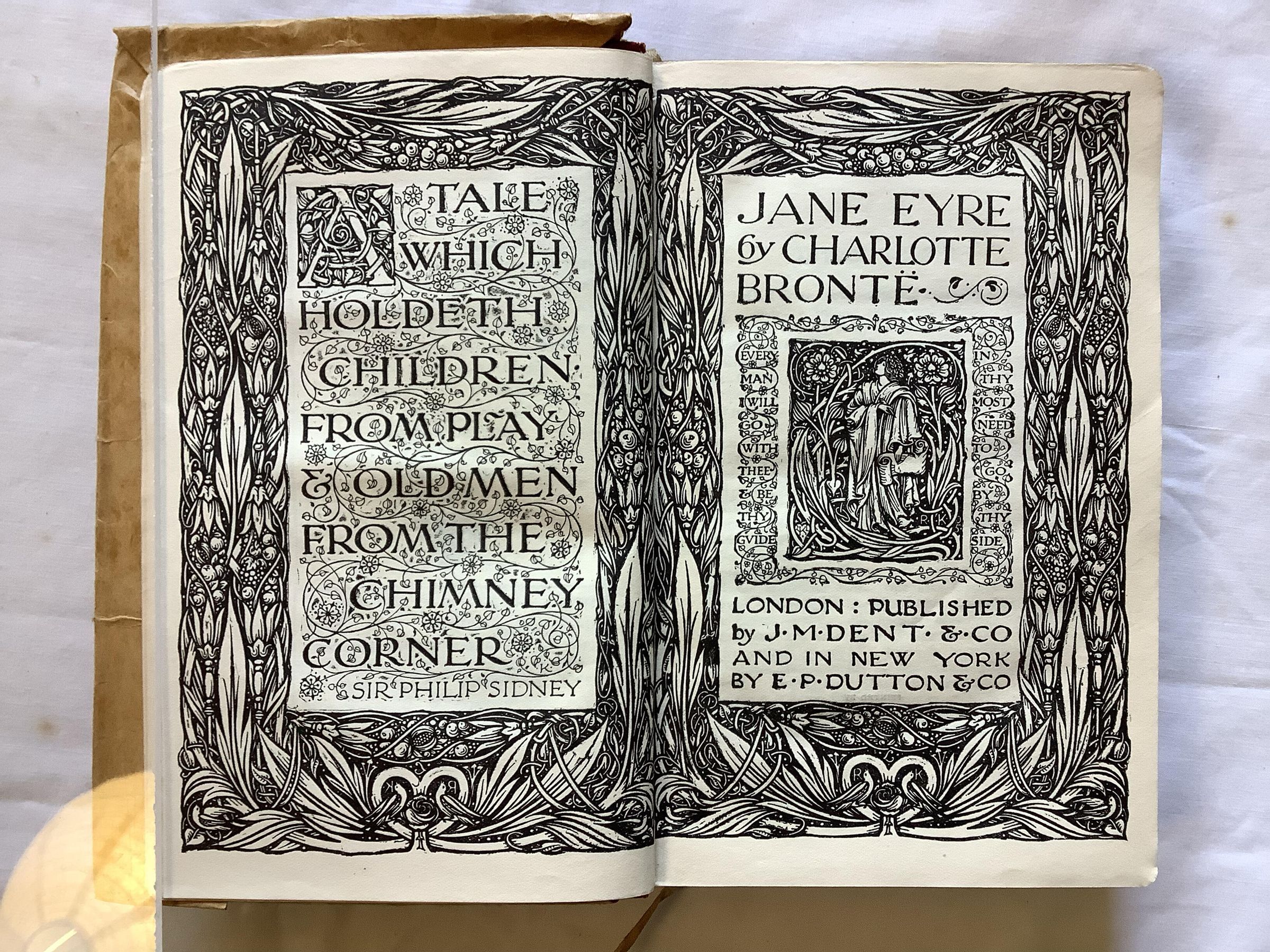 Novel which follows the experiences of its eponymous heroine, including her growth to adulthood and her love for Mr. Rochester, the brooding master of Thornfield Hall. The novel revolutionised prose fiction by being the first to focus on its protagonist's moral and spiritual development through an intimate first-person narrative. -- WikipediaInscription/Signature/Marks