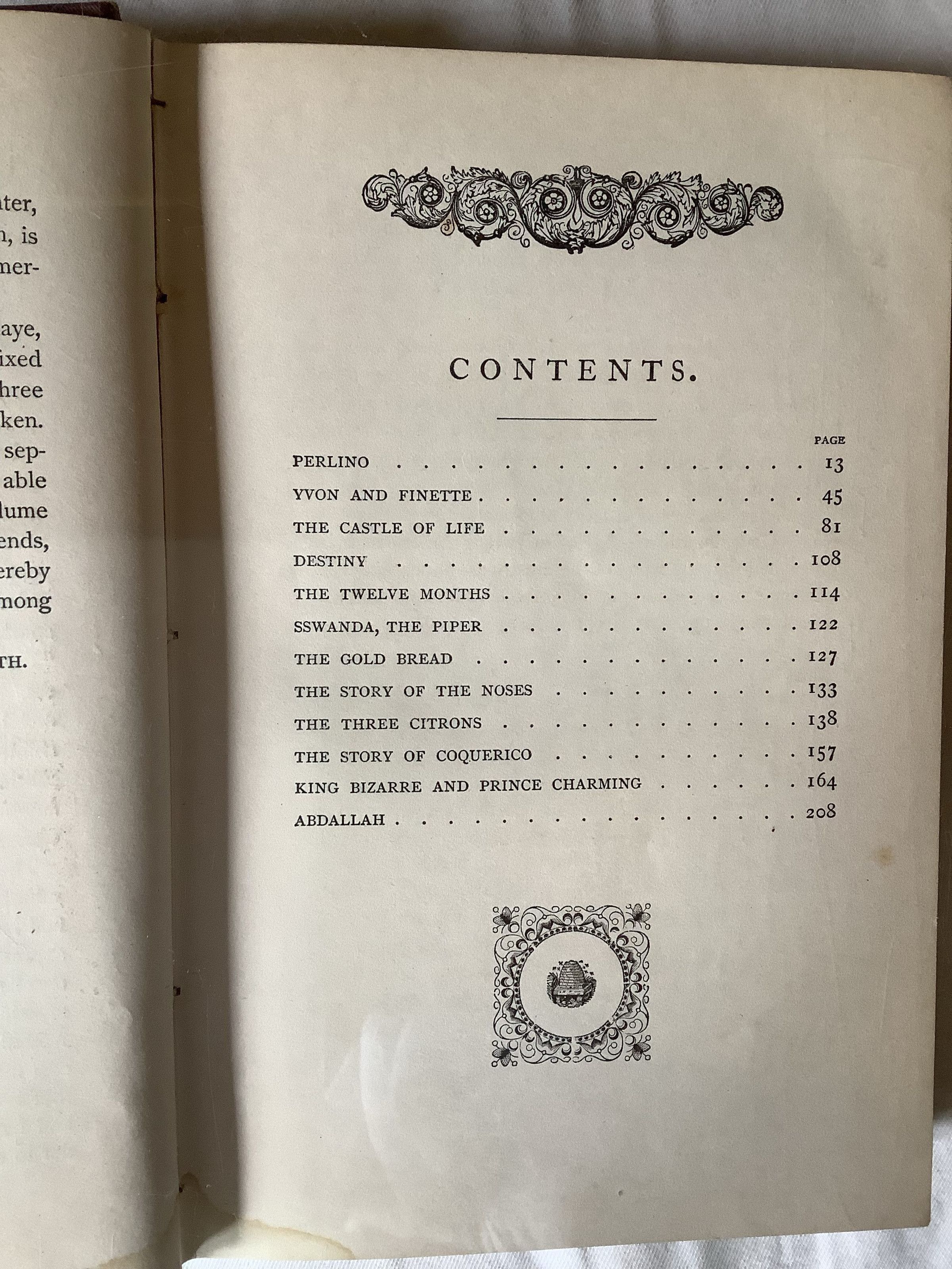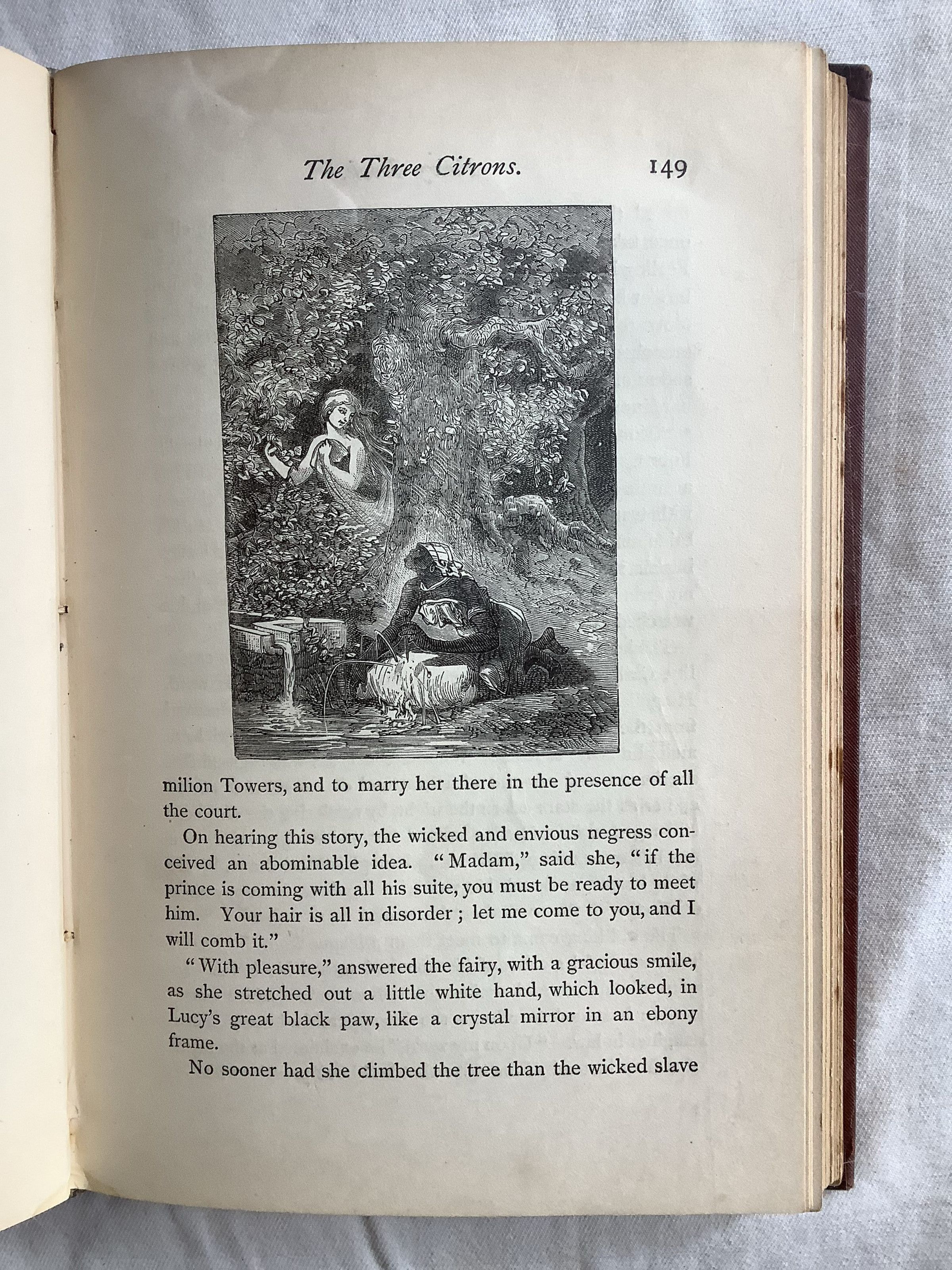 First edition of a delightful collection of fairy tales translated from the French(...) "Fairy Book" includes twelve tales, although the first and the last are more novella than short story length. The complete contents are as follows: Perlino, a Neapolitan Tale; Yvon and Finette, a Tale of Brittany; The Castle of Life, a Tale of Salerno; Destiny, a Dalmatian Tale; The Twelve Months, a Bohemian Tale; Sswanda, the Piper, a Bohemian Tale; The Gold Bread, a Hungarian Tale; The Story of the Noses, a Bohemian Tale; The Three Citrons, a Neapolitan Tale; Story of Coquerico, a Spanish Tale; King Bizarre and Prince Charming; or, the Art of Governing Men, a Tale of All Nations; and Abdallah, or, the Four-Leaved Clover, an Arabian Tale. --Biblio.comInscription/Signature/Marks
