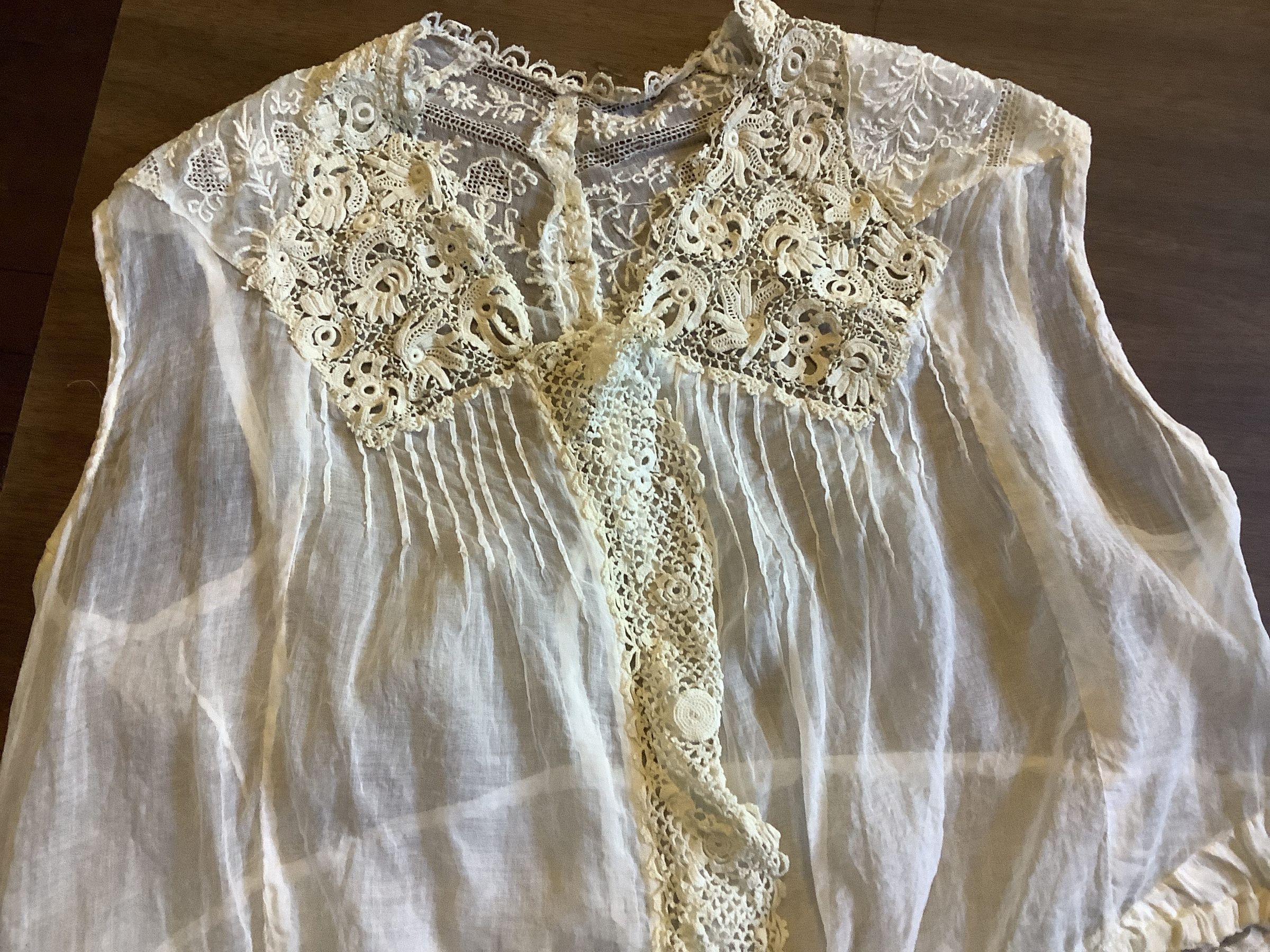 Undervest with pintucks and lace crochet