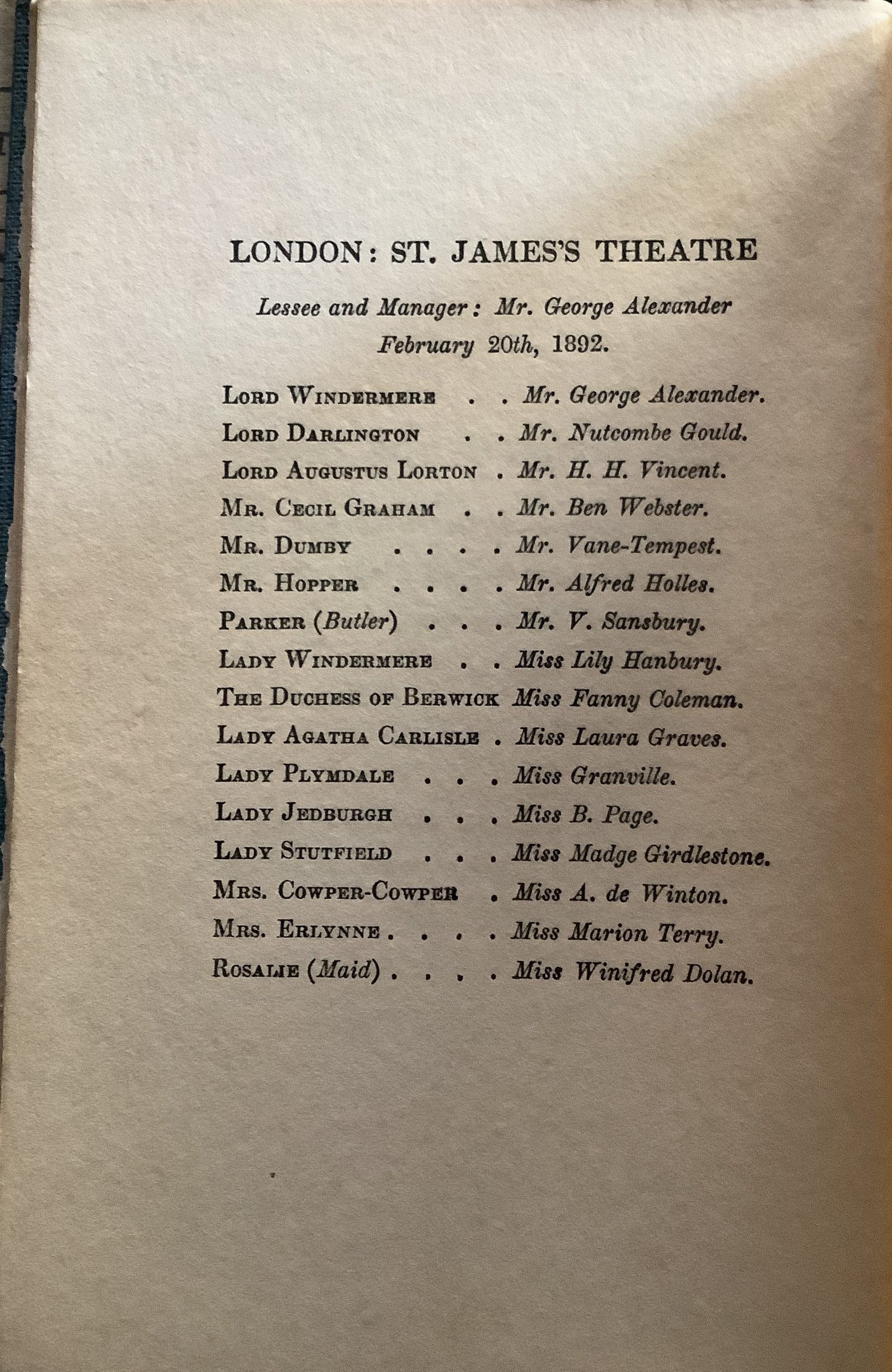 Lady Windermere’s FanEntry/Object ID