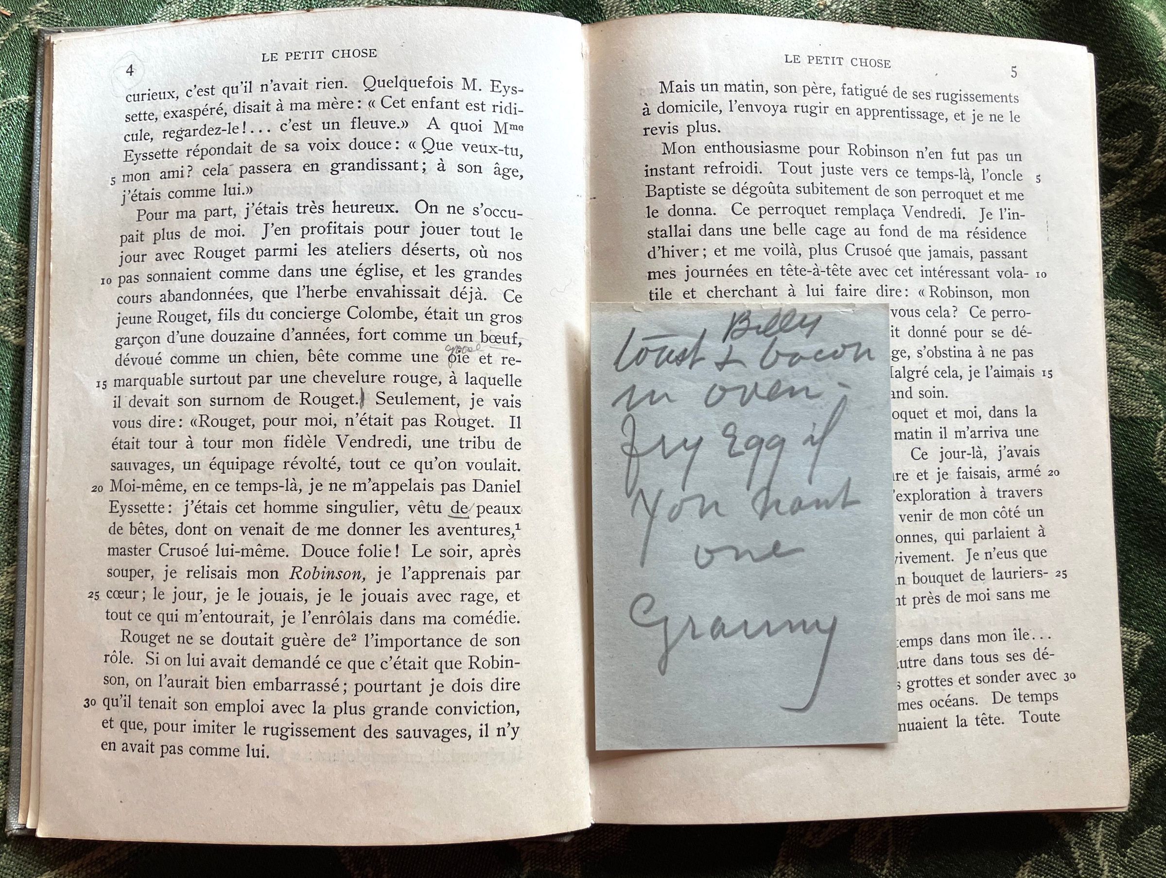 Autobiography of Daudet. Taking its title from the author's nickname, it recounts Daudet's early years from childhood, through boarding school and finally to Paris and his first successes as an author. It was Daudet's first published, though not first written, work. - WikipediaInscription/Signature/Marks