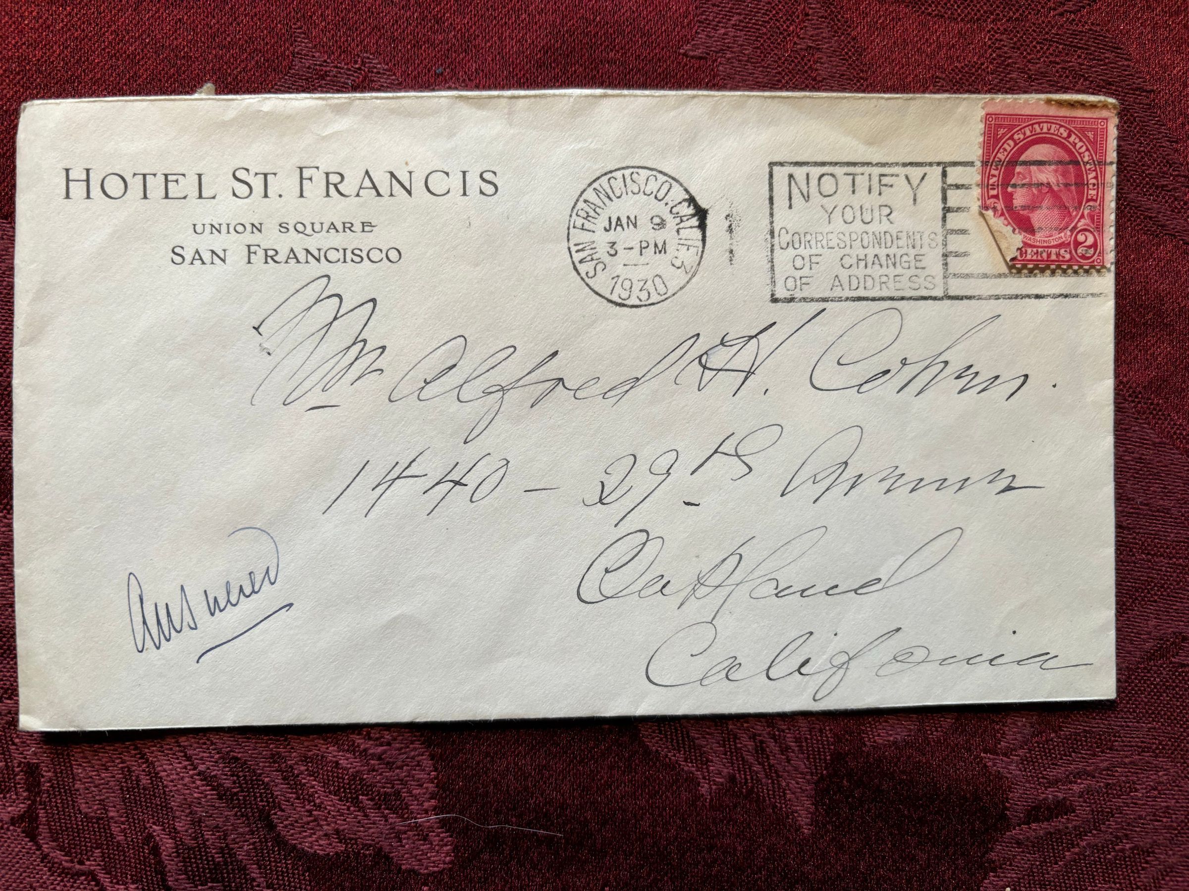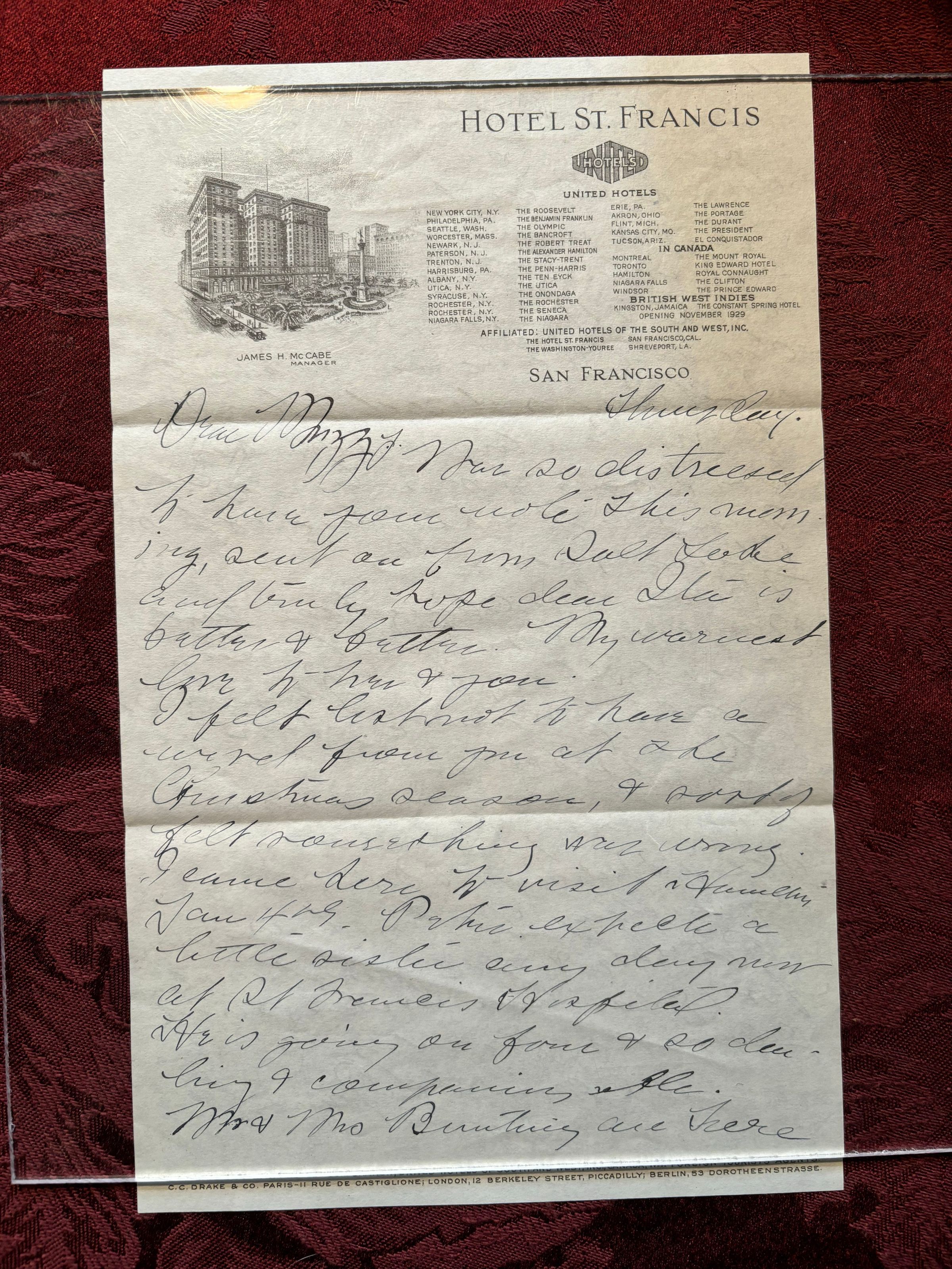 This is a letter from one of Emma's friends, wishing her a good year, and giving everyday updates. It is written on Hotel St. Francis paper. It is signed F. S. Rand (?).Create Date