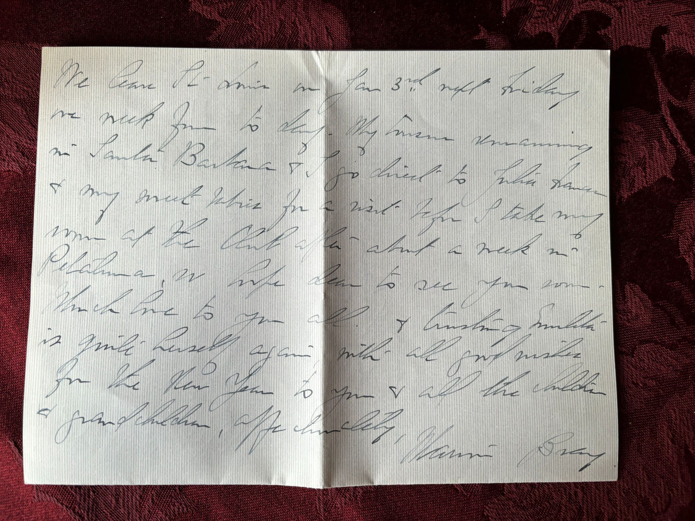 This is a letter to Emelita from a Bray relative, maybe Mami Bray (?), the name is somewhat hard to read and is unknown to current family members. The writer is sending their regards and love to Emma during Emelita's sickness.Create Date