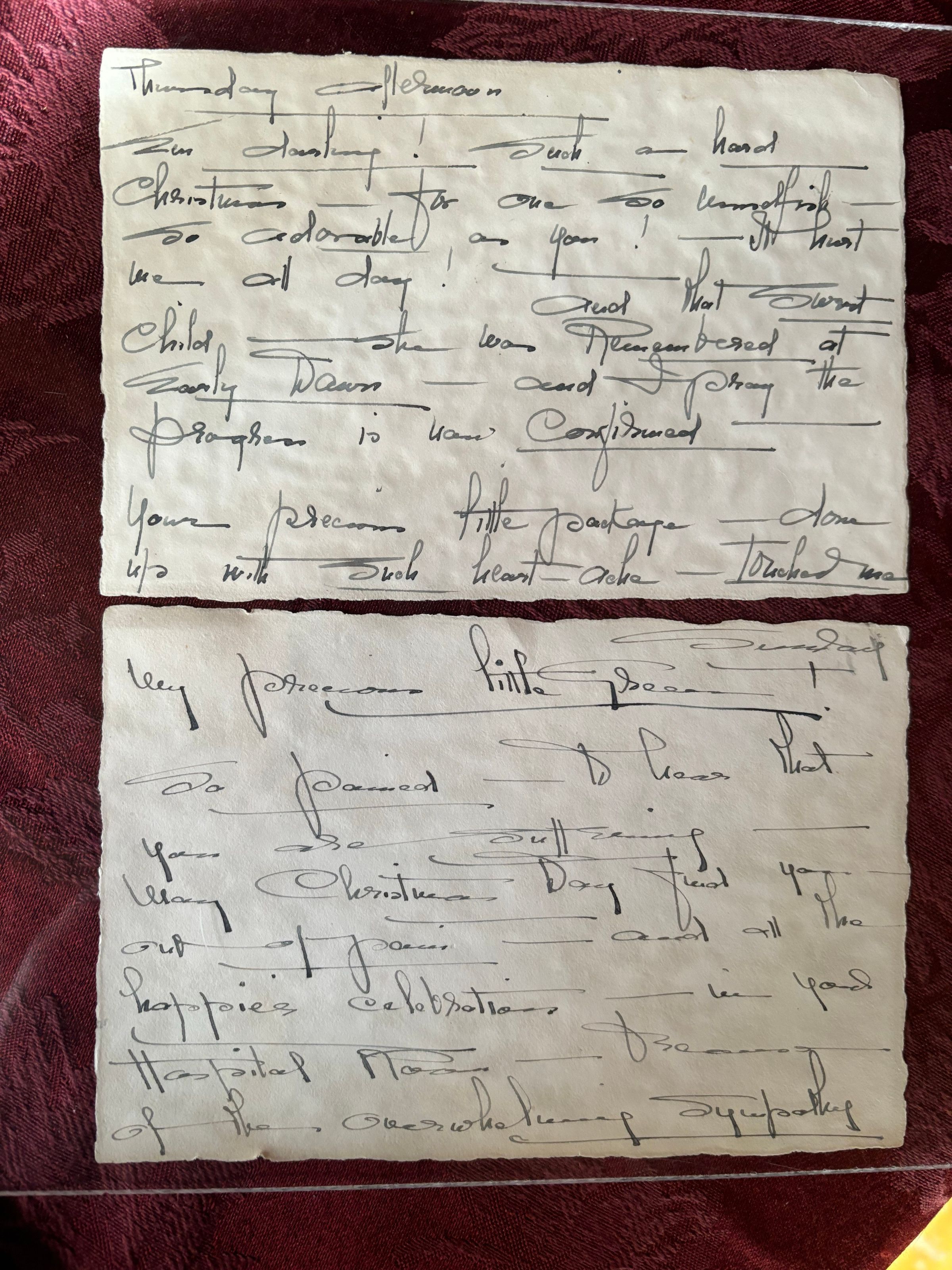 This is a letter to Emma, thanking her for a package she sent. We are unsure of the sender, but the handwriting is similar to a card from her three siblings, so likely it is from one of them. Julia Bray CoonCreate Date