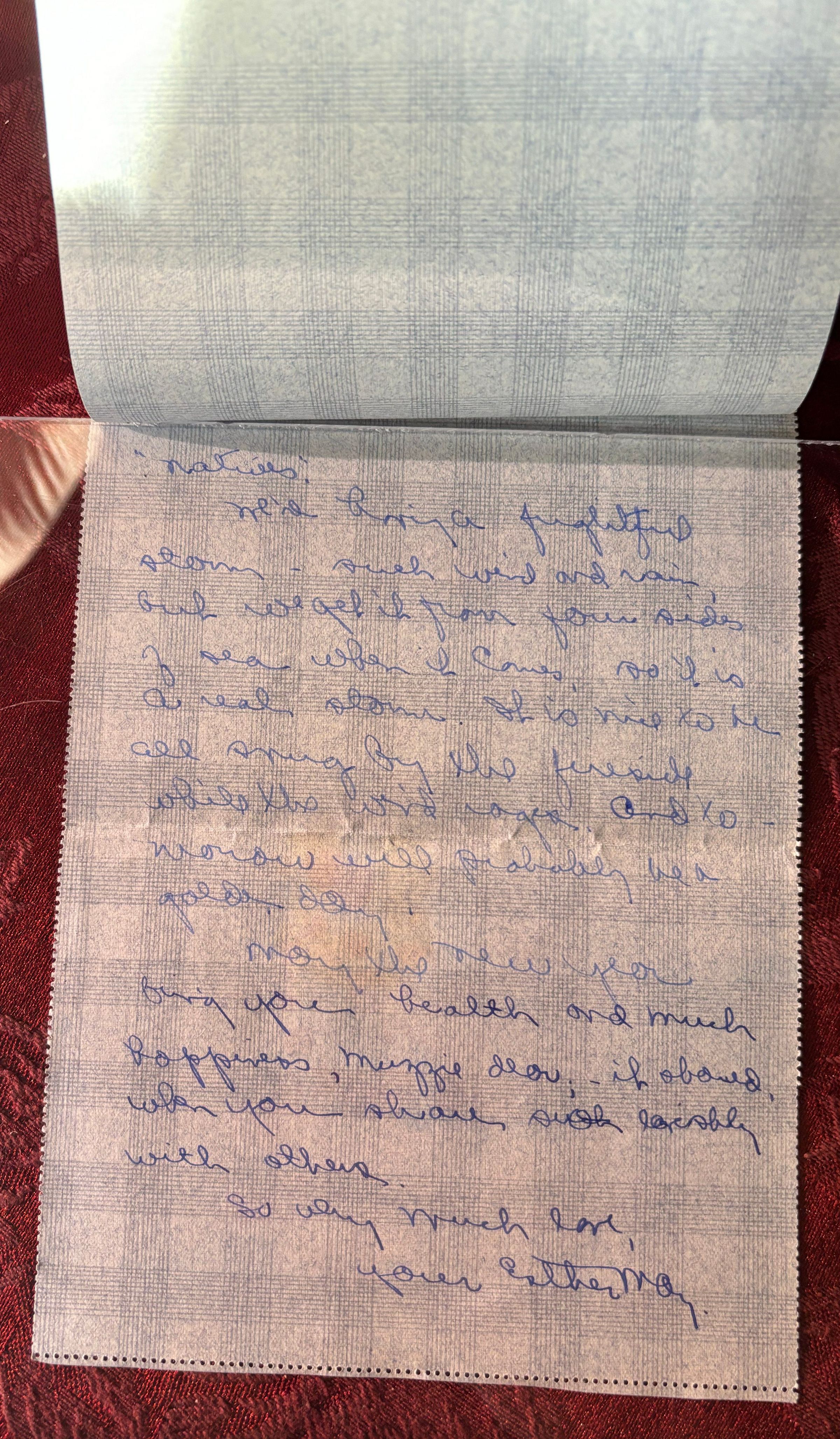 A letter to Emma from her friend Esther May (?). She wishes Emma a happy and healthy new year, and thanks her for sending a card. The envelope and letter are connected and the letter is double sided.Create Date