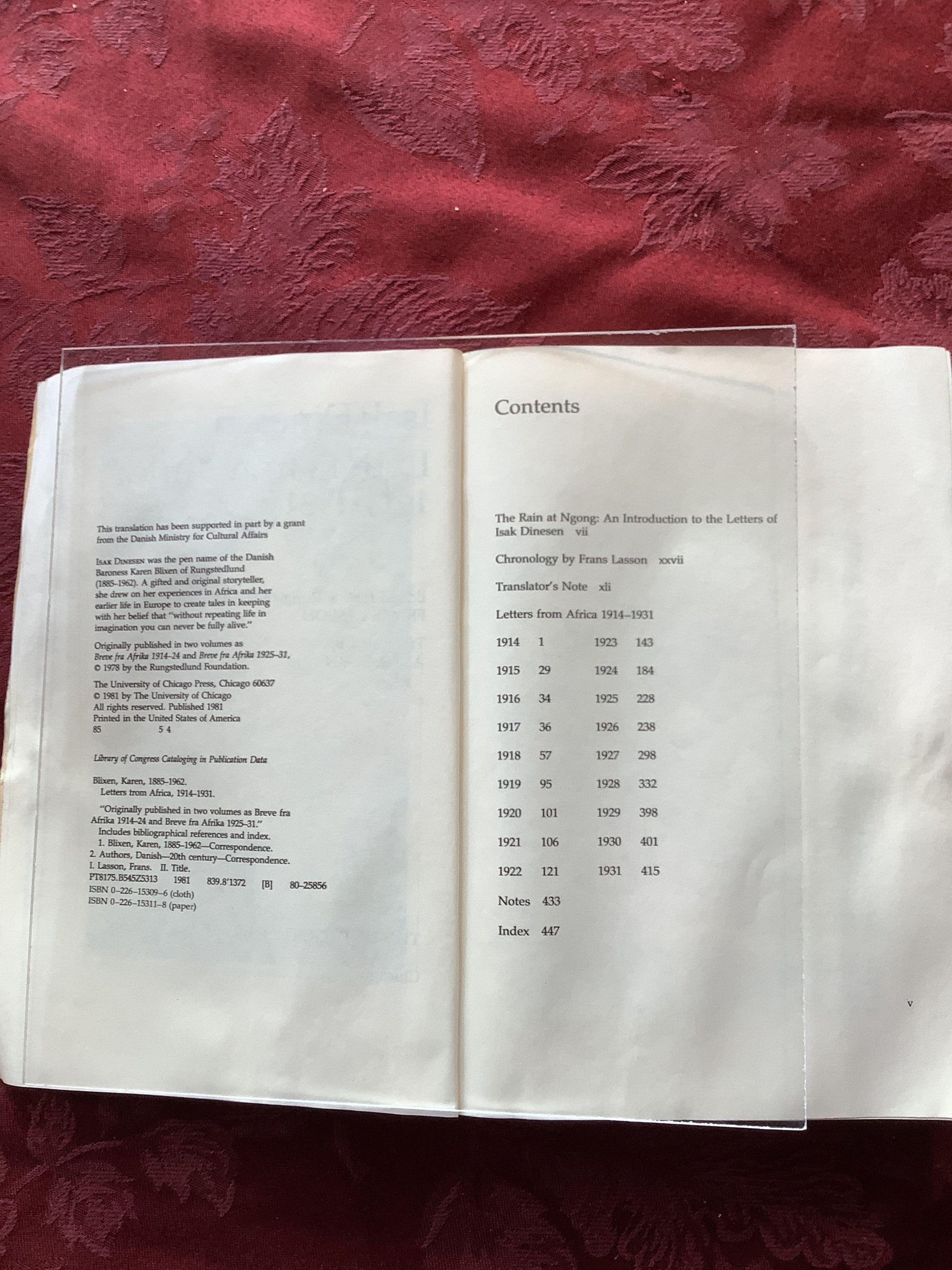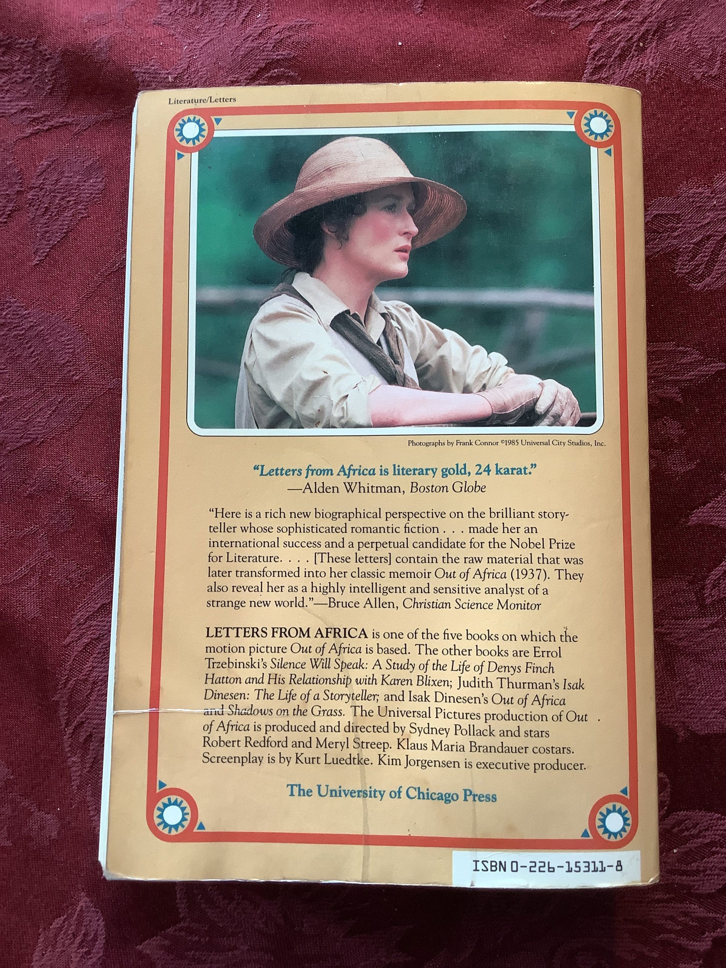 One of 5 books that inspired the film Out of Africa. Letters from Isak Dinesen containing the letters and experiences that inspired the memoir.Inscription/Signature/Marks