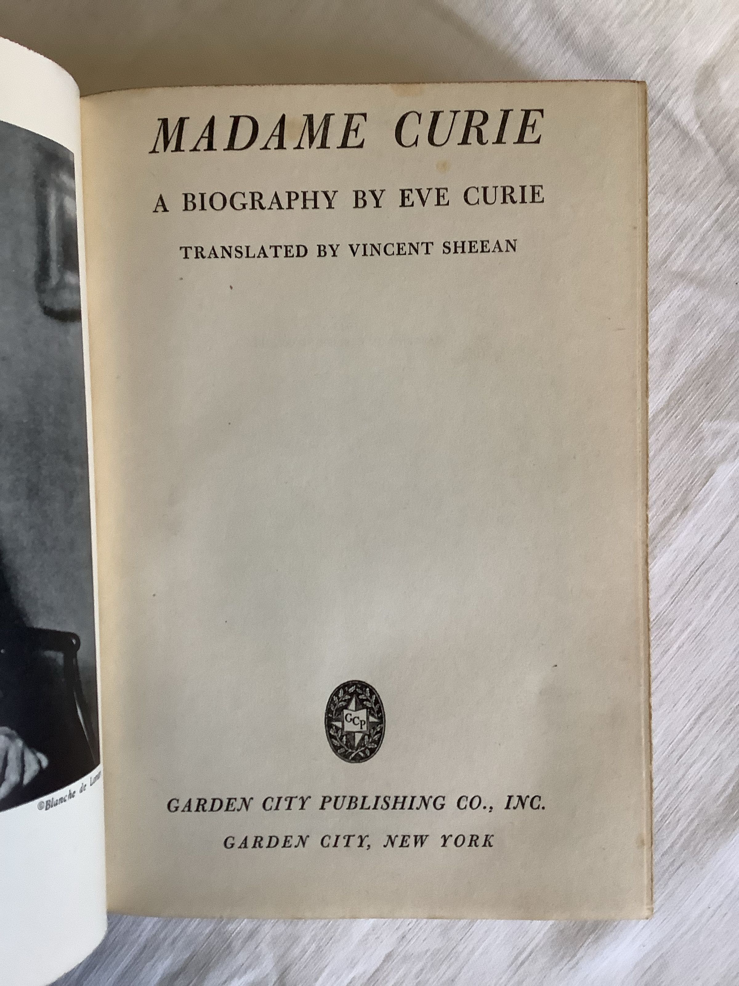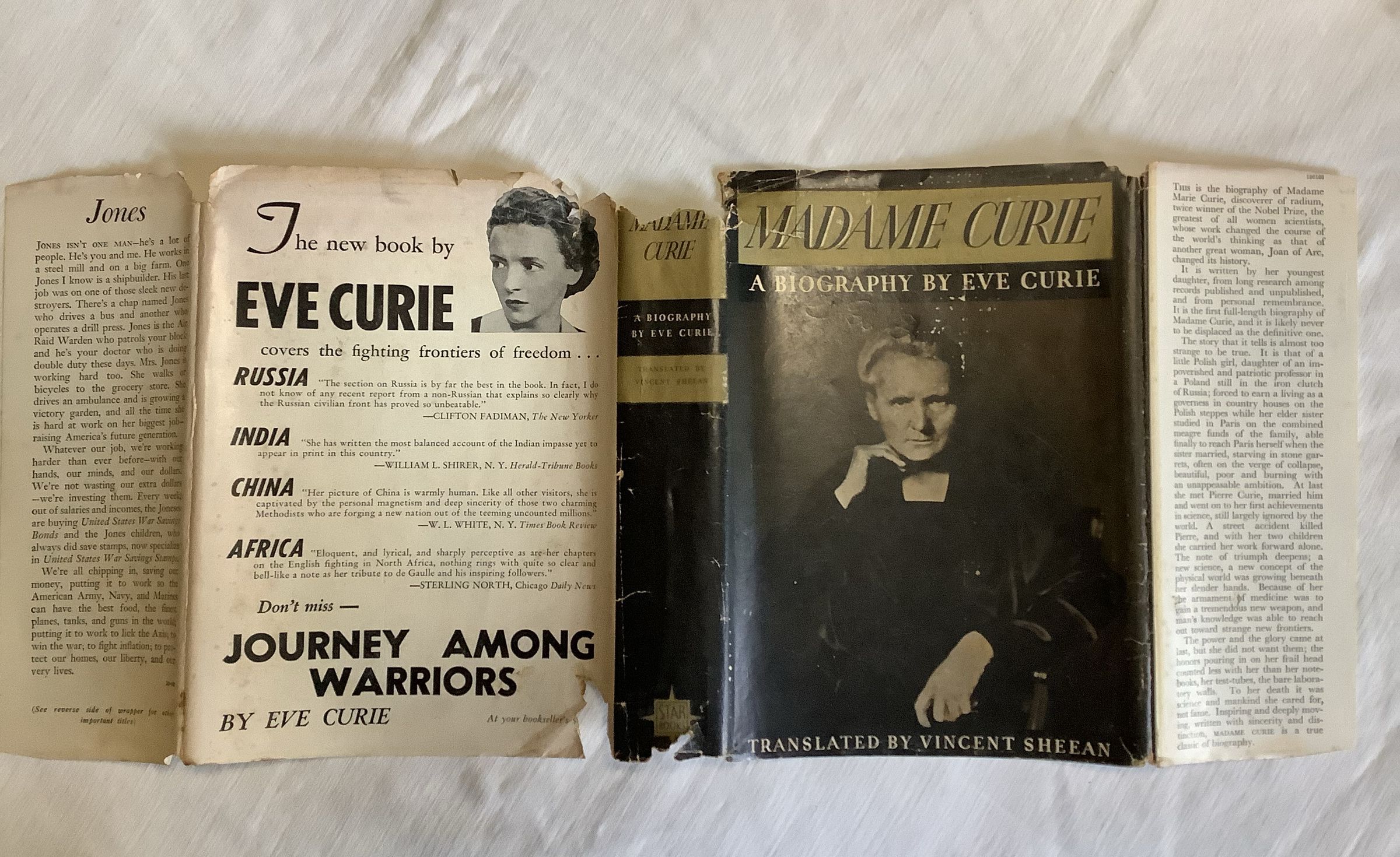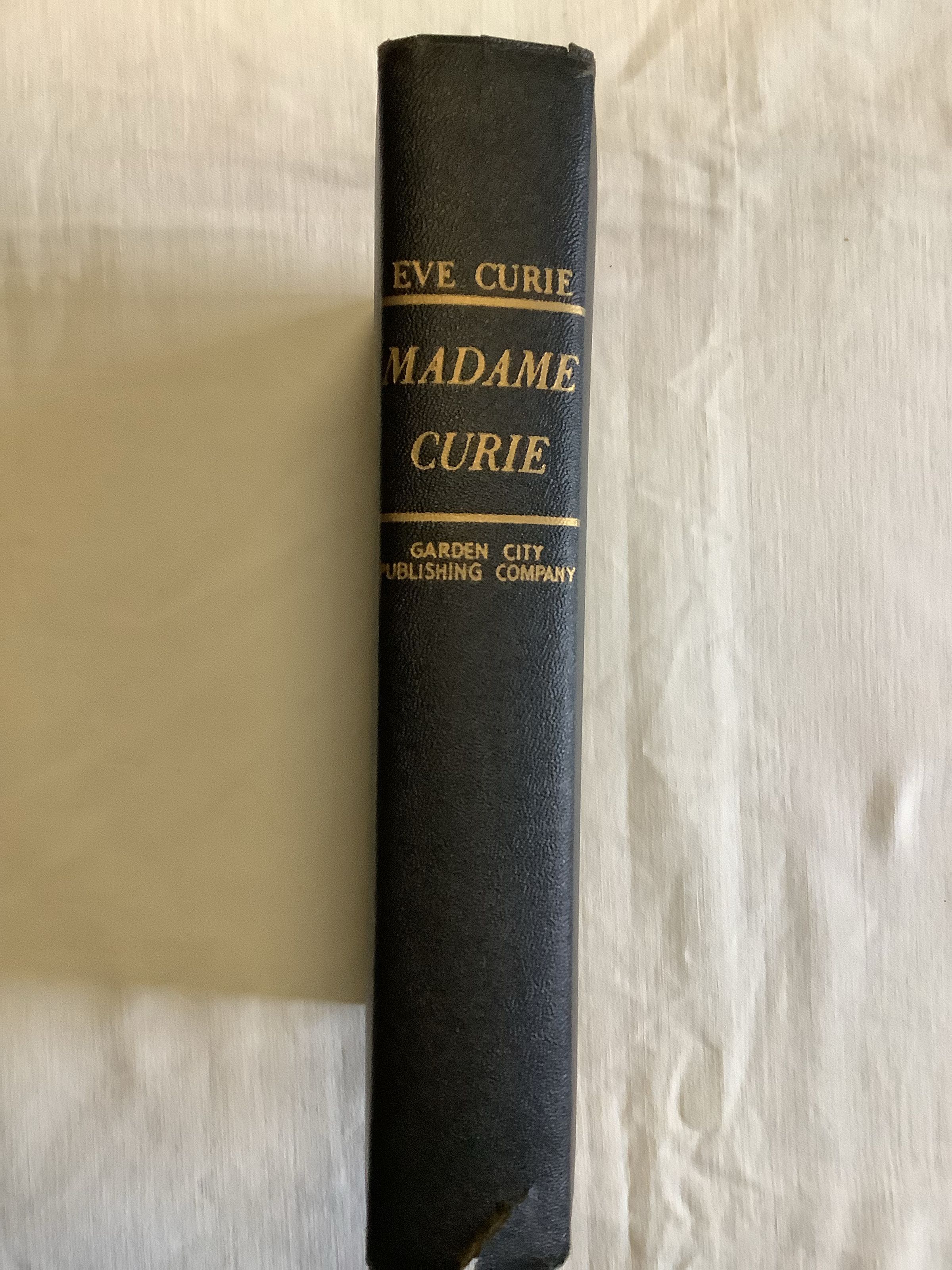 Biography of the prodigious scientist Marie Curie, that is different because the reason for her worship is not confined to her work and mind, or even to her roles as Polish immigrant, wife, or mother. It is movingly written by her daughter, Eve, and the author convinces us to care about her because she is human and fragile, --fivebooks.comInscription/Signature/Marks