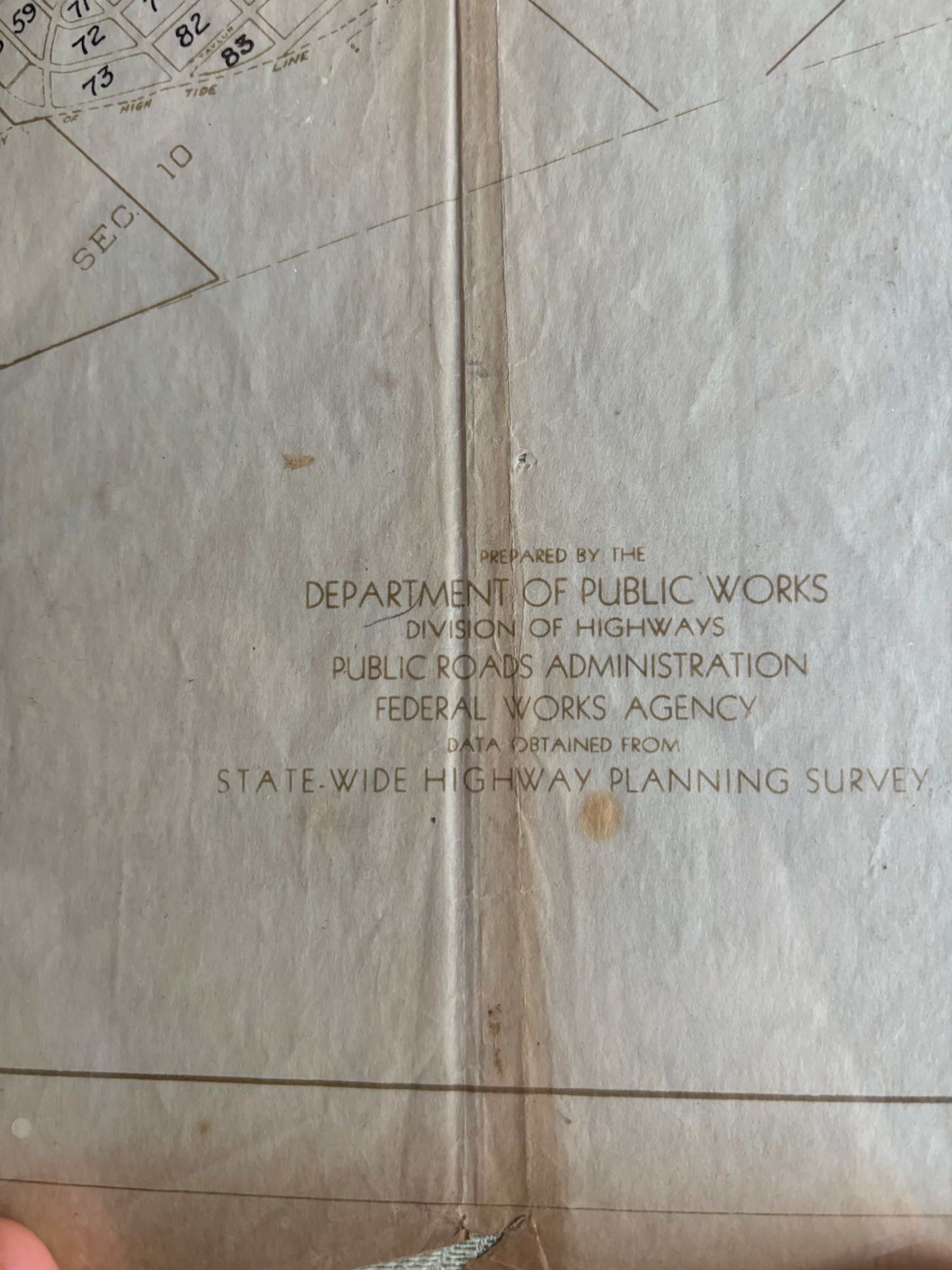 Department of Public Works Division of Highways Public Roads Administration Federal Works Agency data obtained from State Wide Highway Planning Survey 40" x 19"Collection