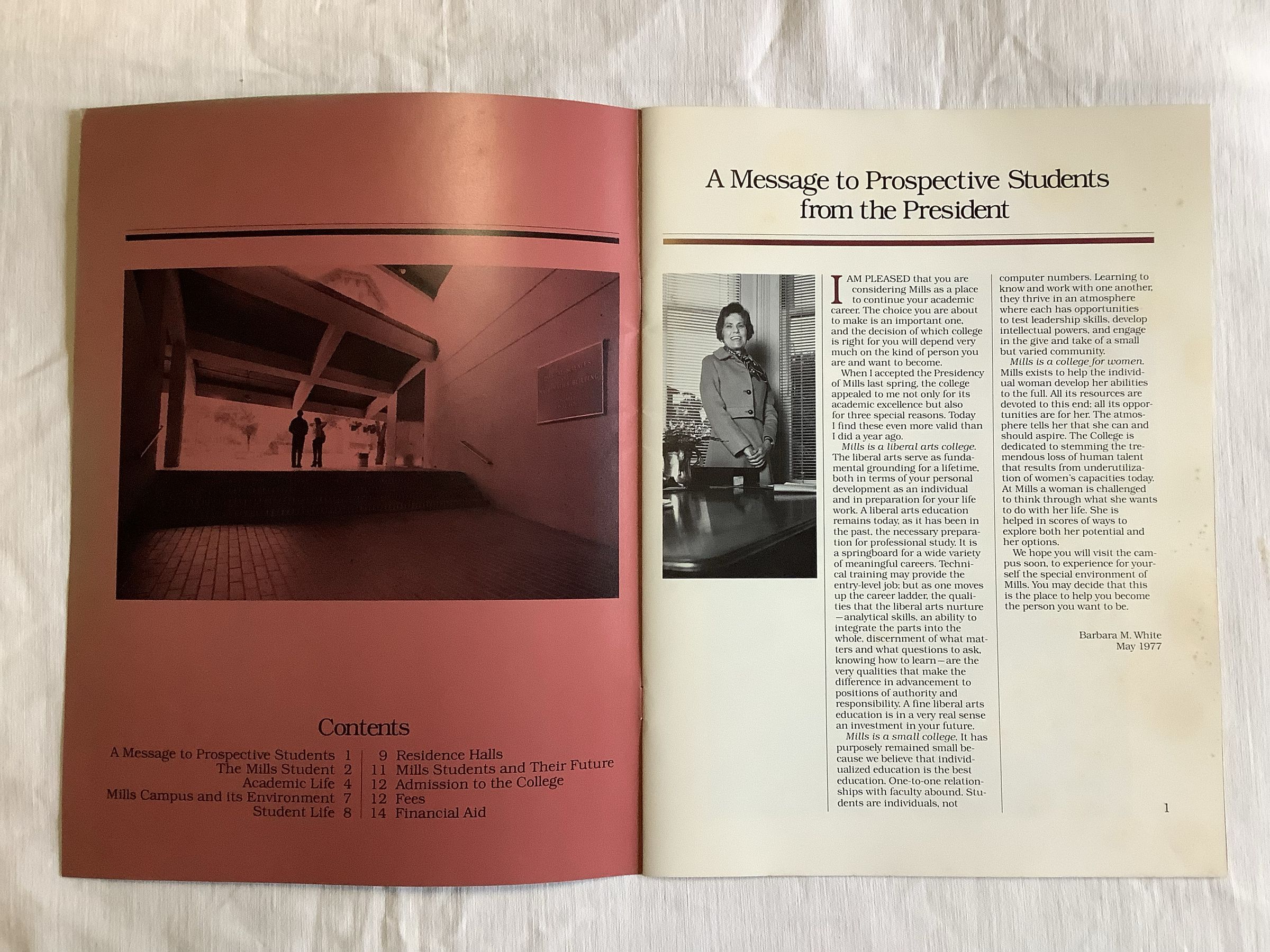 Mills College brochure by the Office of Admissions, 1977.