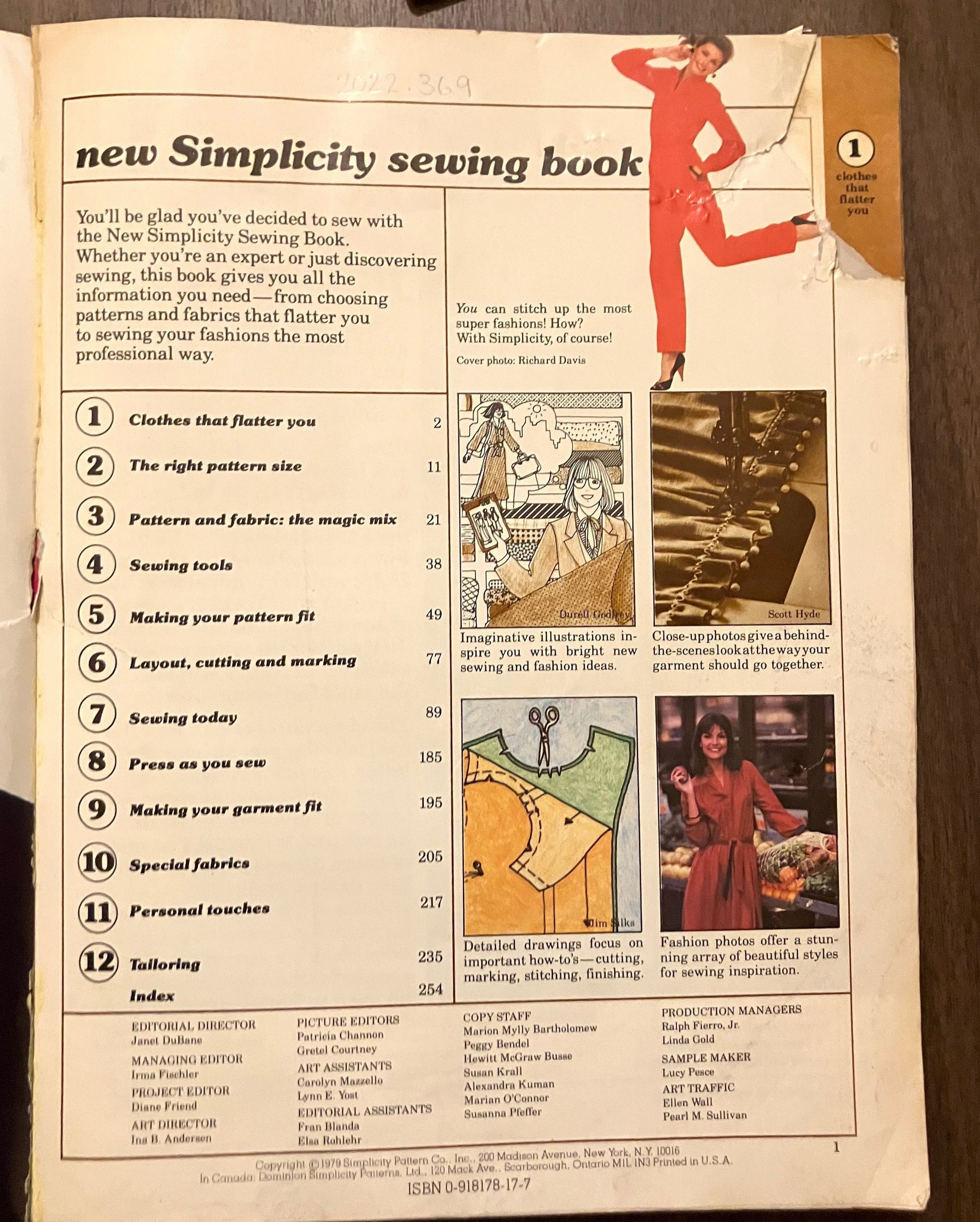 Instructional sewing book. Contents: Clothes that flatter you, the right pattern size, pattern and fabric, etc.