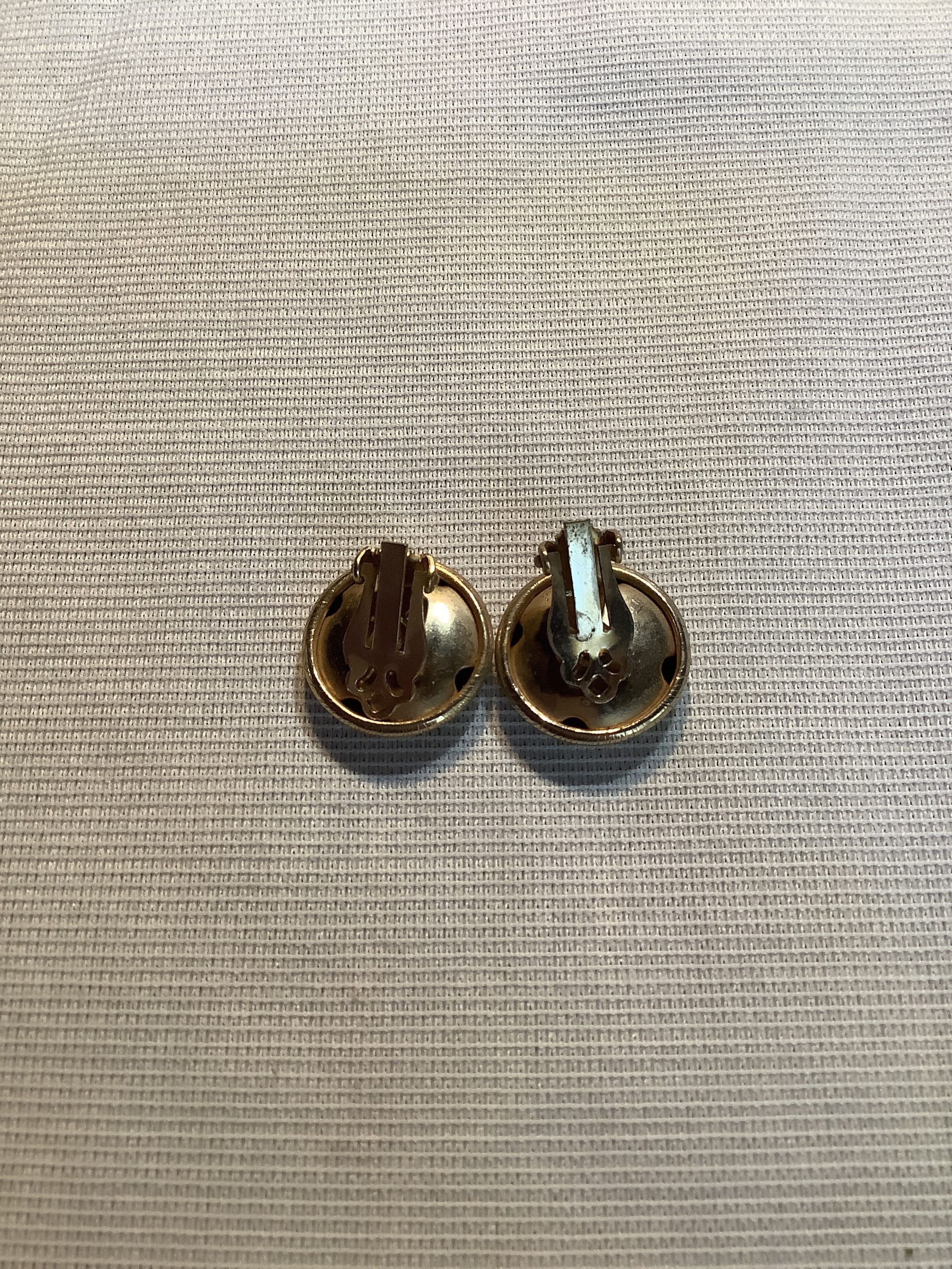 Pair of gold colored, circle, clip back earrings.