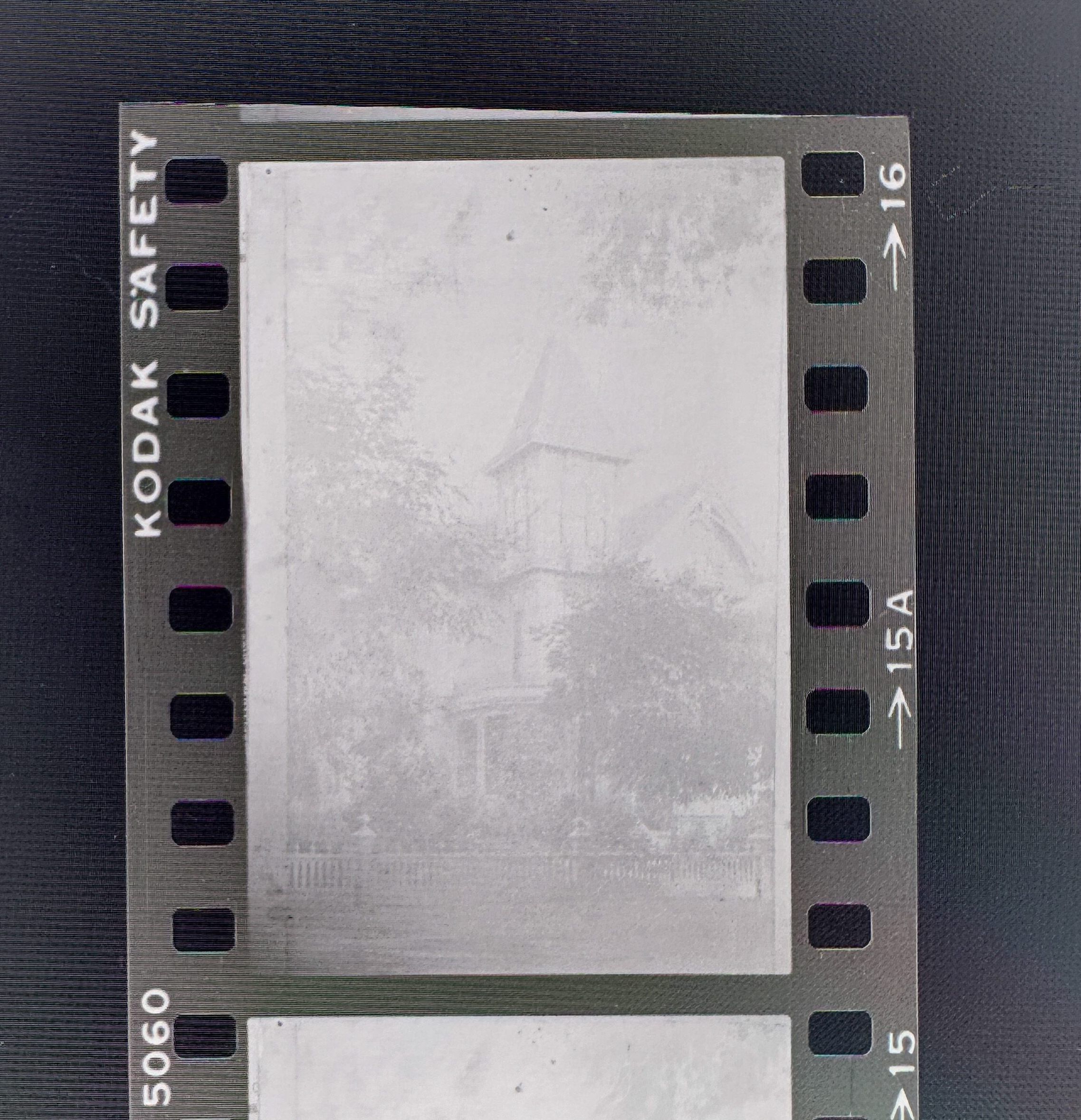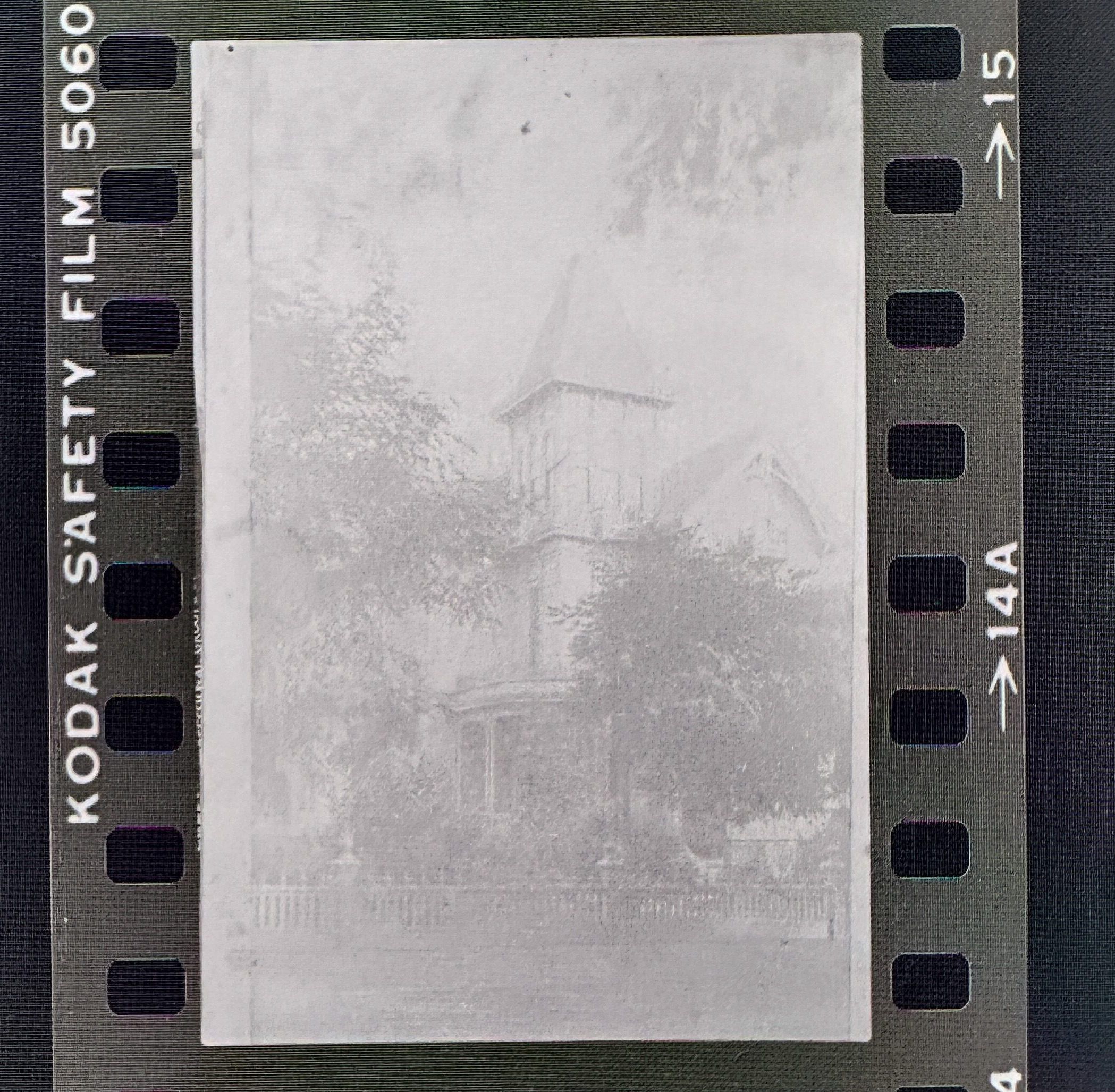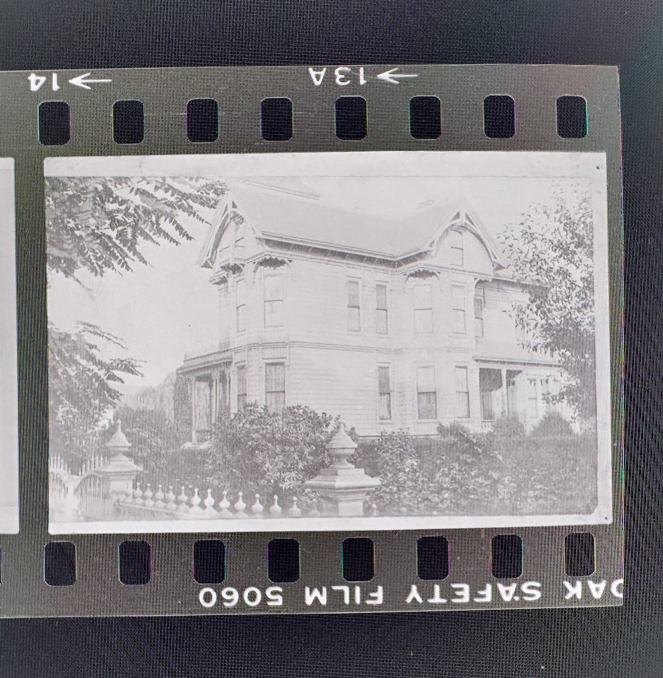 This photo negative strip focuses on capturing the exterior of Cohen Bray House. The three slides show a front and a side angle.Collection