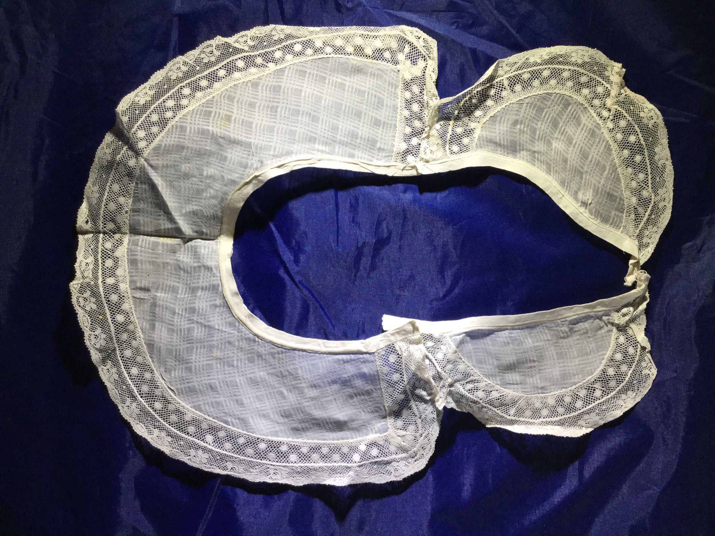 Plaid organza 2-piece v-neck round collar with 2 laces as trim