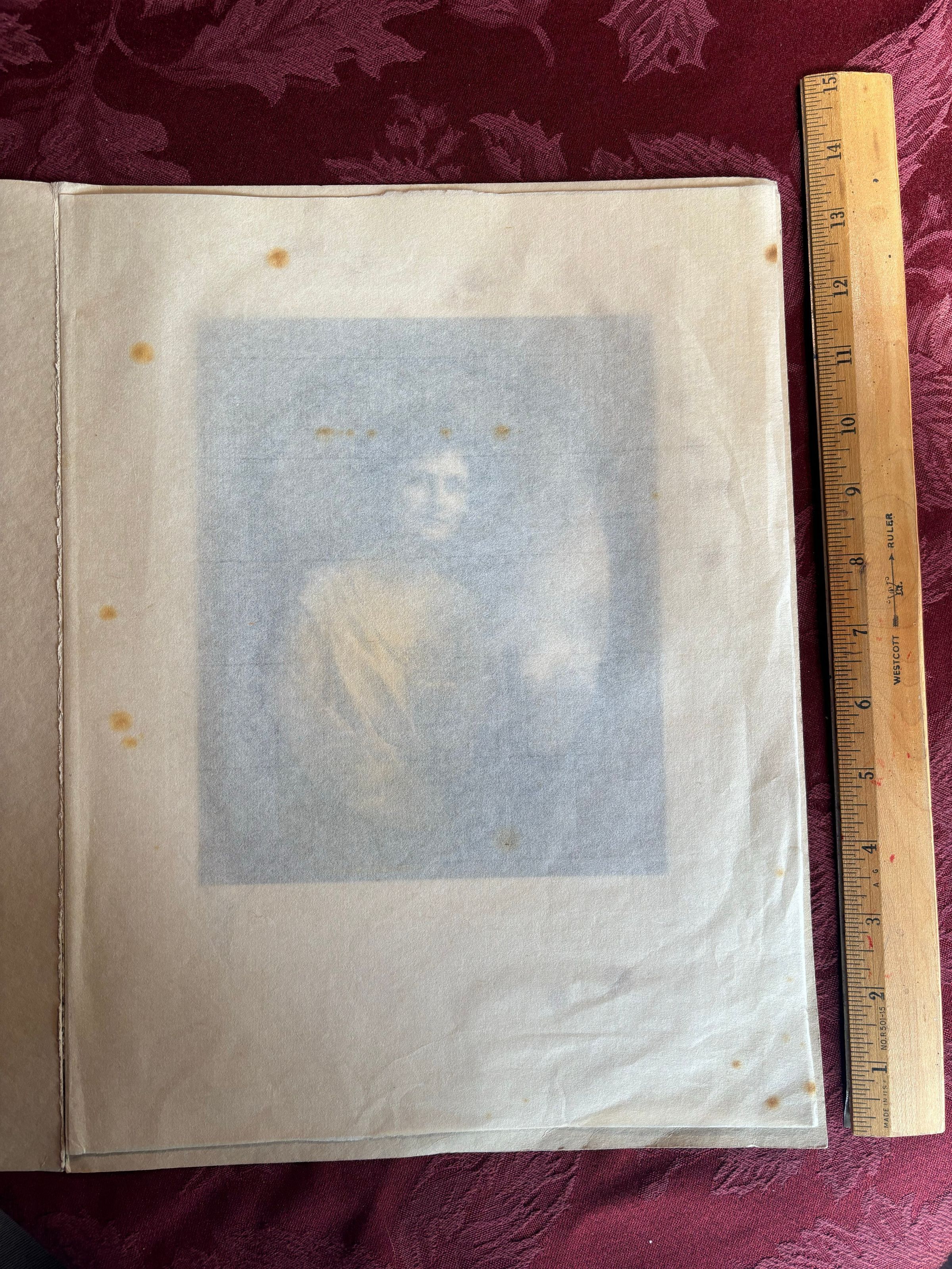 A portrait of an unknown woman, maybe A. H. Cohen's sister. It is protected in a folder, with a piece of parchment inside. The photo has some blooms of orange mold.Inscription/Signature/Marks