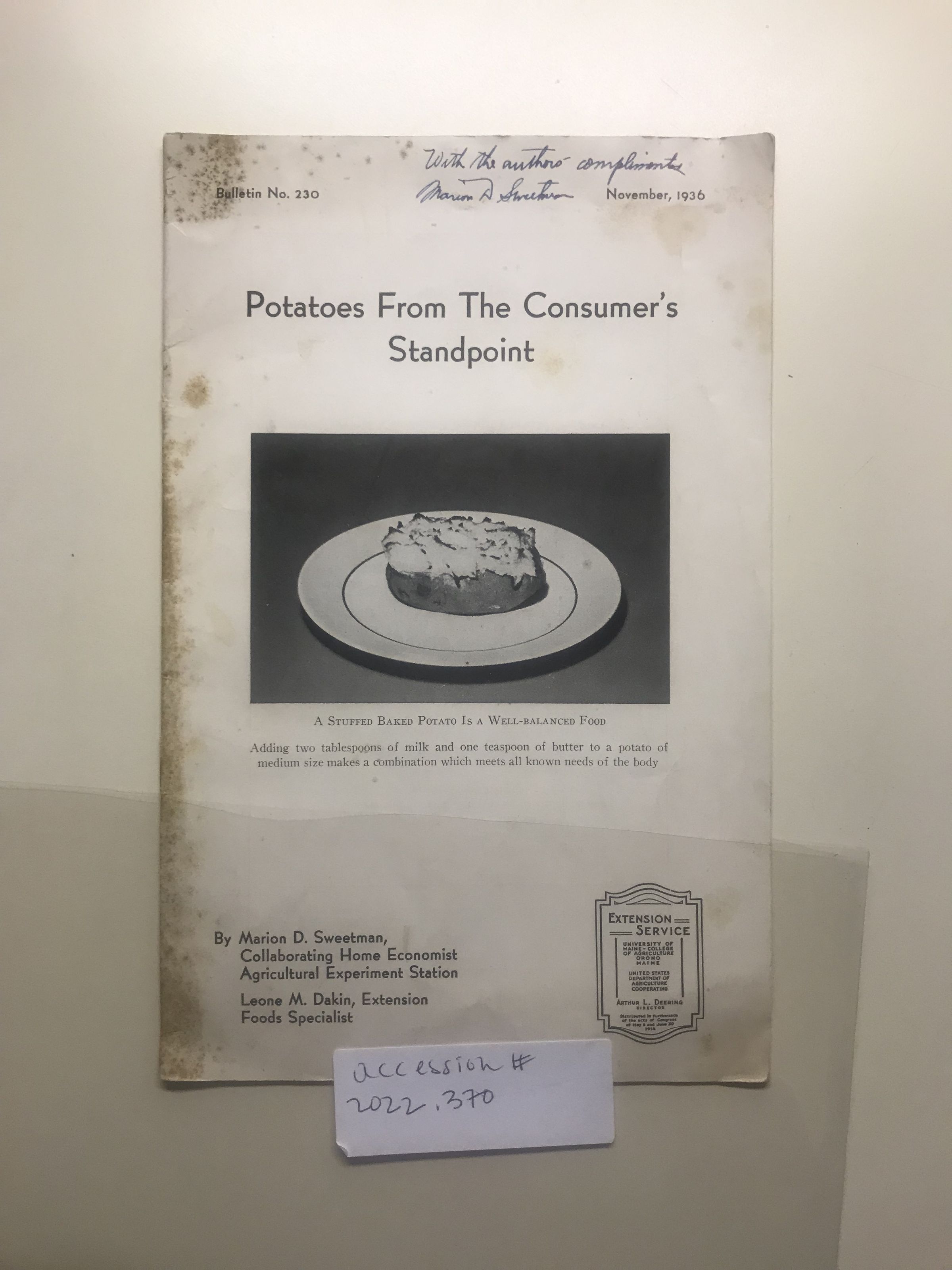 Potatoes From the Consumer's Standpoint: Marion SweetmanInscription/Signature/Marks