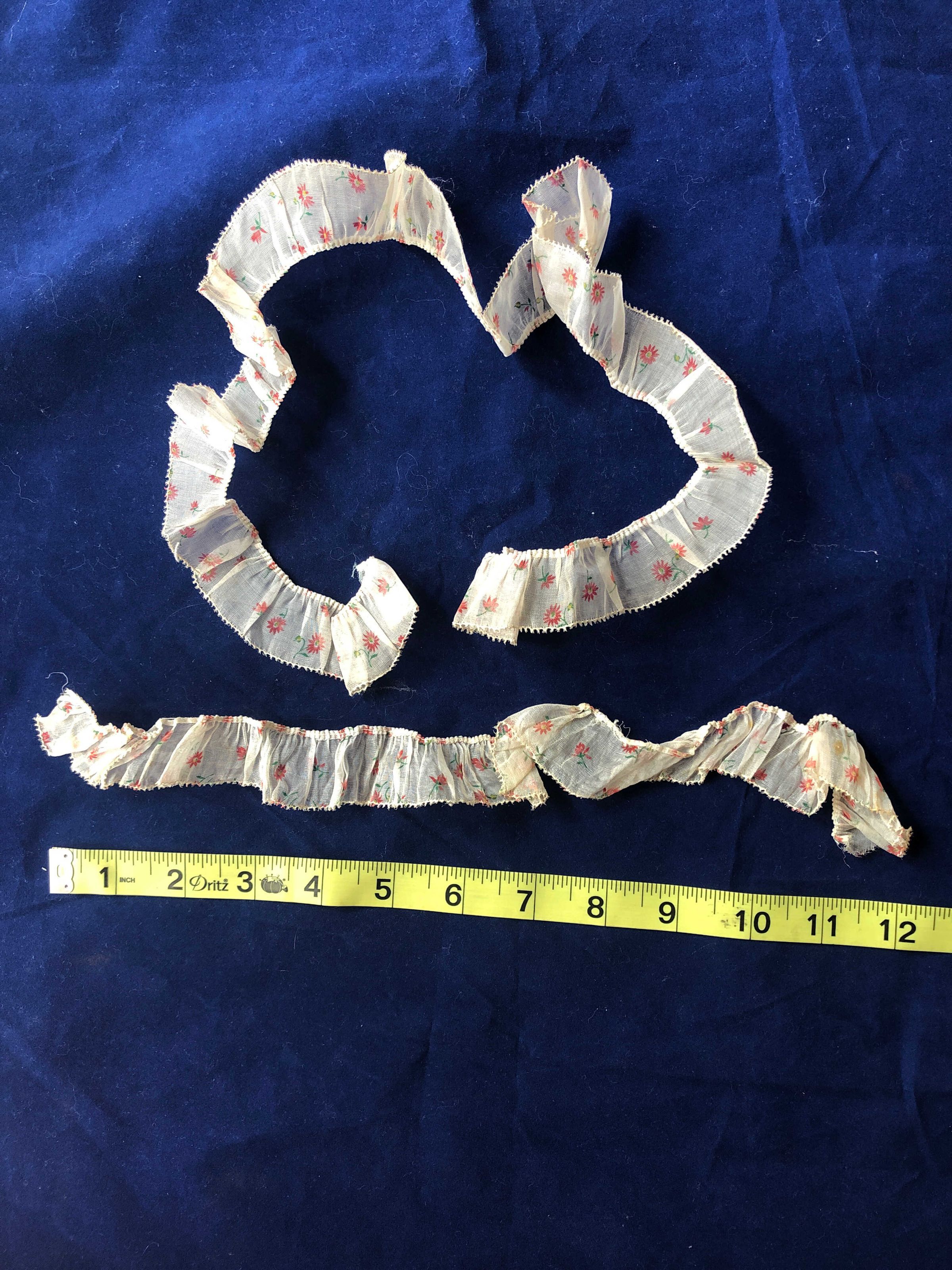 Printed floral organza ruffle trim, 1” wide