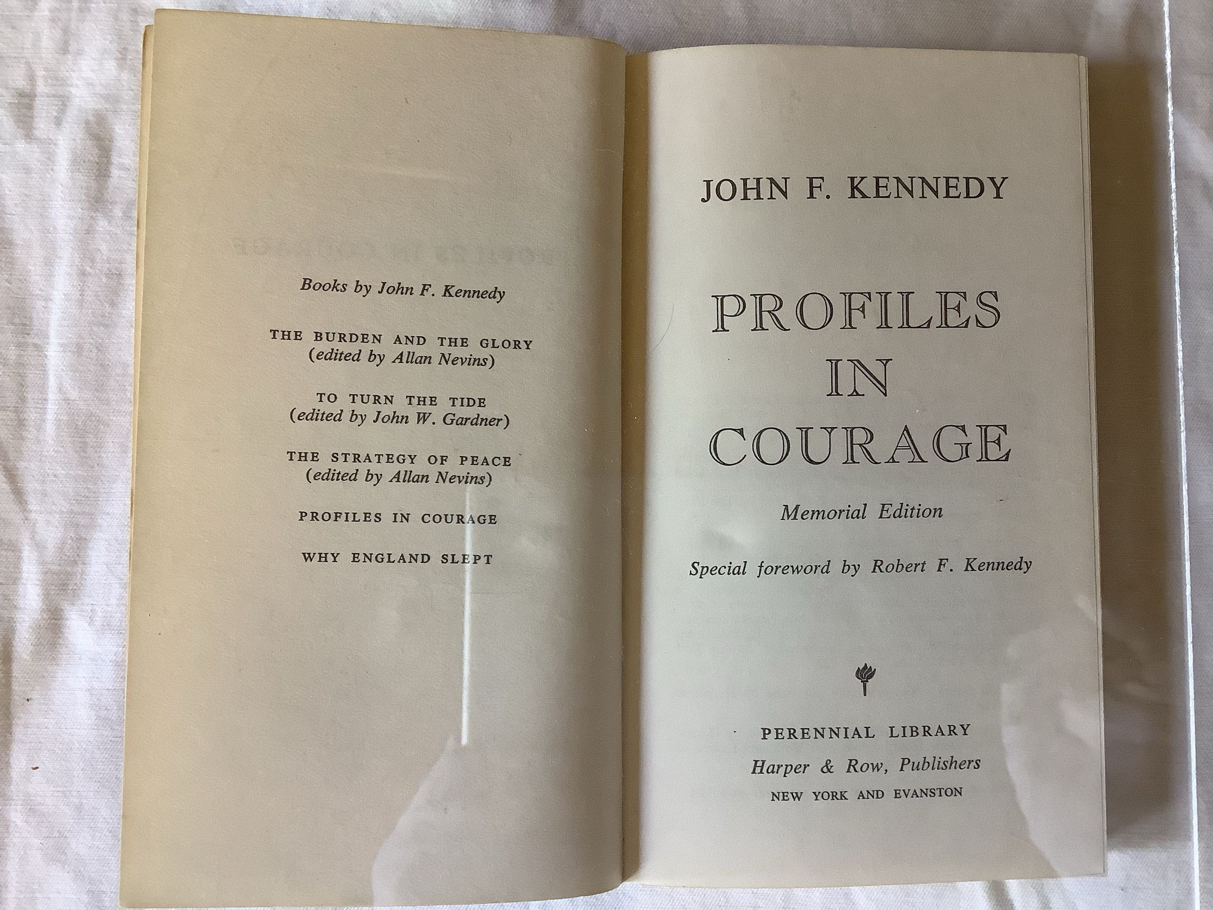 Profiles in Courage is a volume of short biographies describing acts of bravery and integrity by eight United States senators. The book profiles senators who defied the opinions of their party and constituents to do what they felt was right and suffered severe criticism and losses in popularity as a result. --Wikipedia. This is a memorial edition after JFK assassination.Create Date