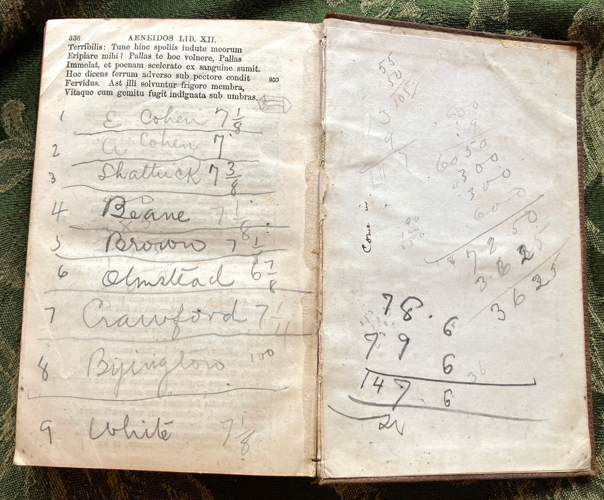 9 names with numbers next to them, calculationsCreate Date