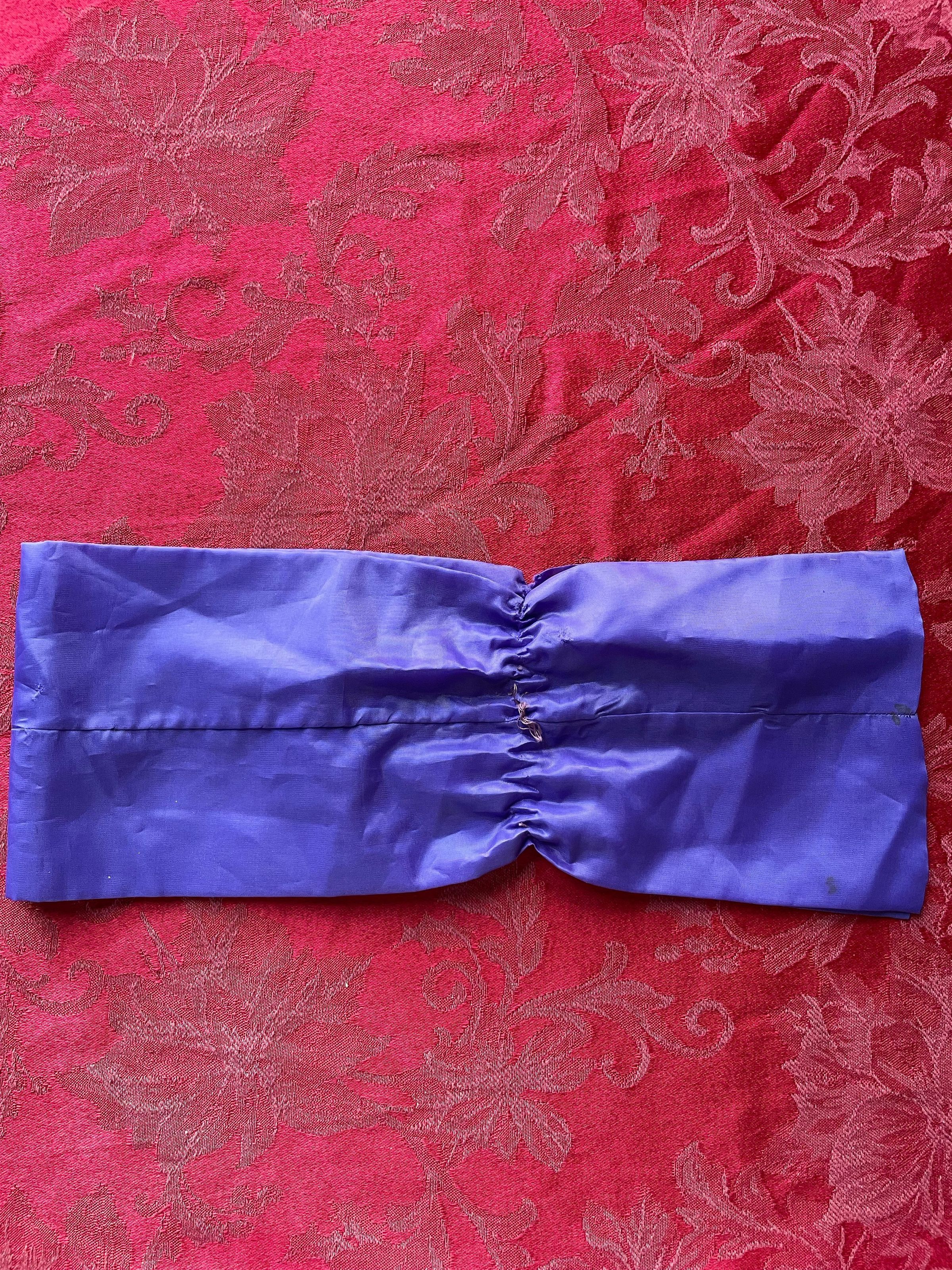 A purple stretch of fabric that might’ve been used as a small scarf or wrap. Little is known about this piece.