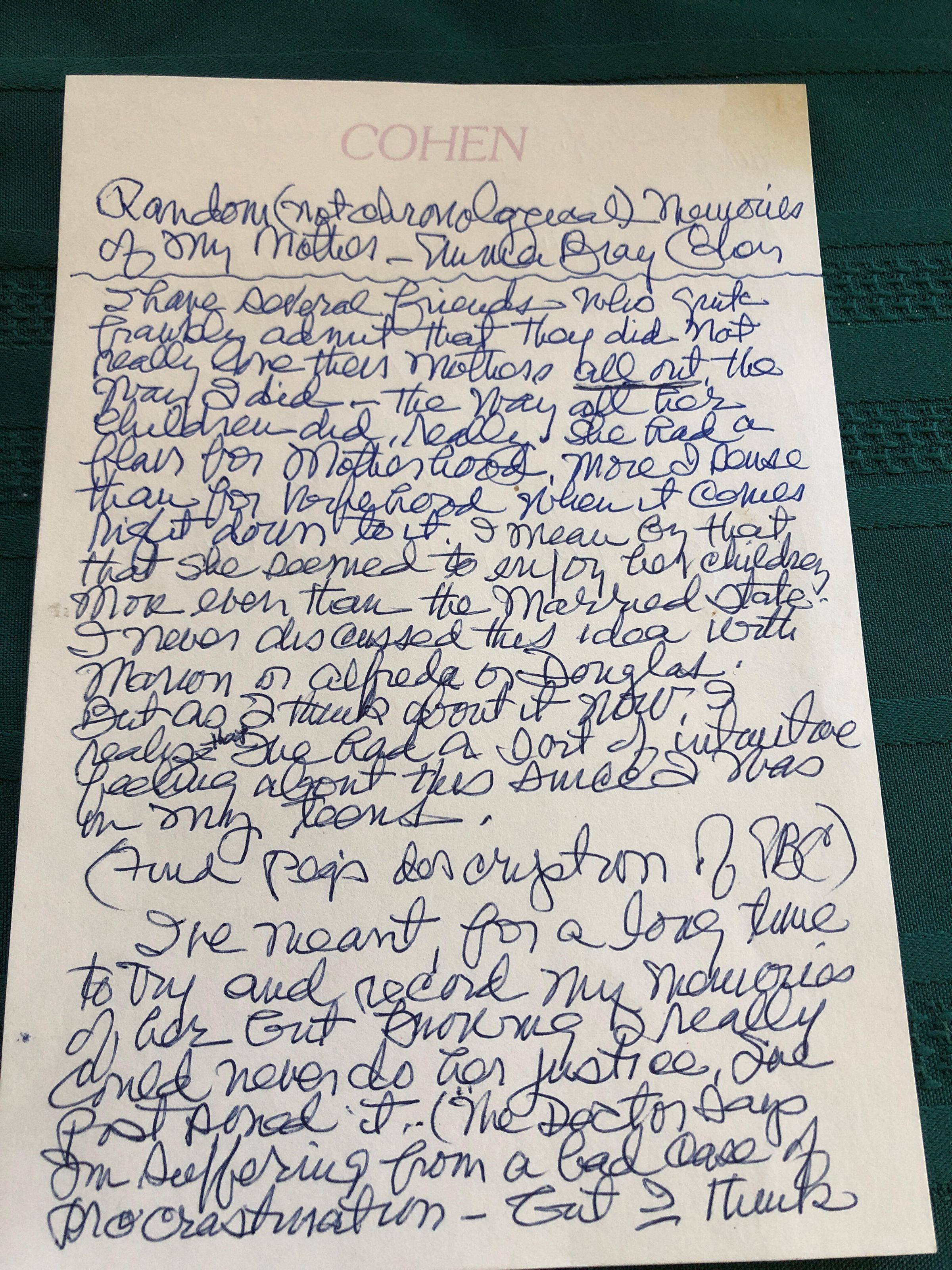 random Memories of my Mother Emma Bray Cohen