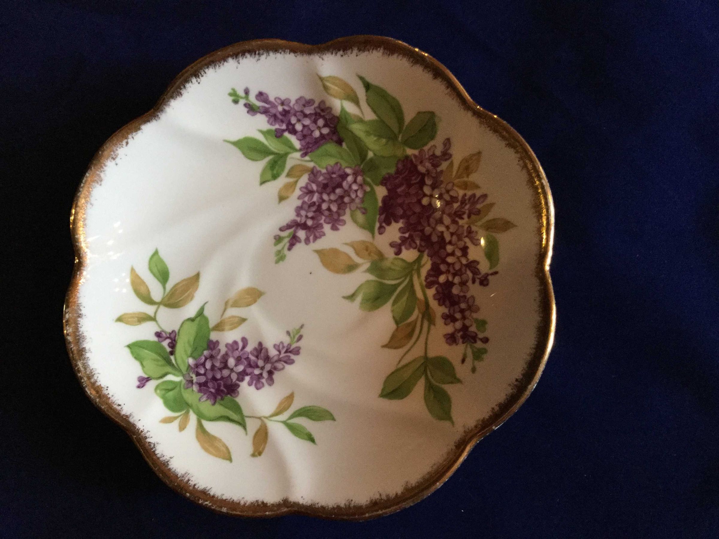 Saucer. Gold edge , lilacs