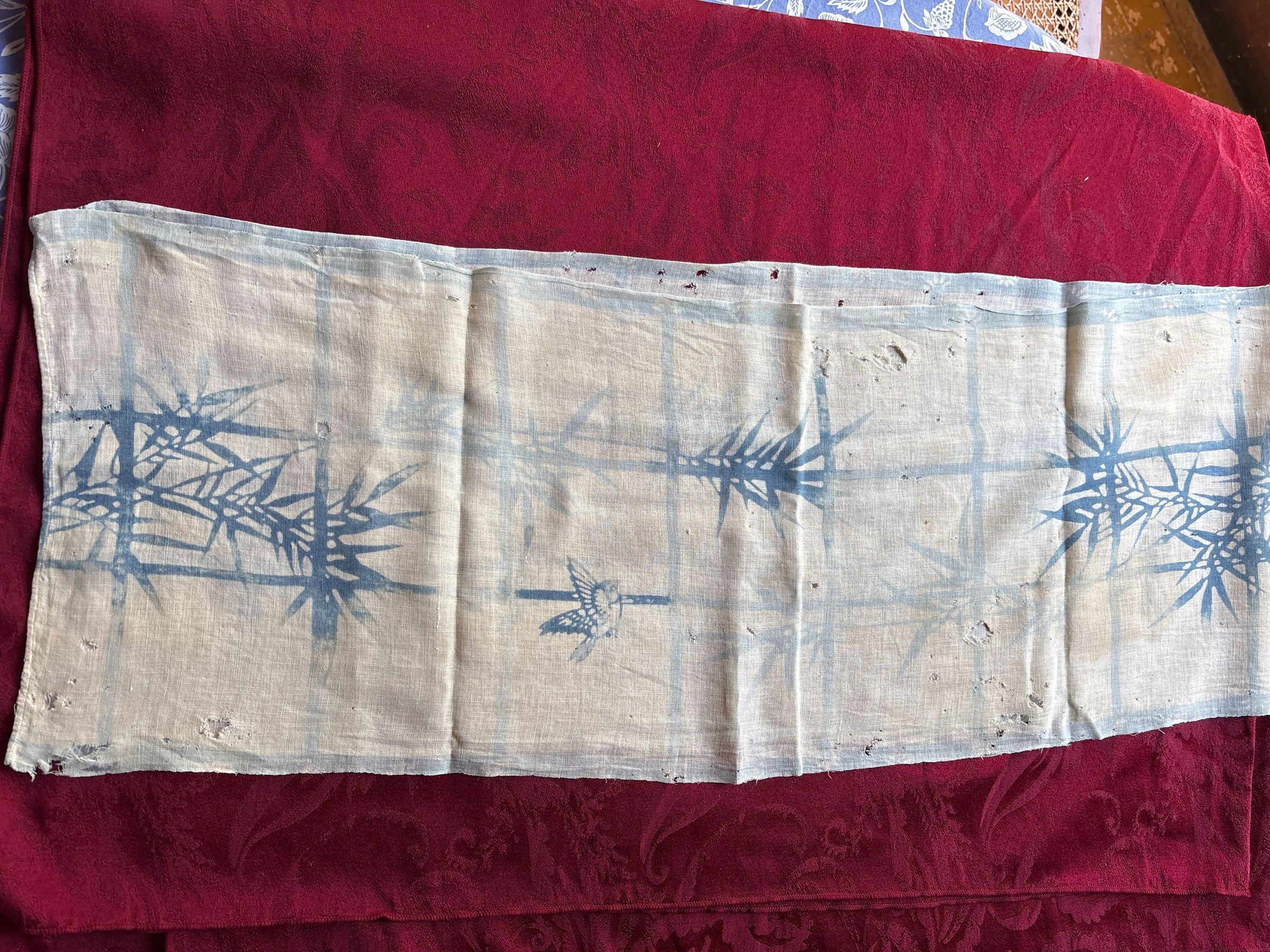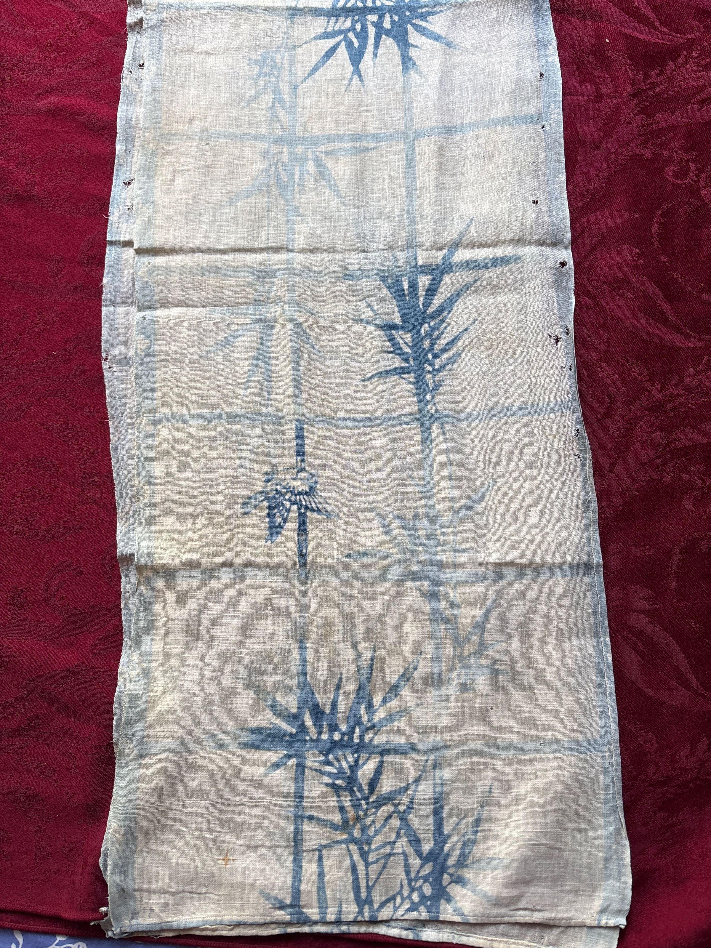 Scarf. Printed bamboo bird design. Blue