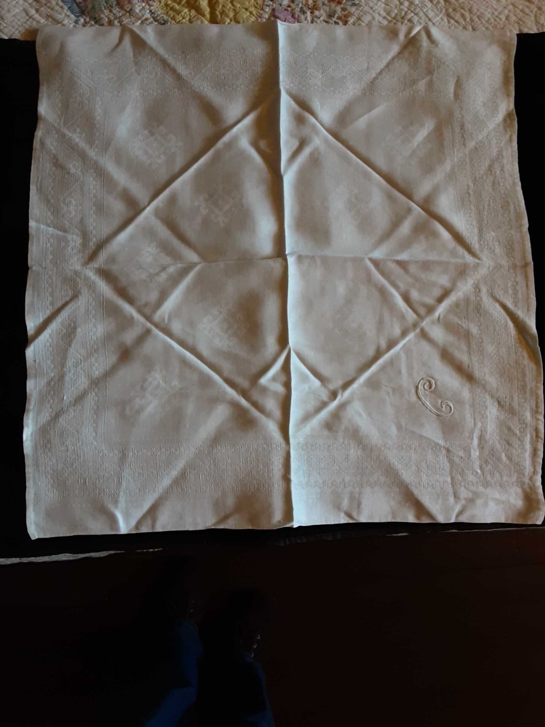 Set of embroidered dinner napkins with "C" monogram