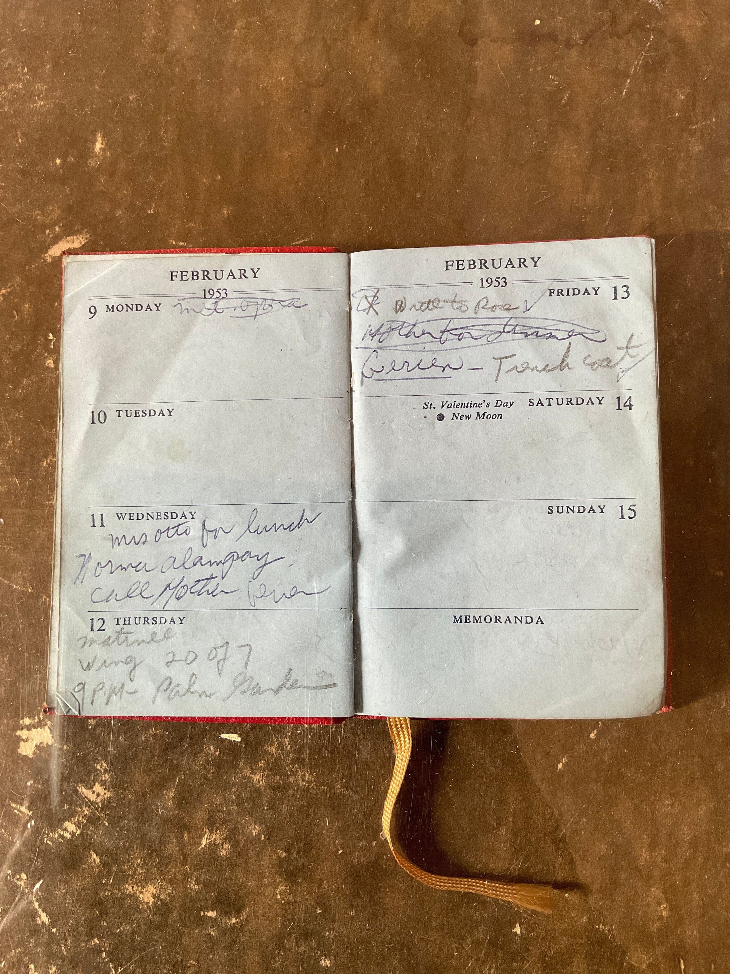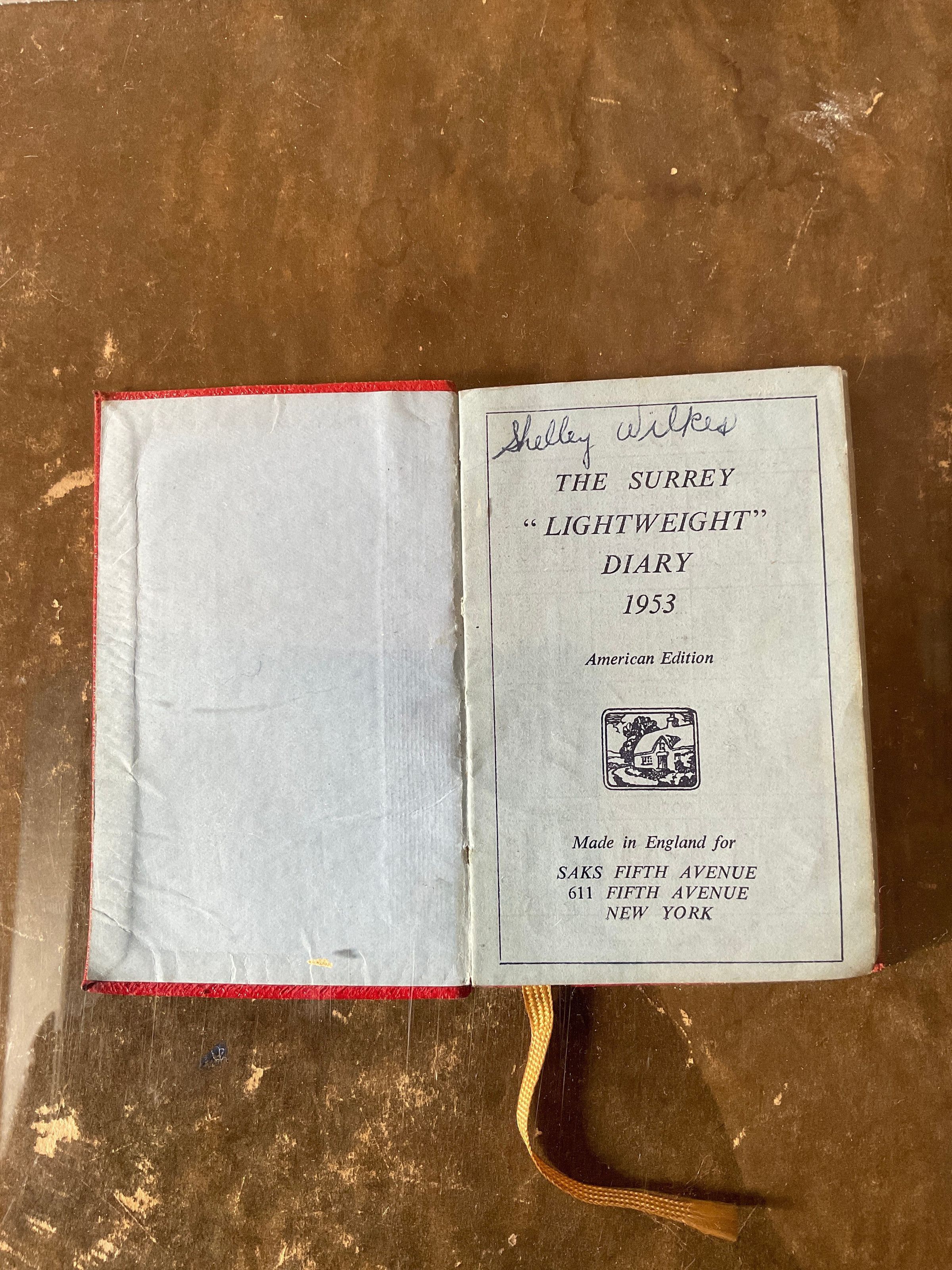 A 1953 Surrey “Lightweight” Diary belonging to Shelly Wilkes.Collection