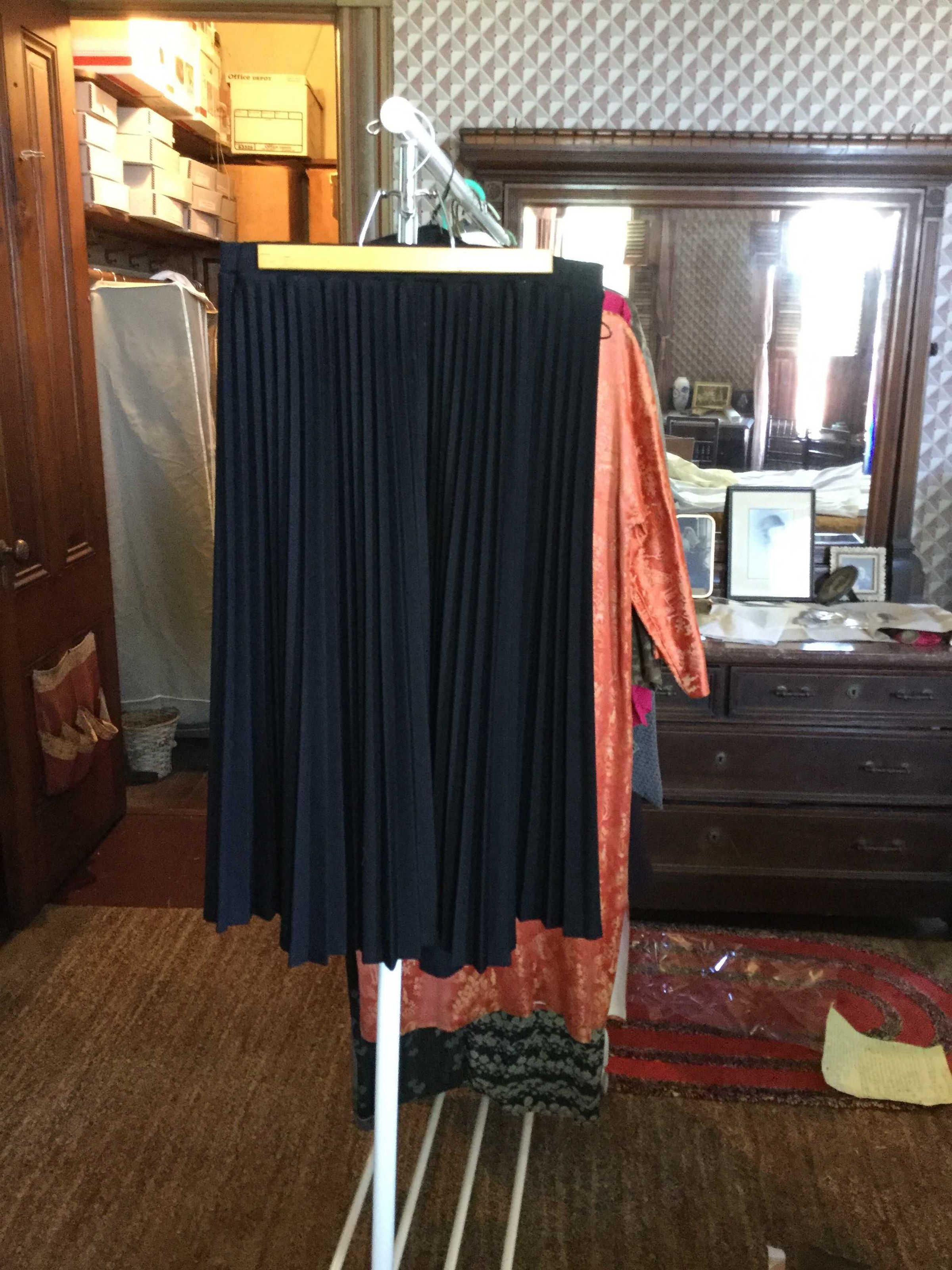 skirt, black pleated, poly?, Devon