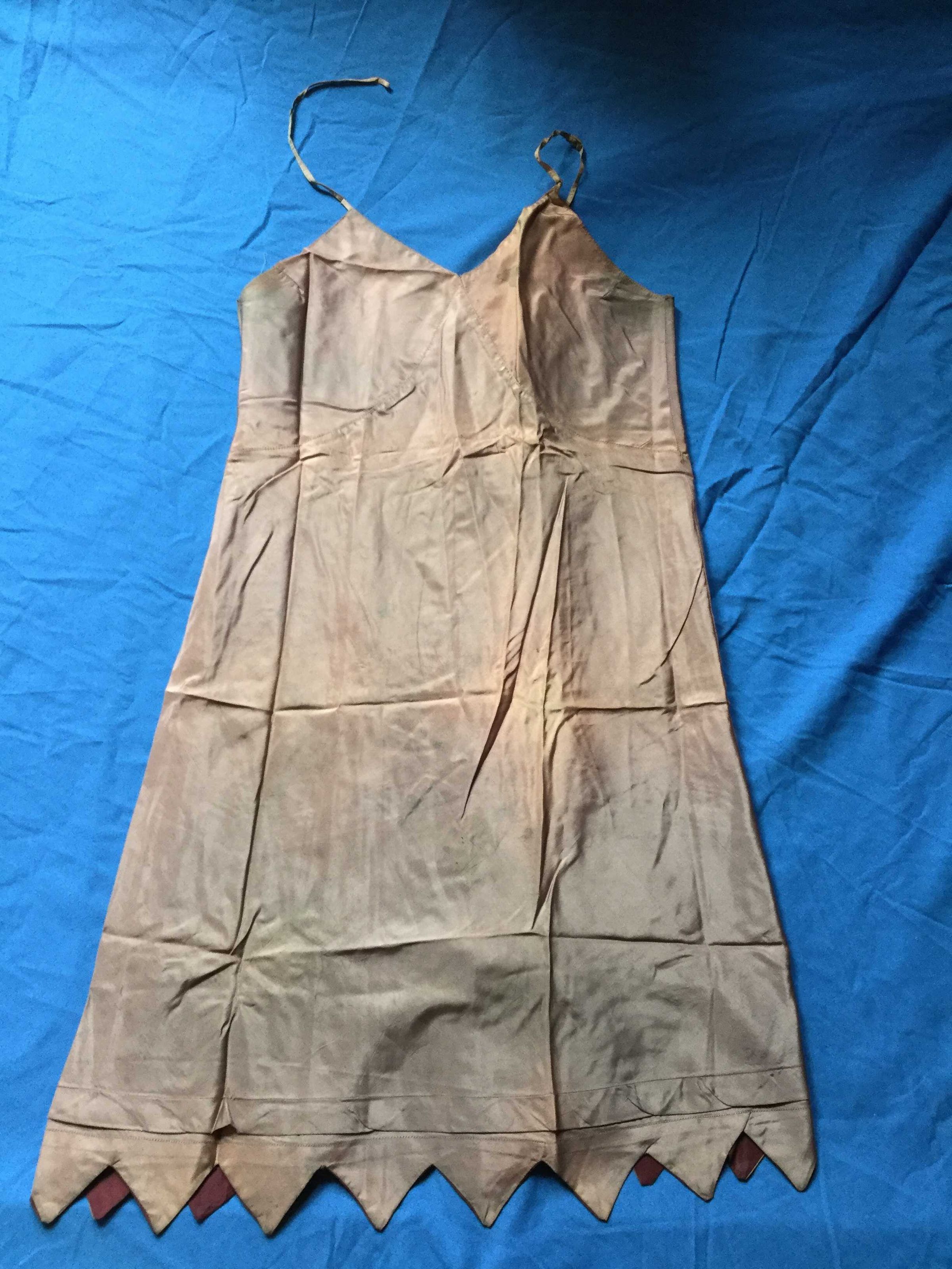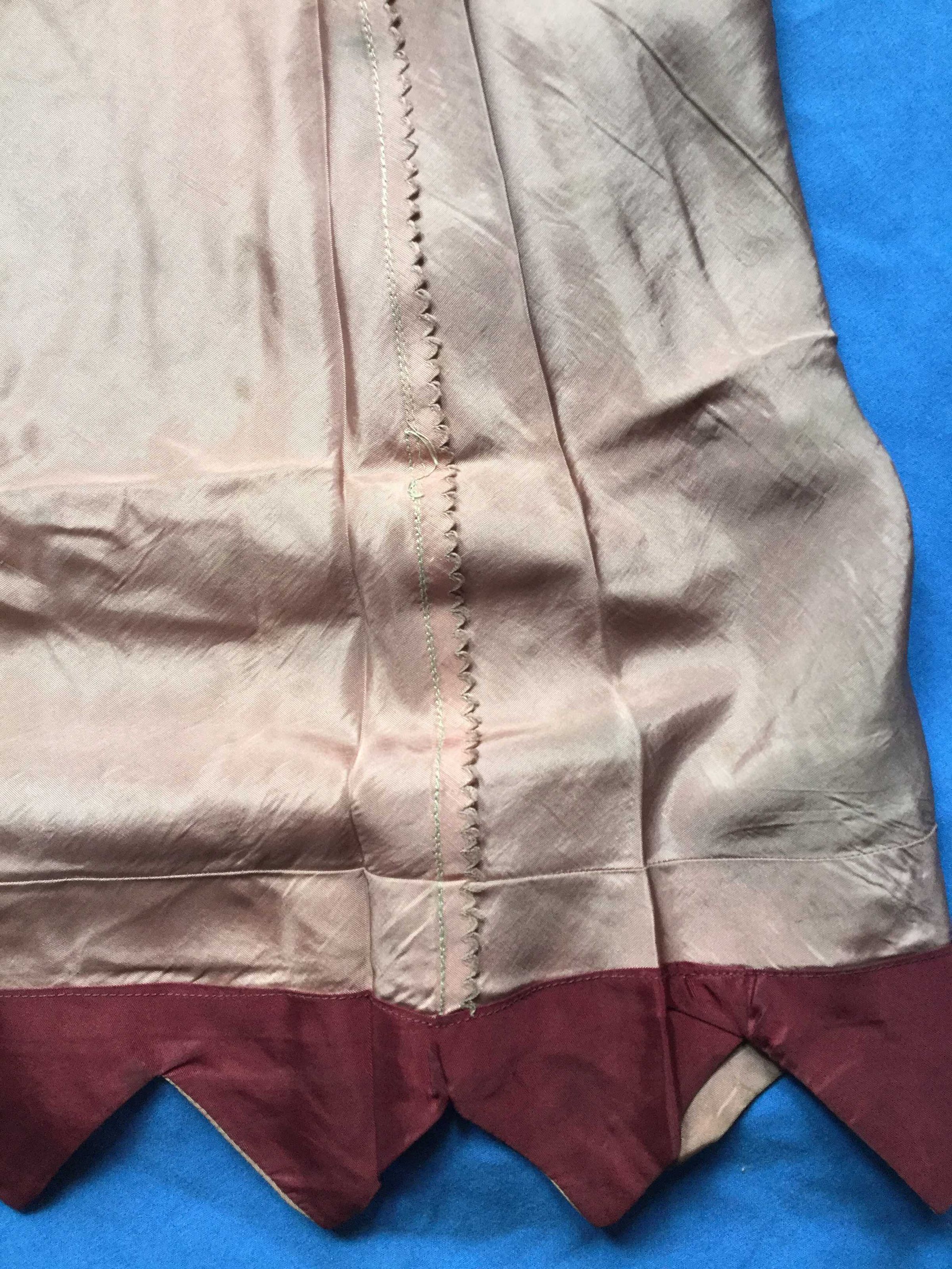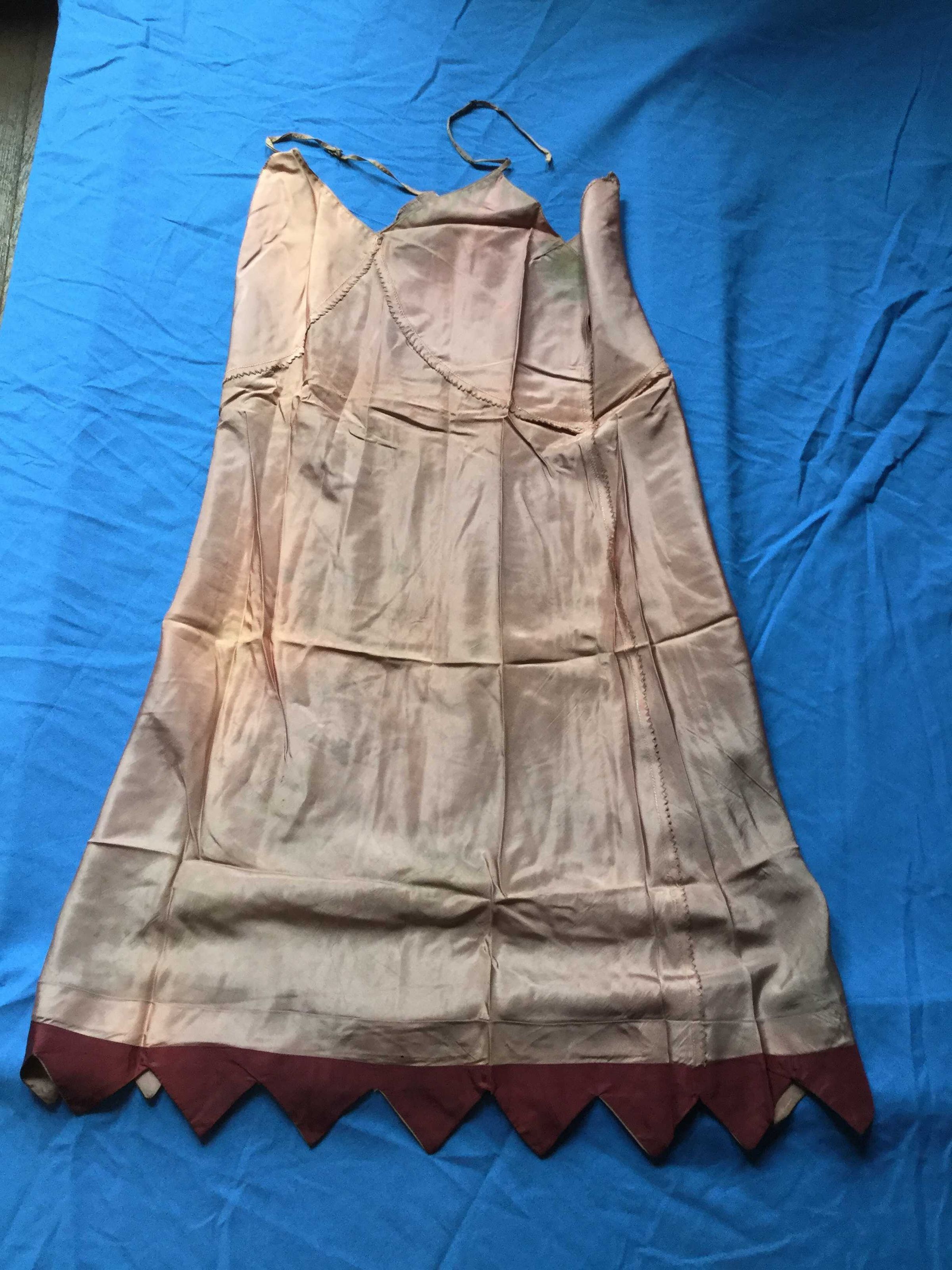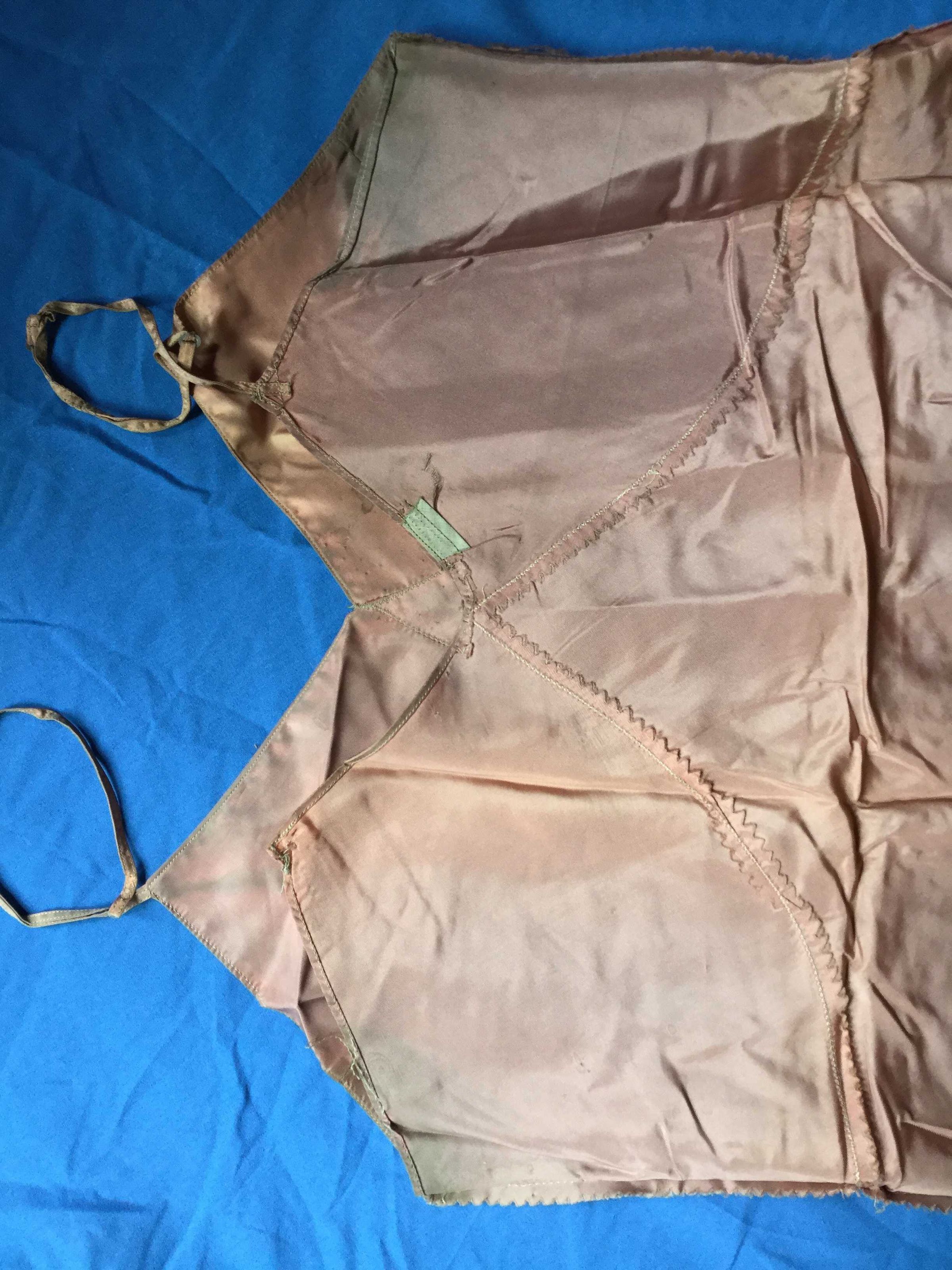 Mauve taffeta (silk?) bias cut slip. Adjustable straps.