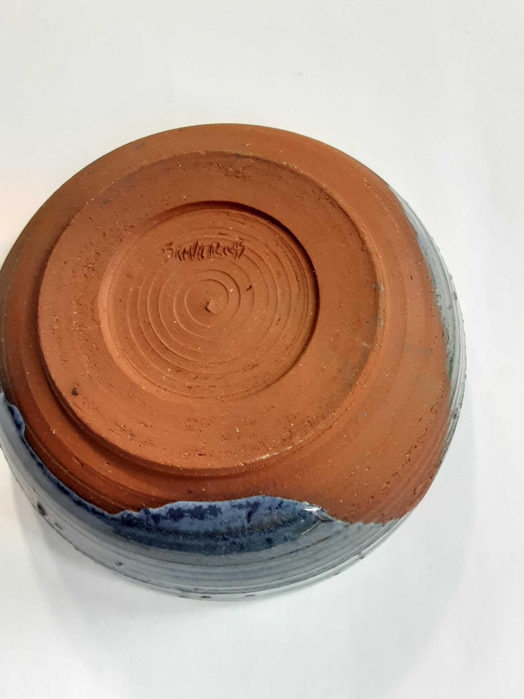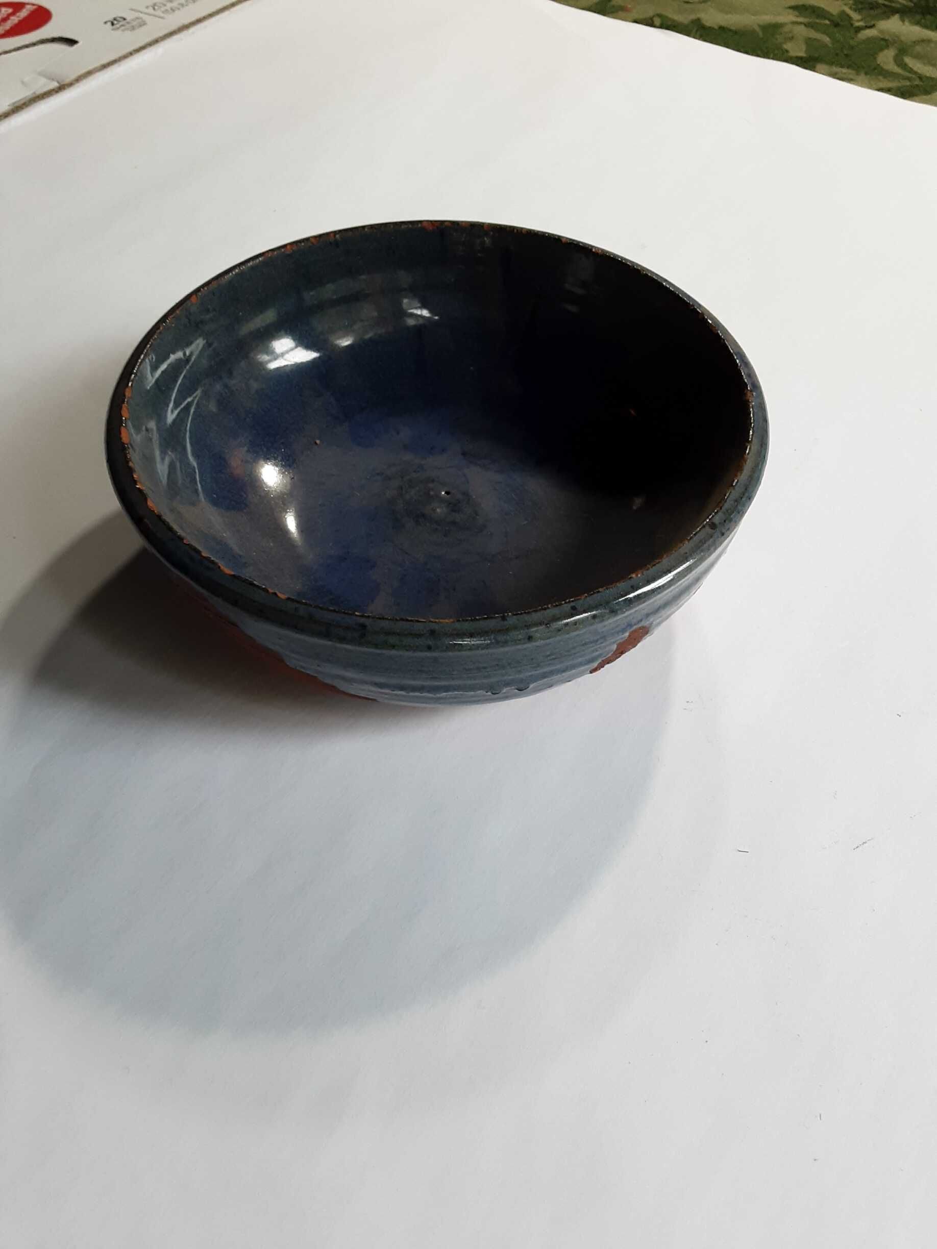 Terra cotta ceramic bowl glazed in dark blue