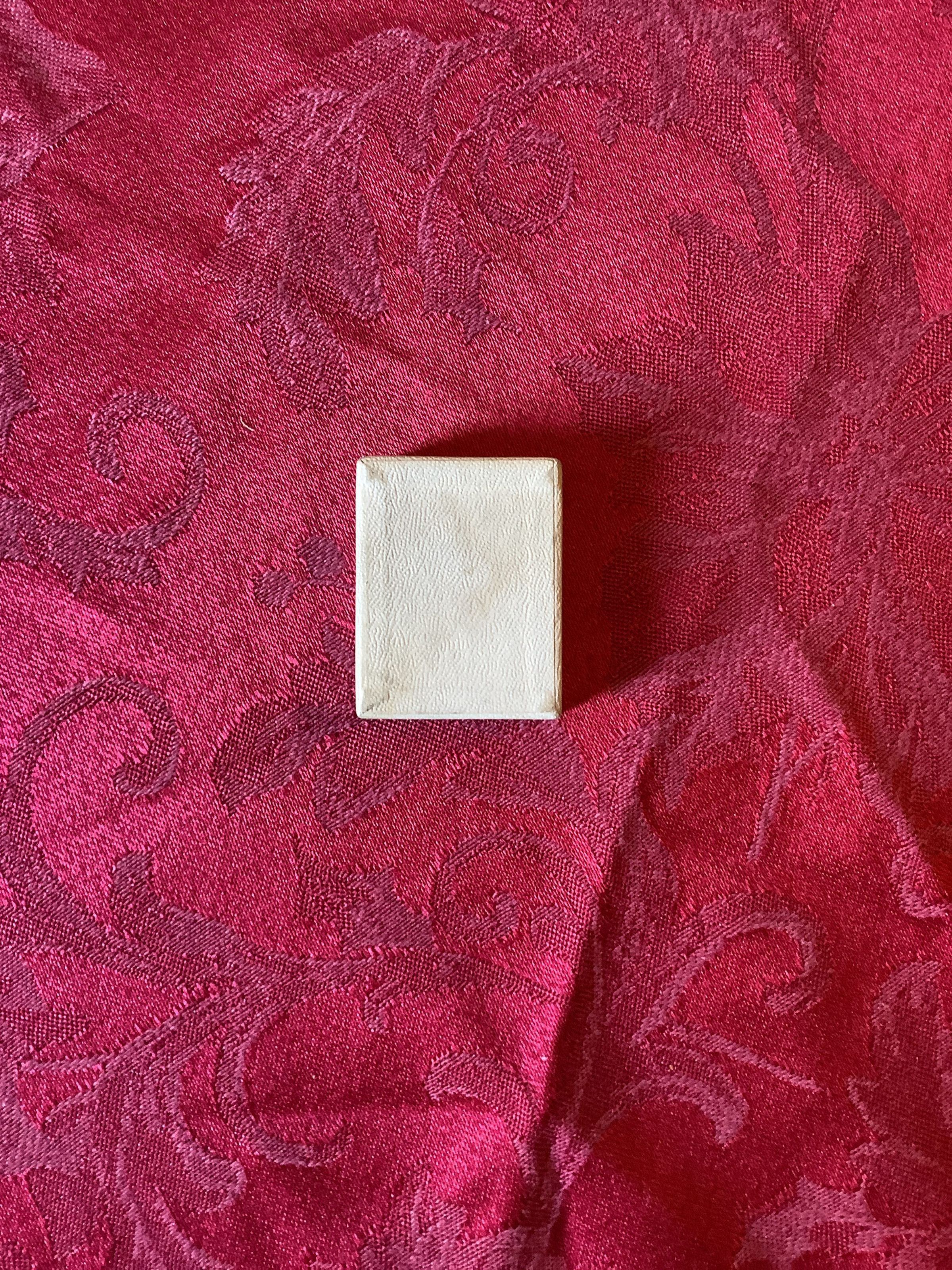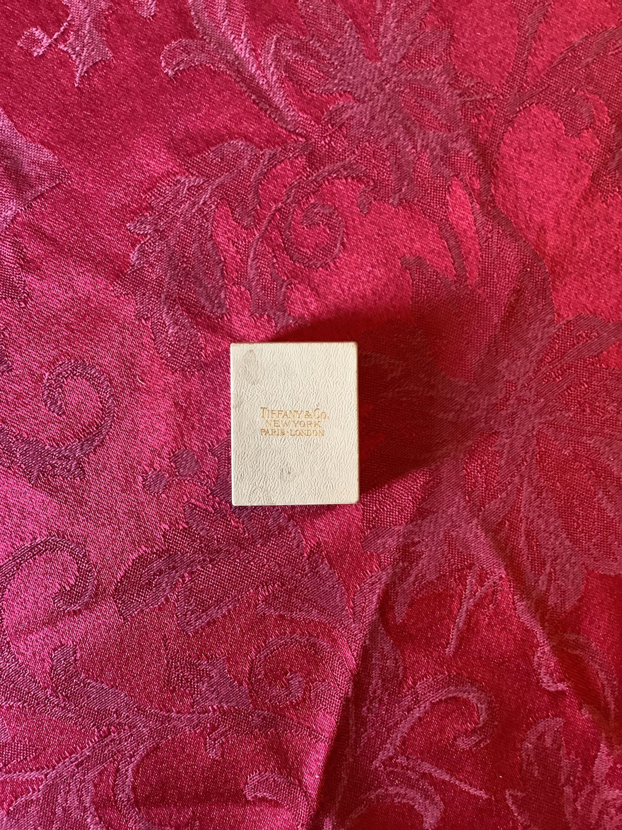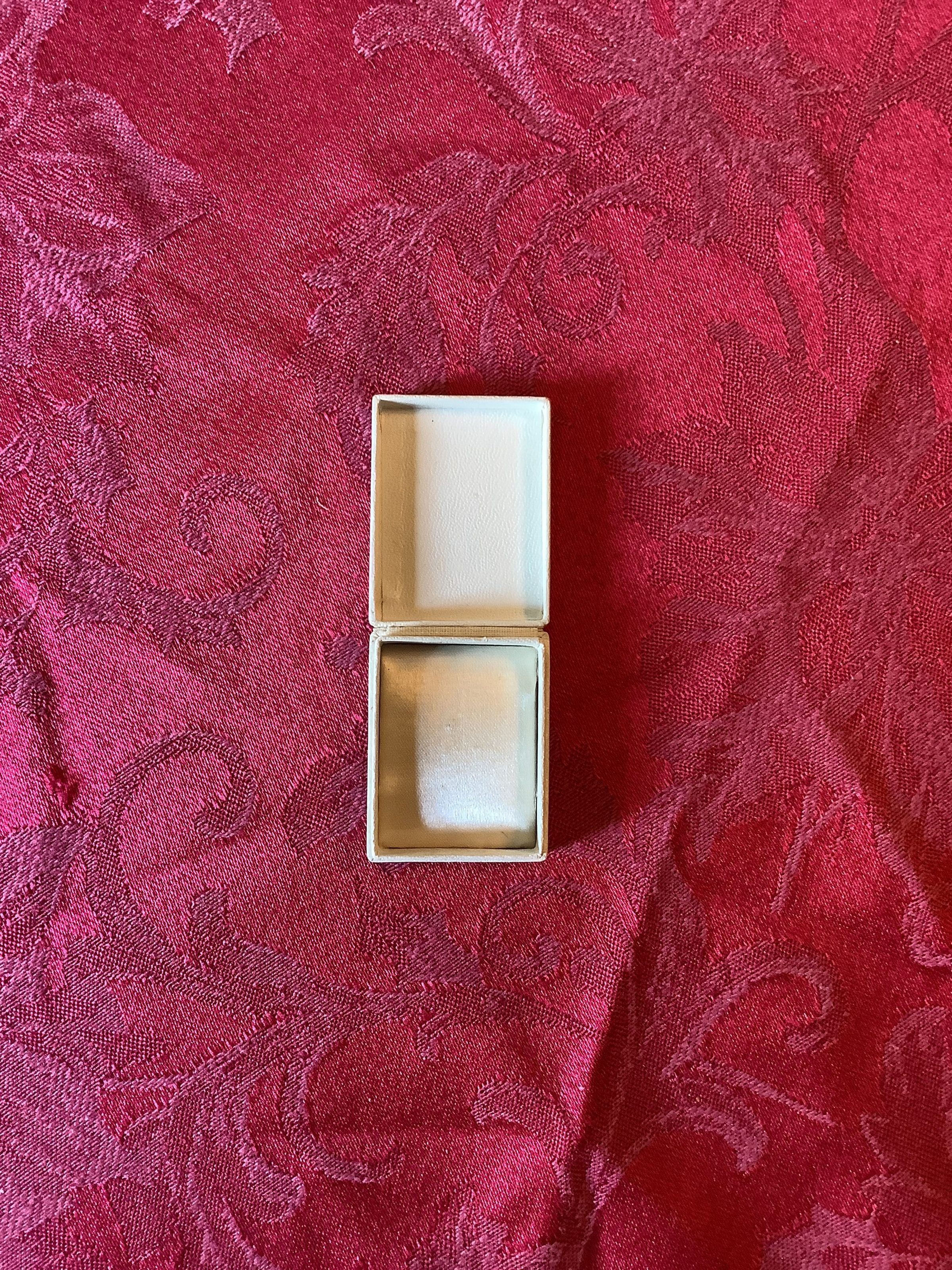 Small textured jewelry box from Tiffany & Co with a cushioned interior and spine. “3008 LW” written on the side.