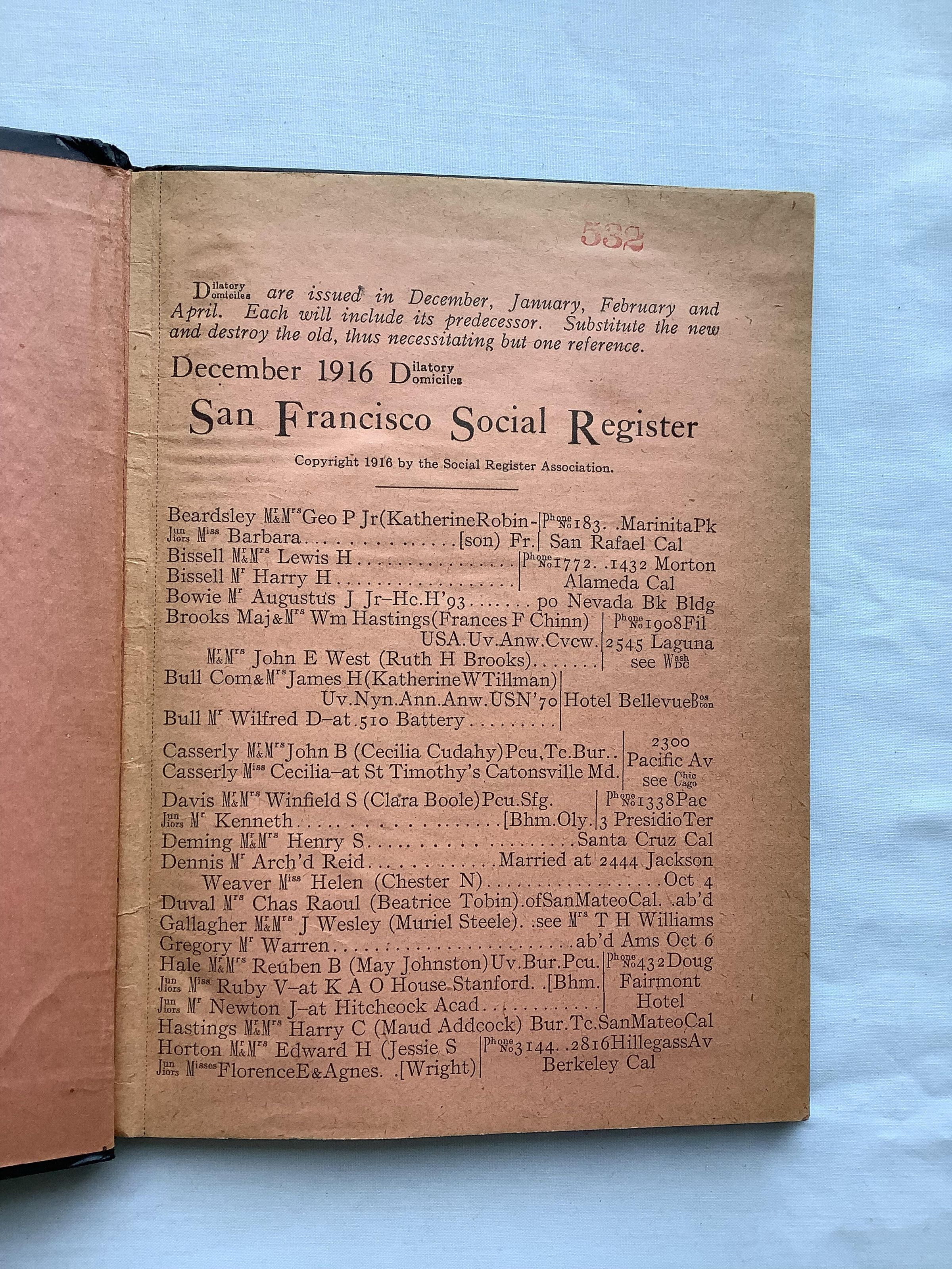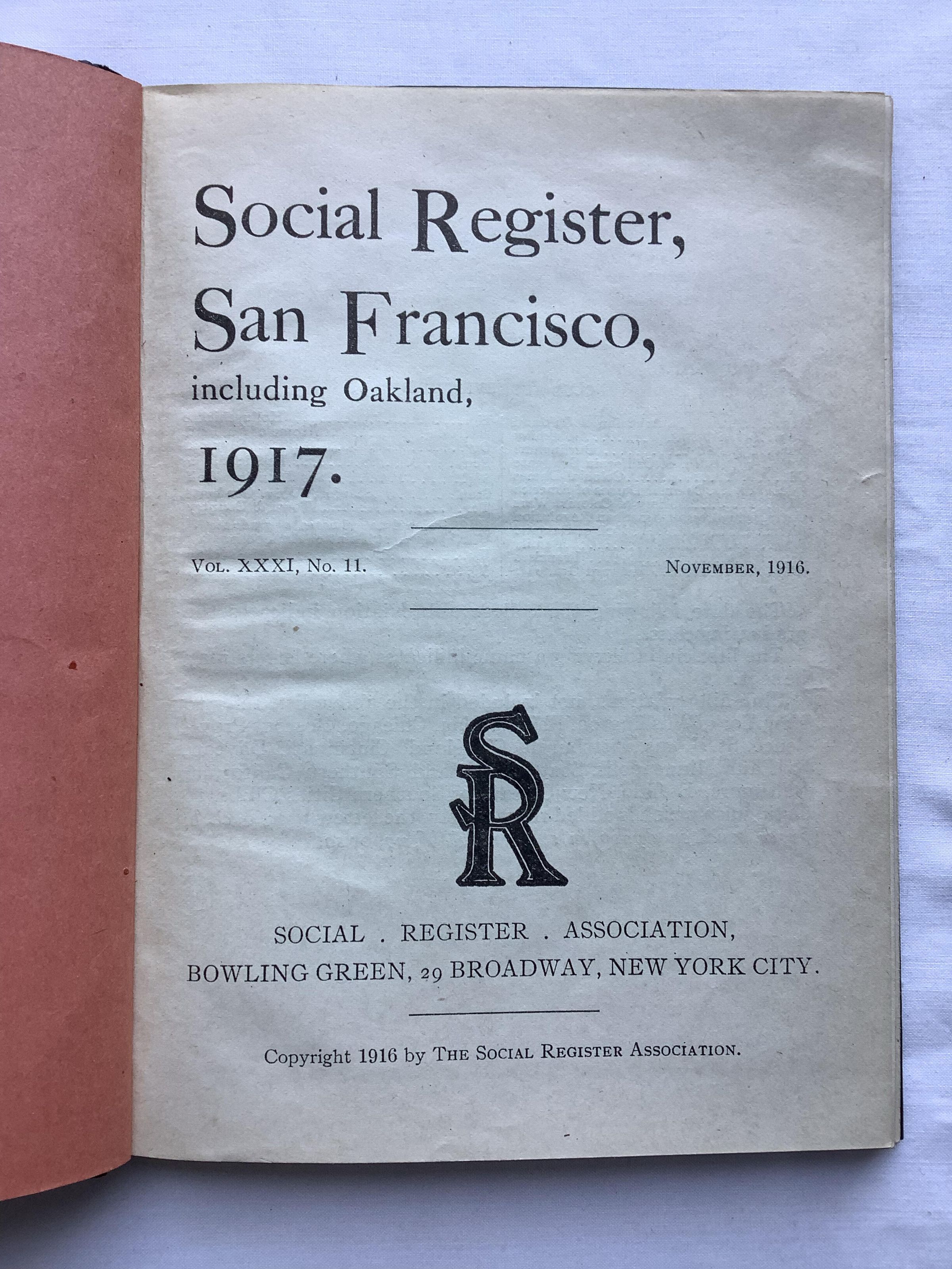 Social Register San Francisco 1917