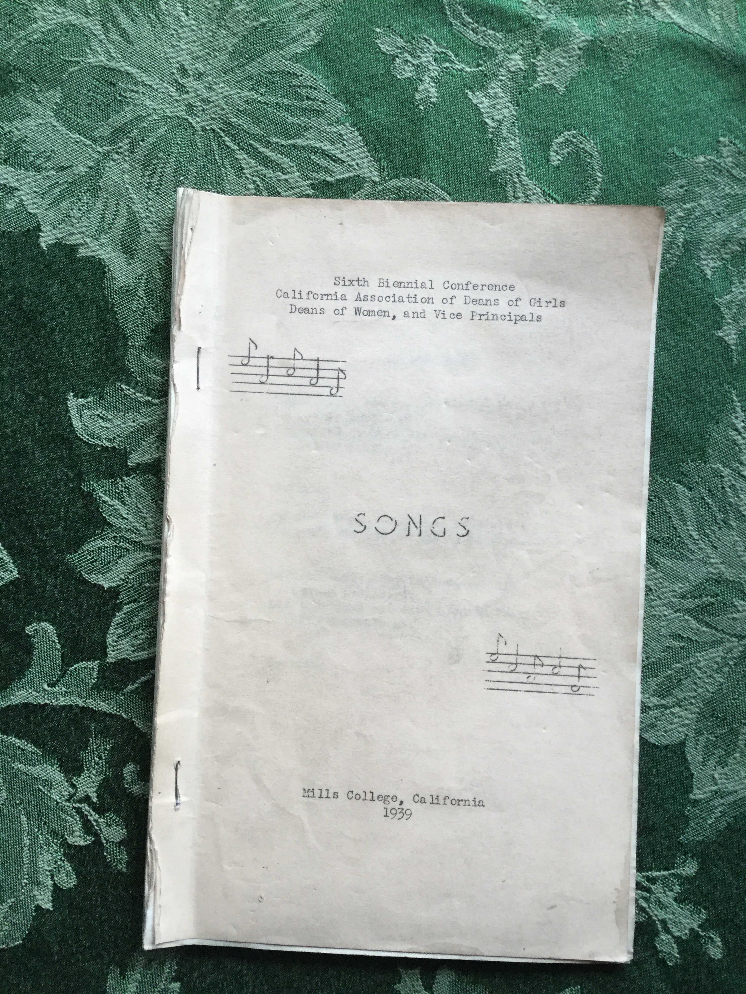 Pamphlet of songs from the Mills College Sixth Biennial (1939) Conference of California Association of Deans of Girls Deans of Women, and Vice Principals