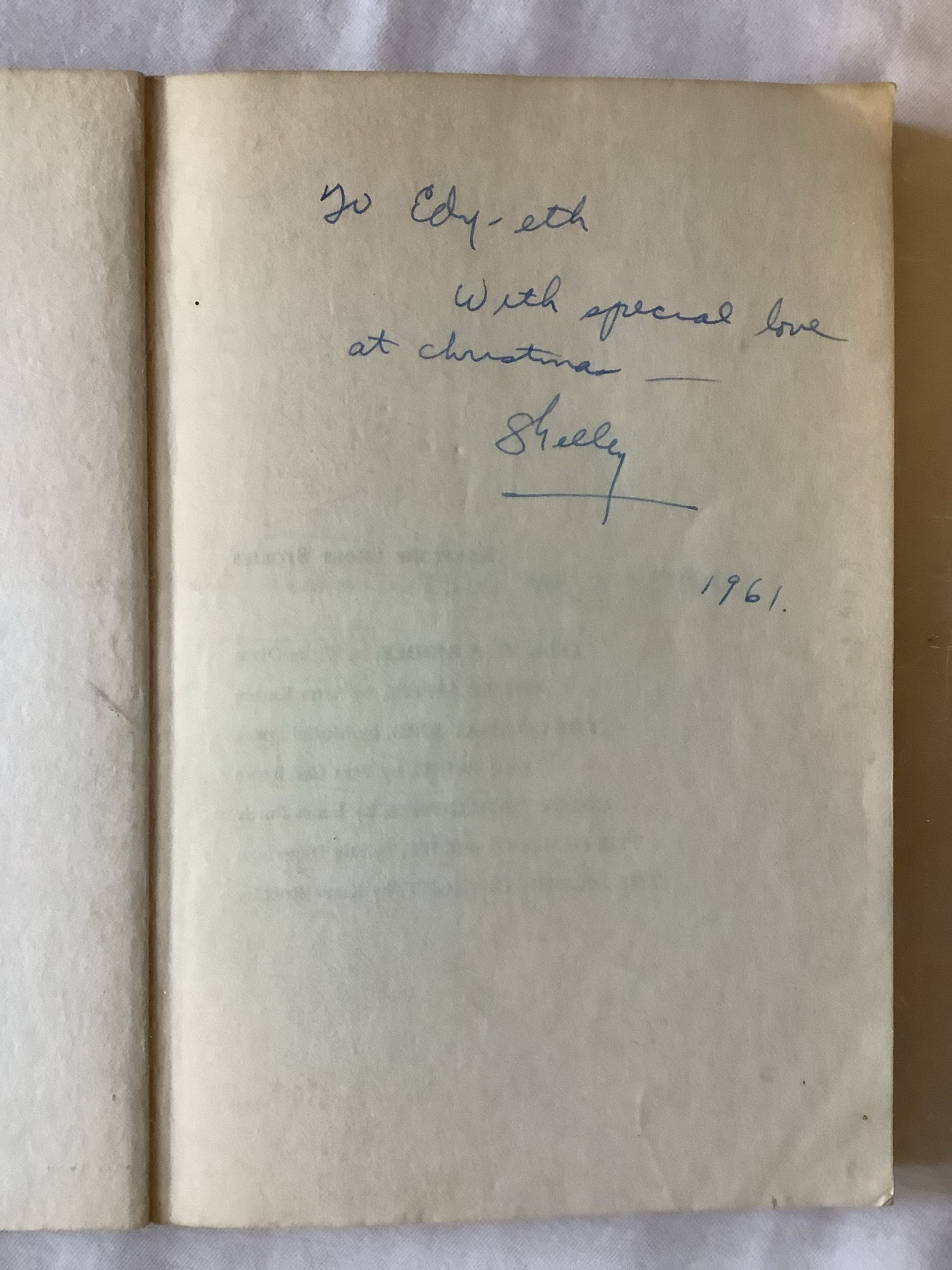 To Edy - eth. With special love at Christmas. Shelley. 1961Language