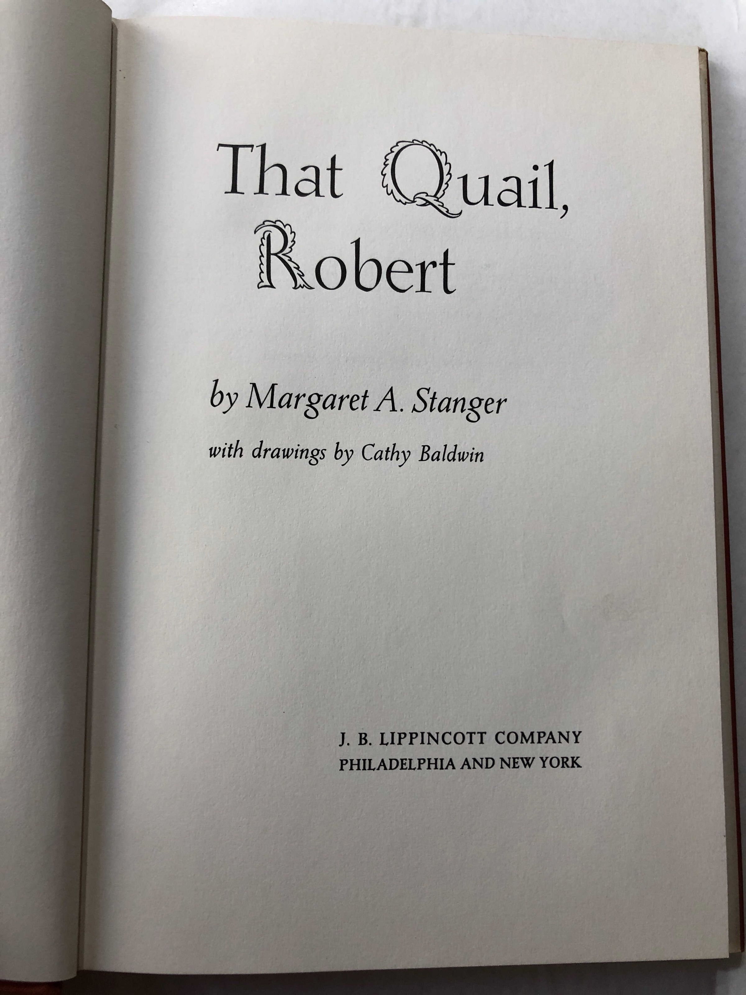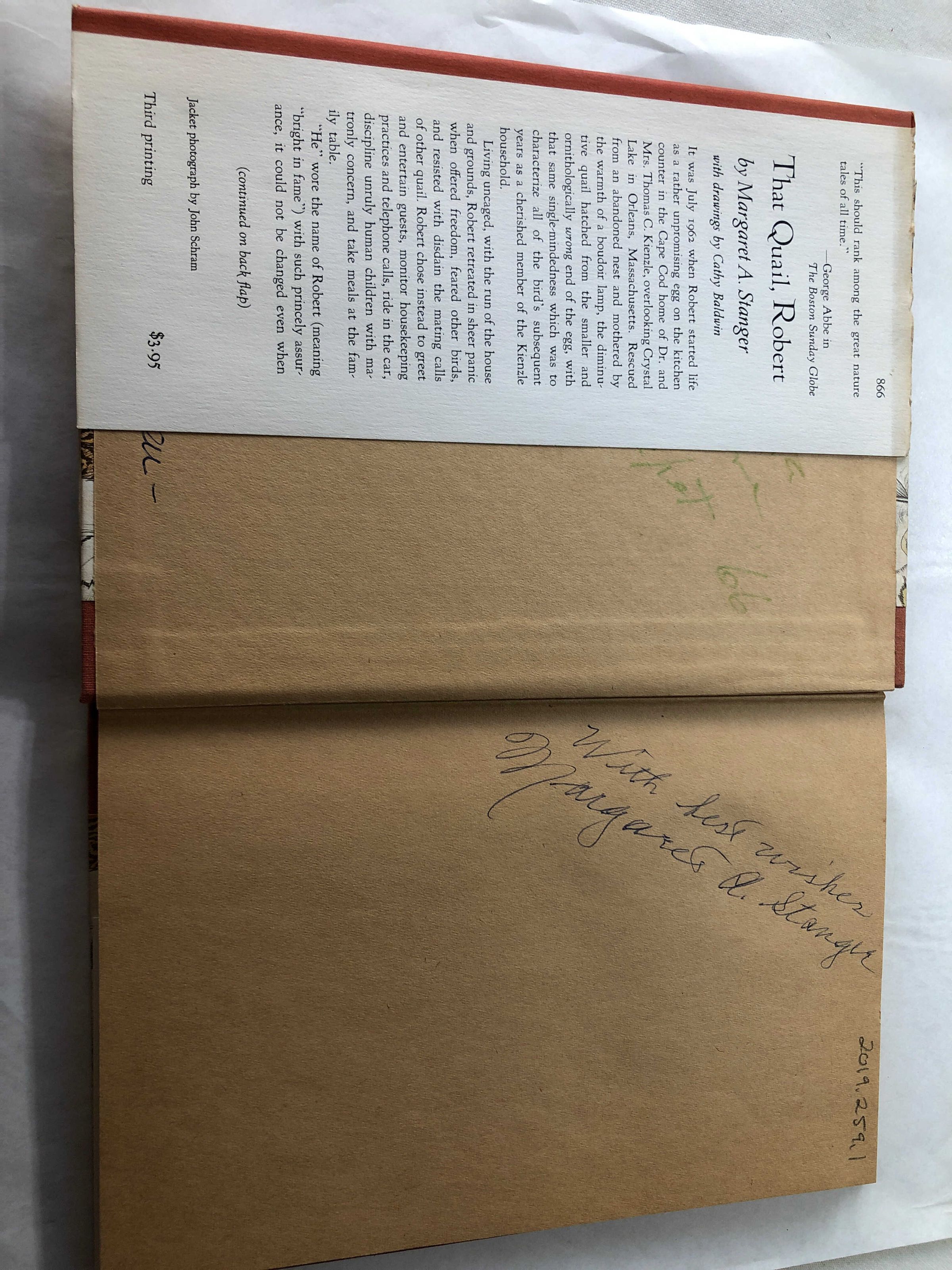Life story of a quail, raised from an abandoned egg, who decided that she preferred to live with the human family instead of with other quails. -WorldCatInscription/Signature/Marks