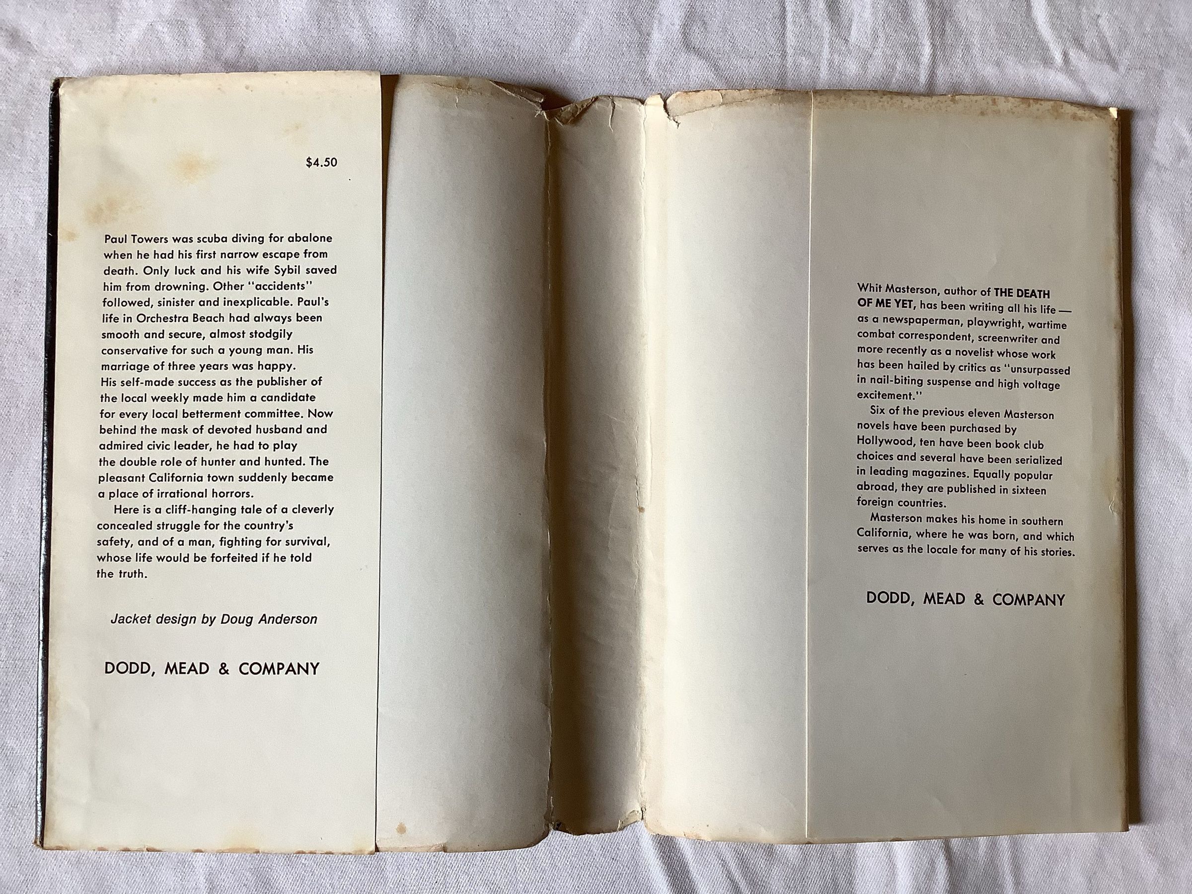 Paul Towers was scuba diving for abalone when he had his first narrow escape from death. Only luck and his wife Sybil saved him from drowning. Other 'accidents' followed, sinister and inexplicable. Paul's life in Orchestra Beach had always been smooth and secure, almost stodgily conservative for such a young man. His marriage of three years was happy. His self-made success as the publisher of the local weekly made him a candidate for every local betterment committee. Now behind the mask of devoted husband and admired civic leader, he had to play the double role of hunter and hunted. The pleasant California town suddenly became a place of irrational horrors."-- From 1st preliminary pageCreate Date