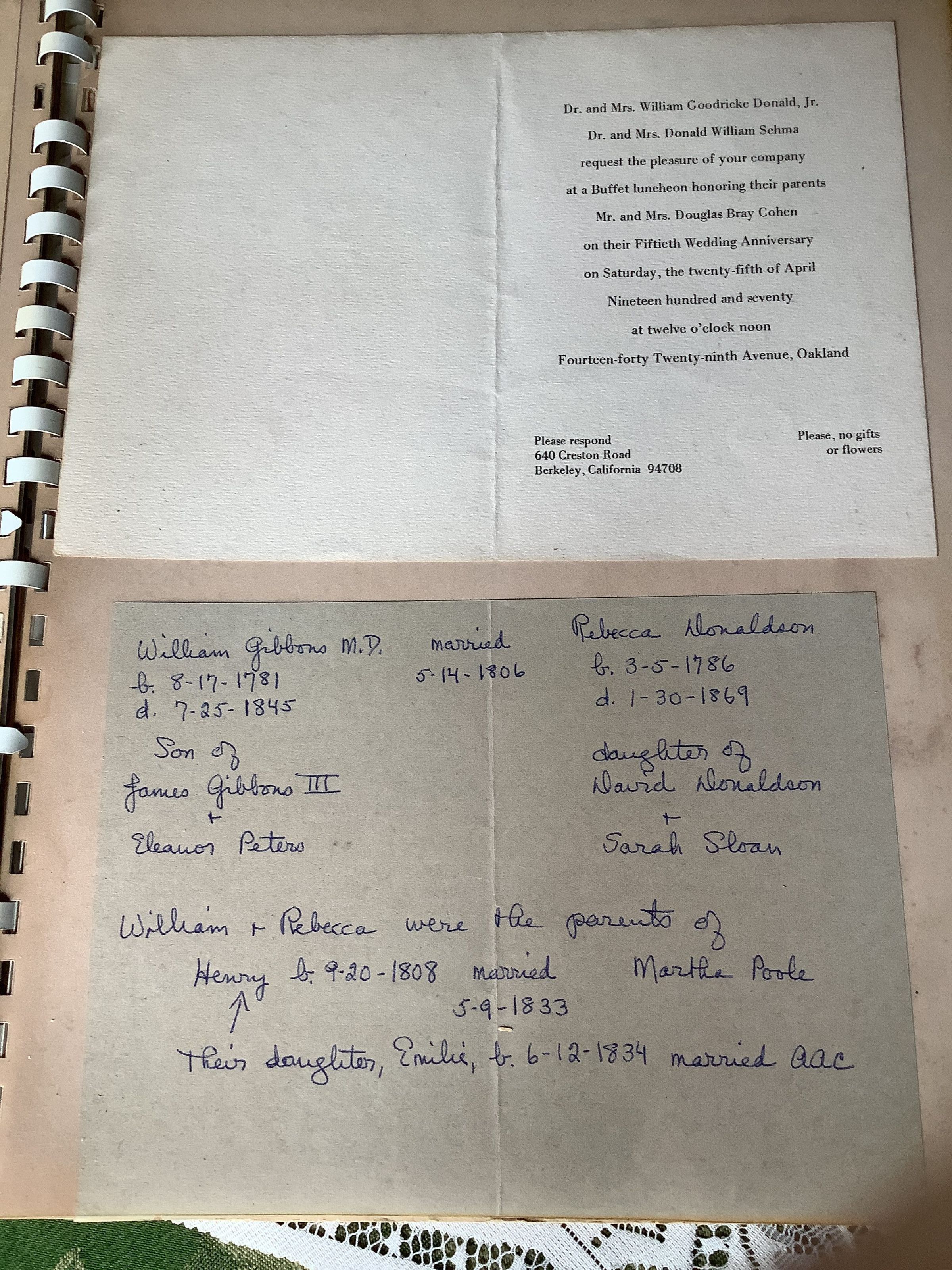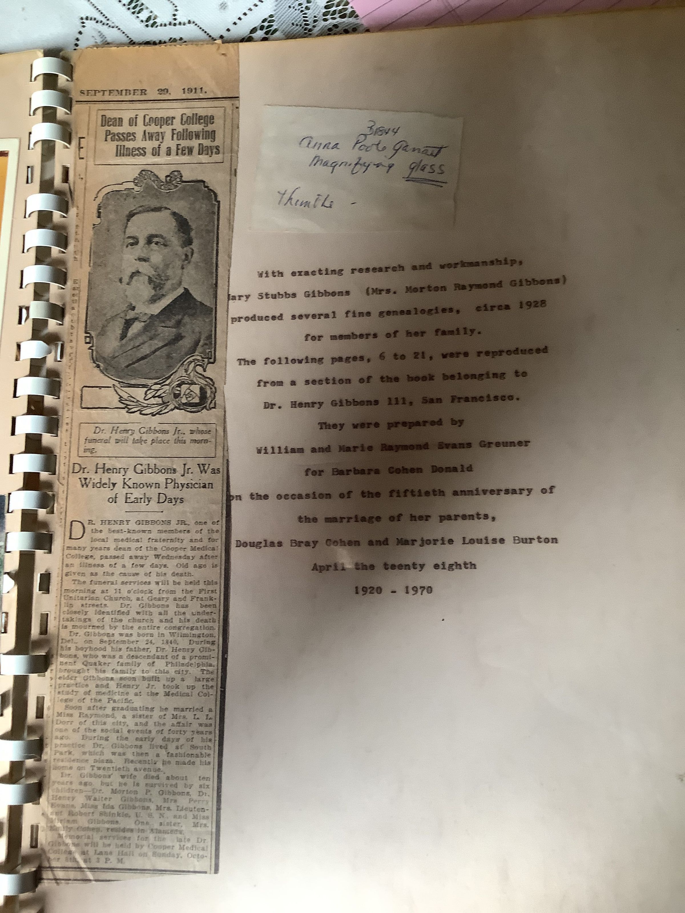 Collected by Mary Stubbs Gibbons circa 1928 for members of her family. These pages, 6-21 were reproduced by Williams and Marie Raymond Greuner and given to Barbara Cohen Donald on the occasion of the fiftieth anniversary of the marriage of her parents,Douglas Bray Cohen and Marjorie Louise Burton April twenty eighth 1920-1970Create Date