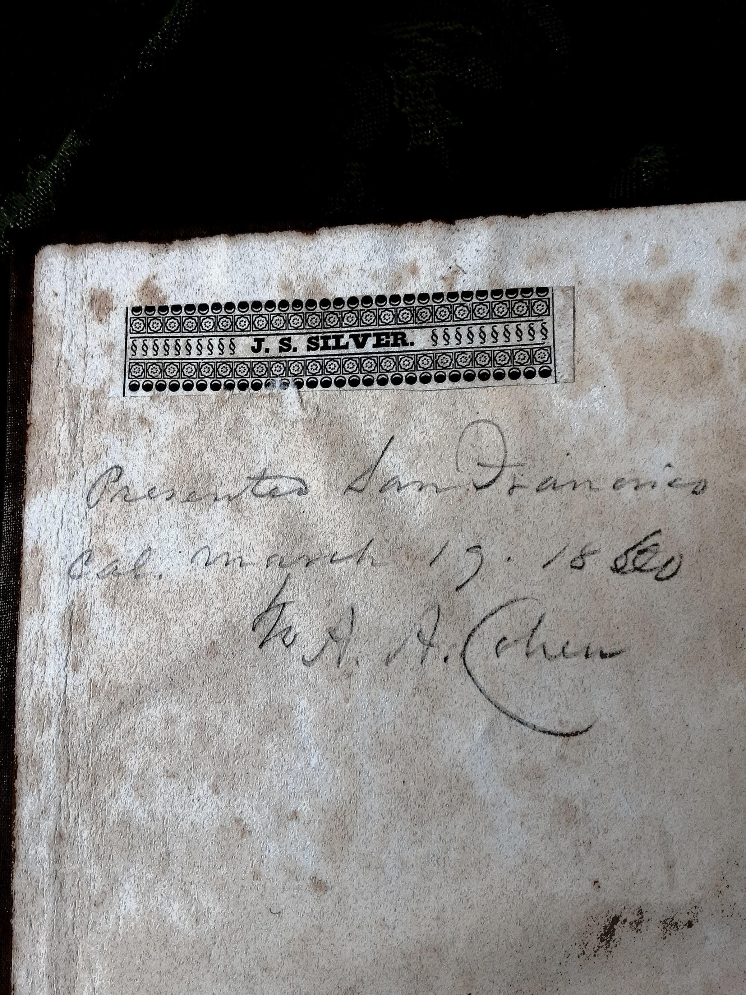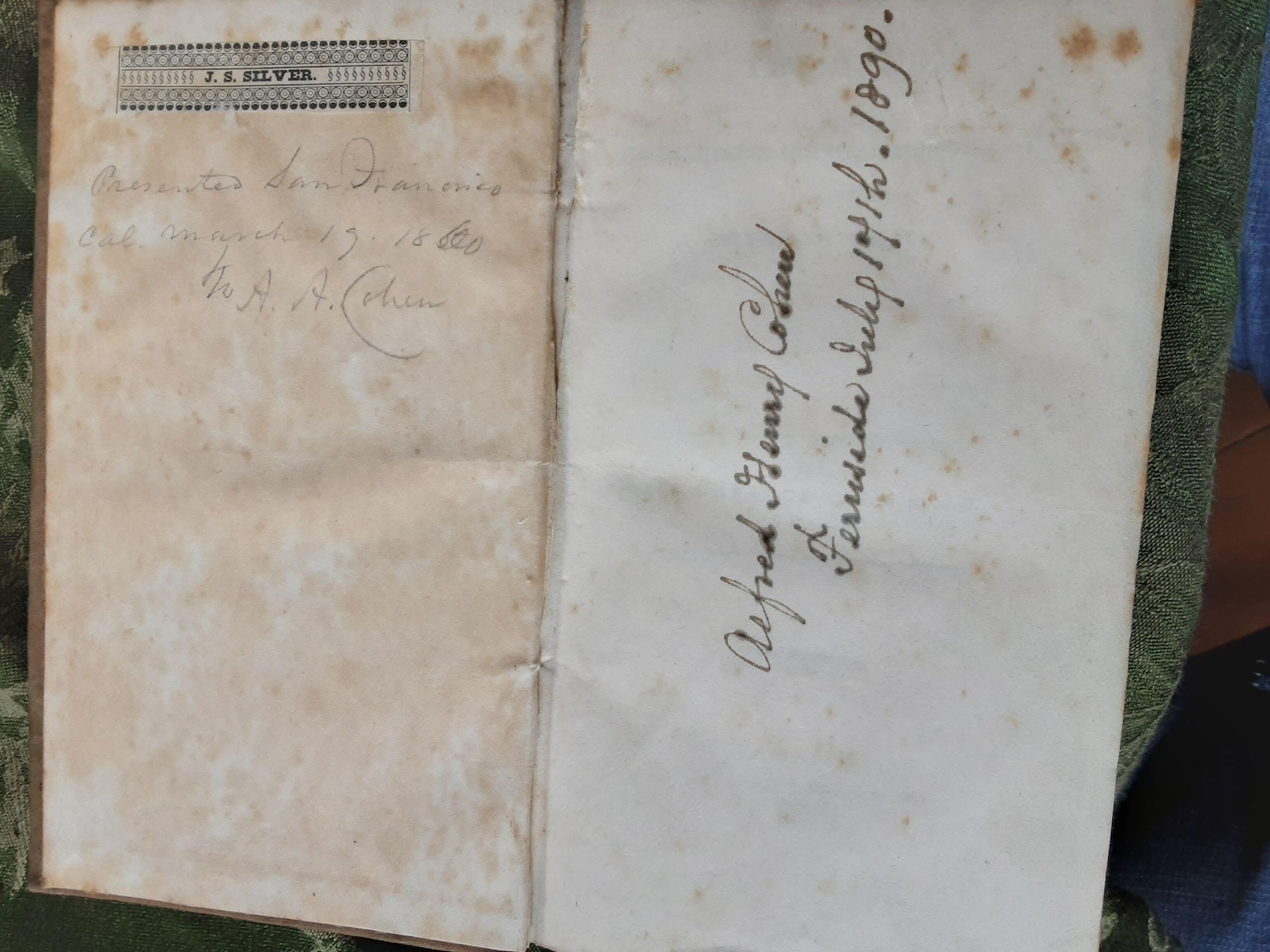 Presented San Francisco Cal.March 19 1860 to A.A. Cohen