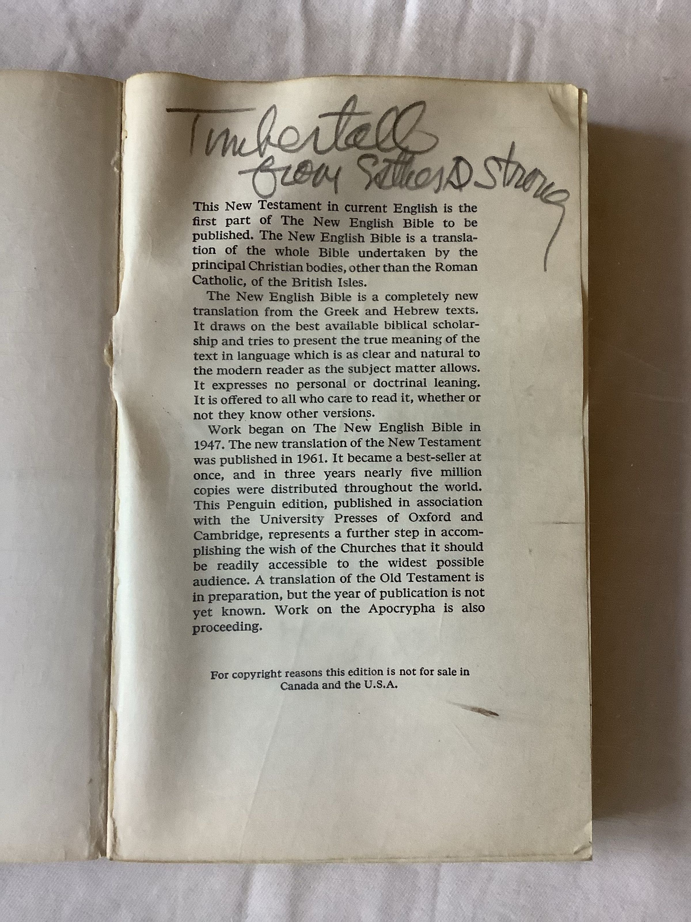 Esther D. Strong. London, May 1967. R. E. H.Language