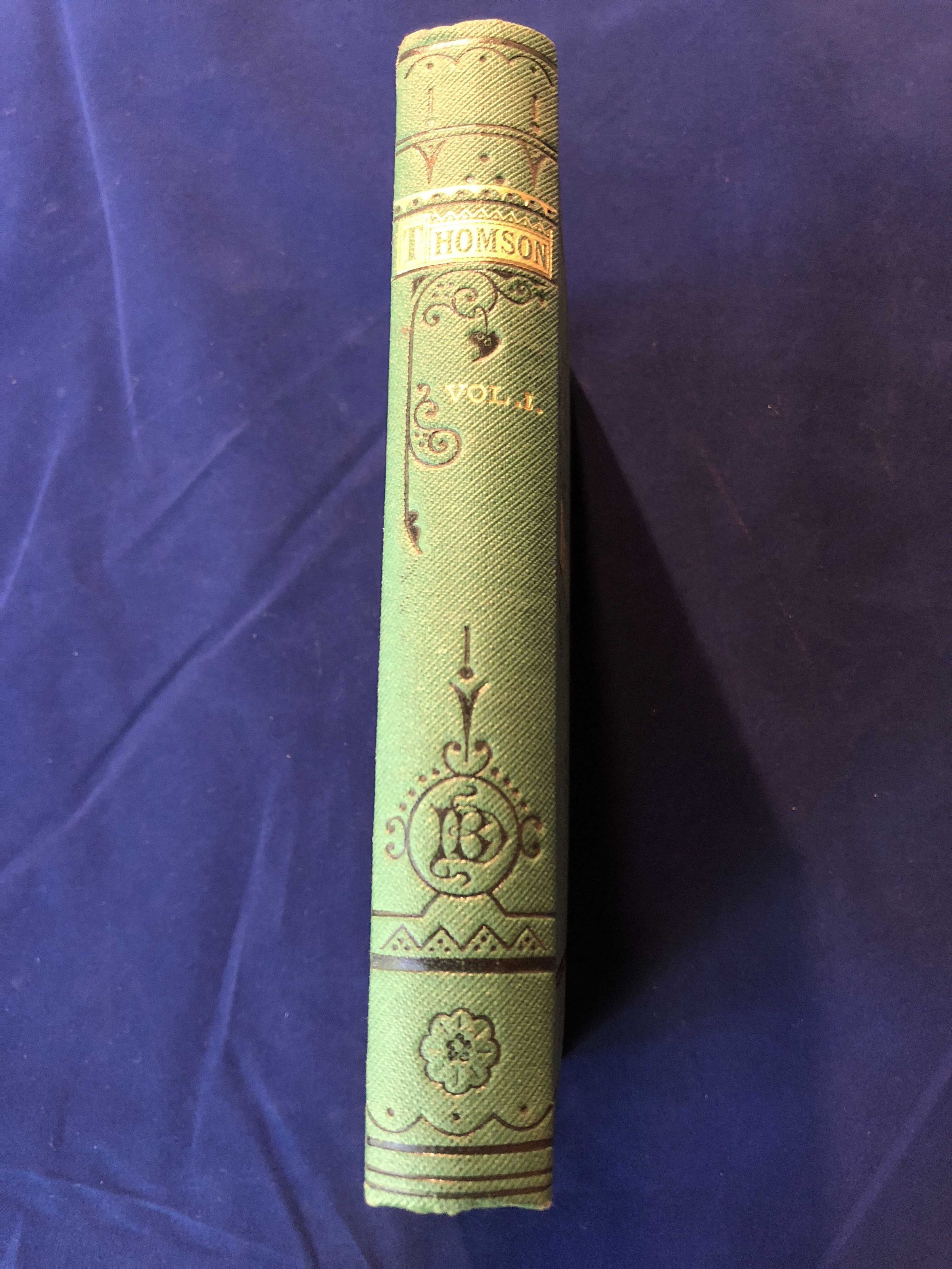 Memoir of James Thomson Volume 1 of 2; PHYSDESC: Hardback in Green Cloth - Design in gold - Front Title and spine - 17.5 cm tall and 11.5cm wideCollection