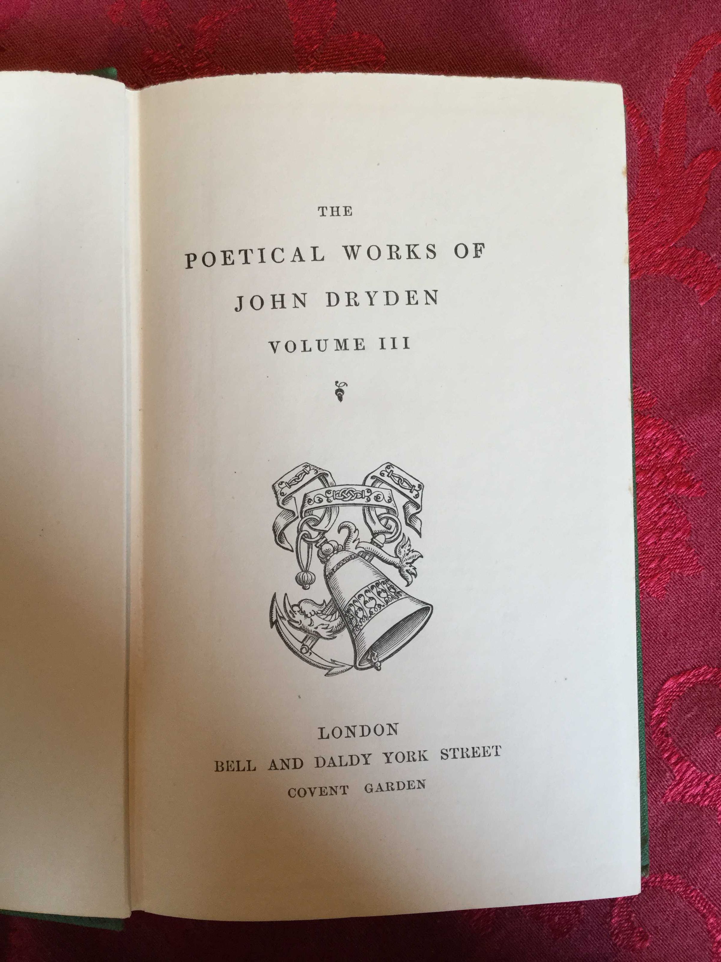 The Life of Dryden - Volume 3 of 5; PHYSDESC: Hardback in Green Cloth - Design in gold - Front Title and spine - 17.5 cm tall and 11.5cm wideCollection