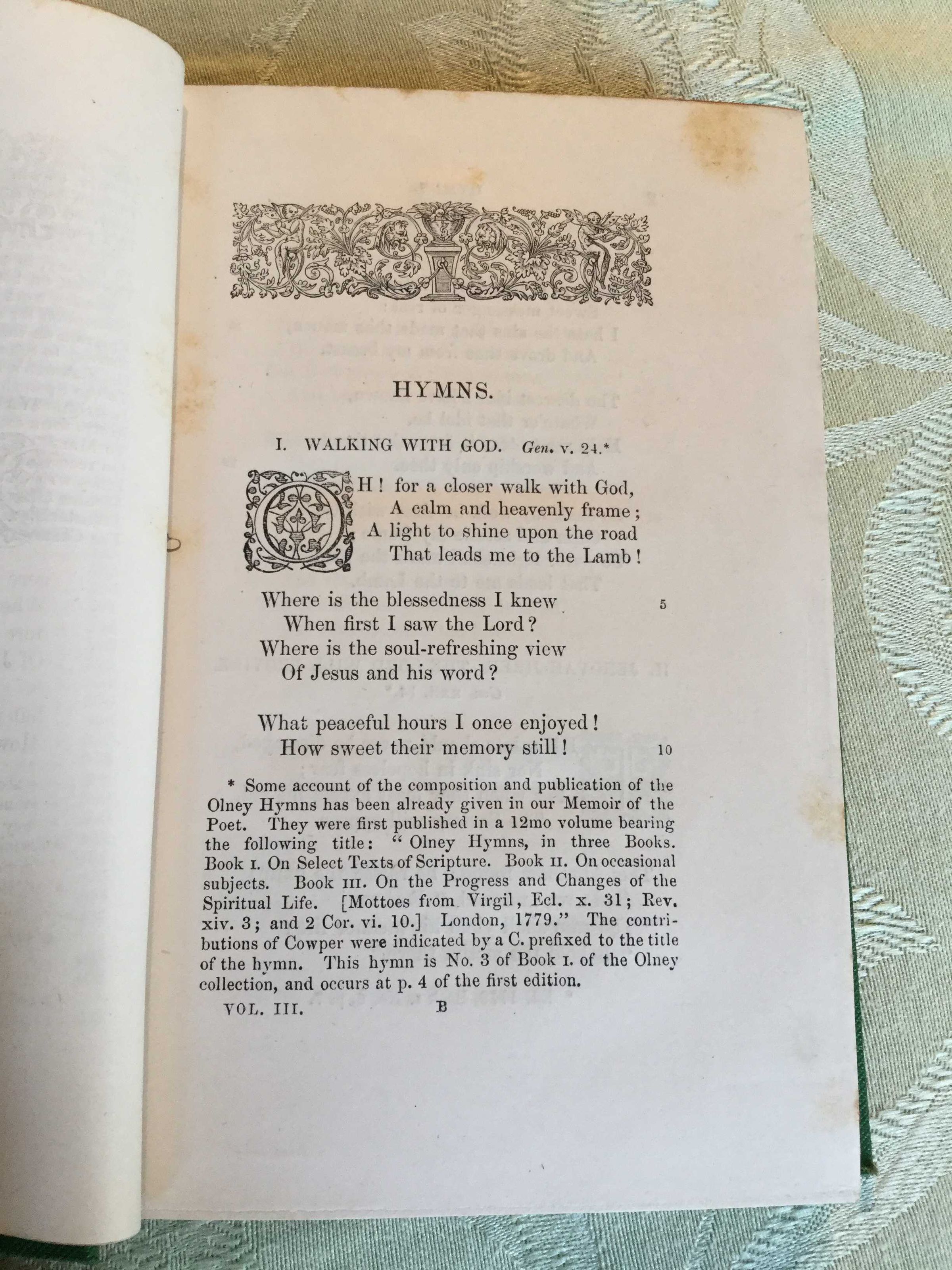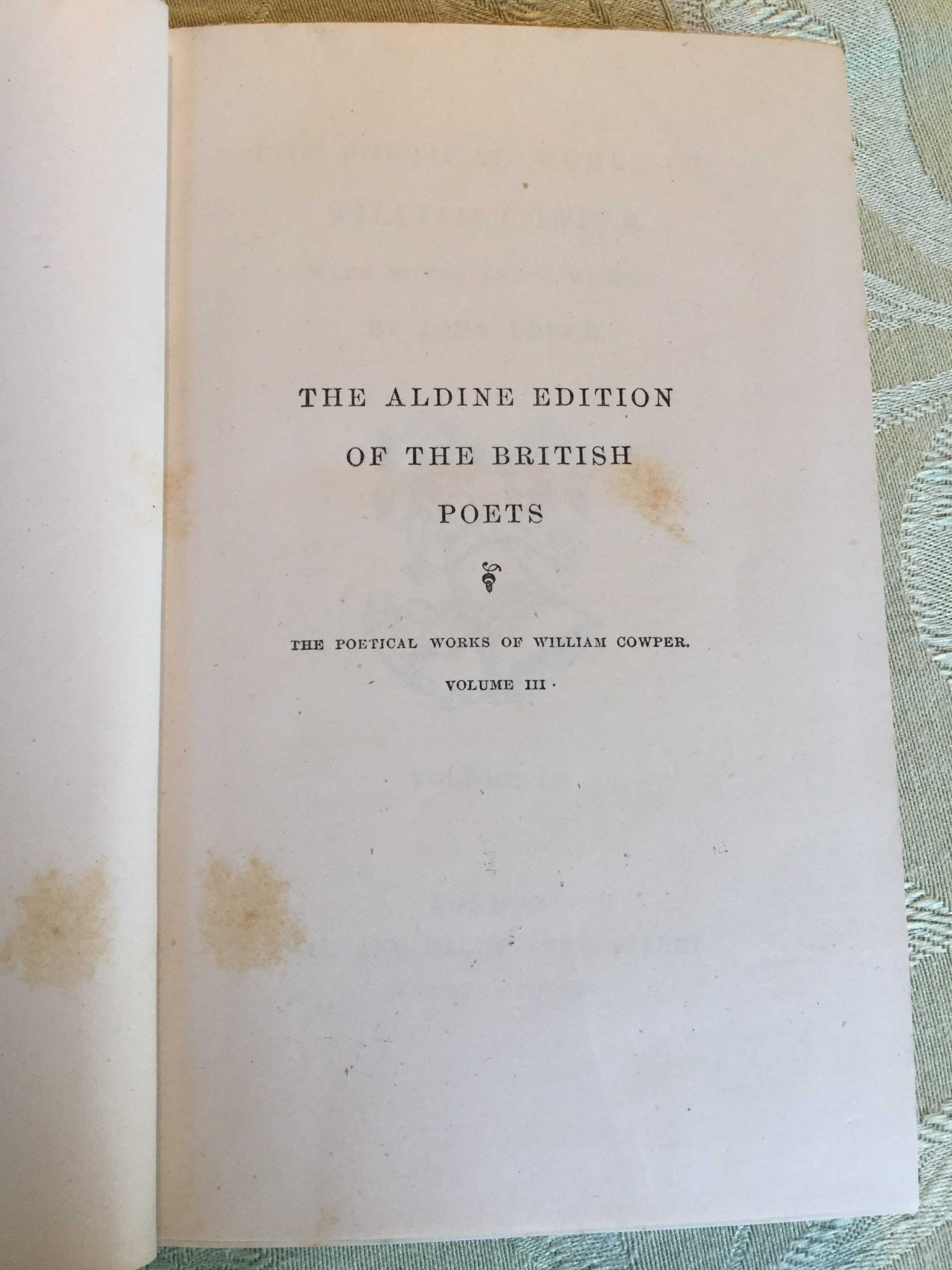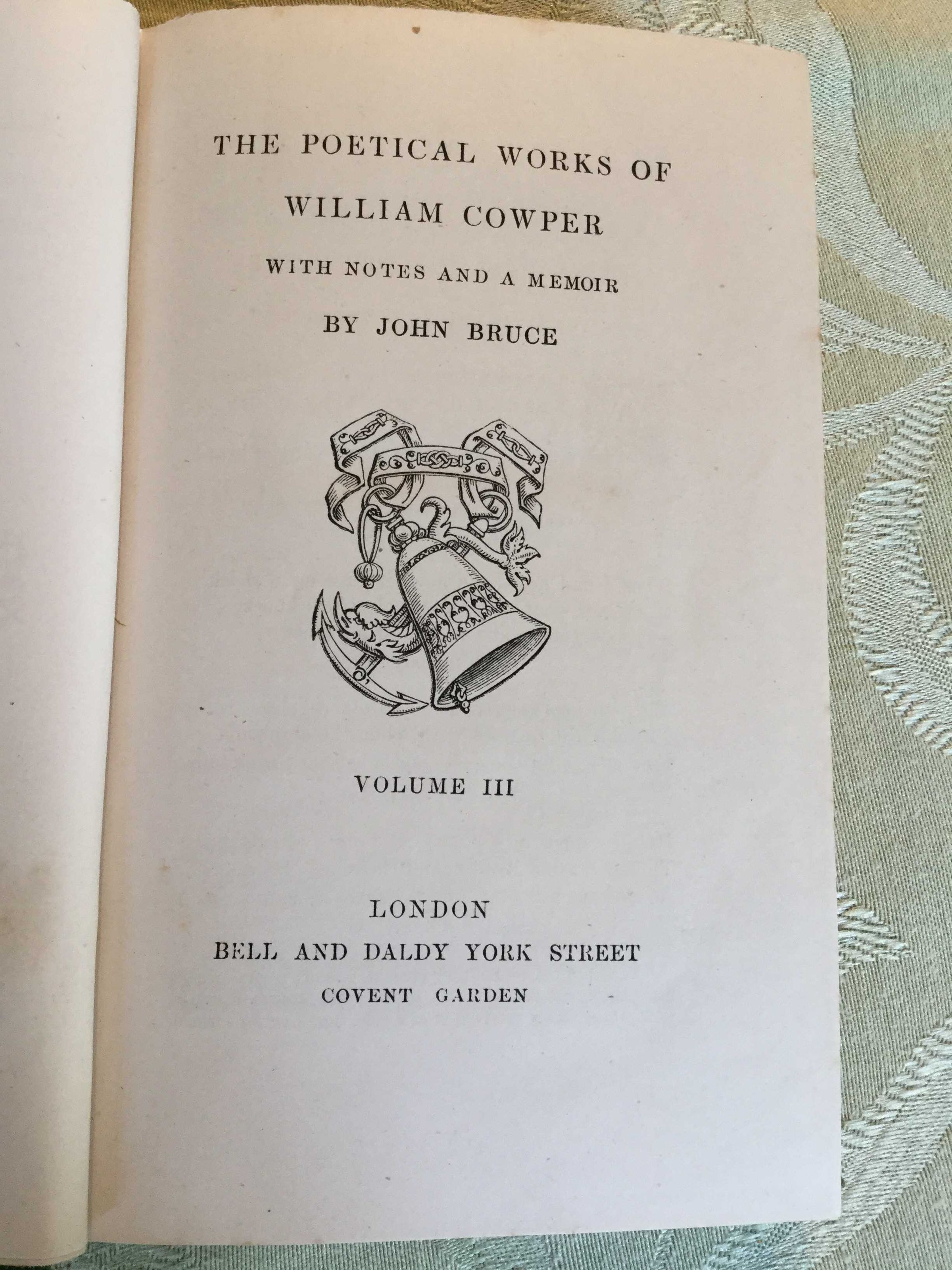 Memoir of Cowper - Volume 3 of 3; PHYSDESC: Hardback in Green Cloth - Design in gold - Front Title and spine - 17.5 cm tall and 11.5cm wideCollection